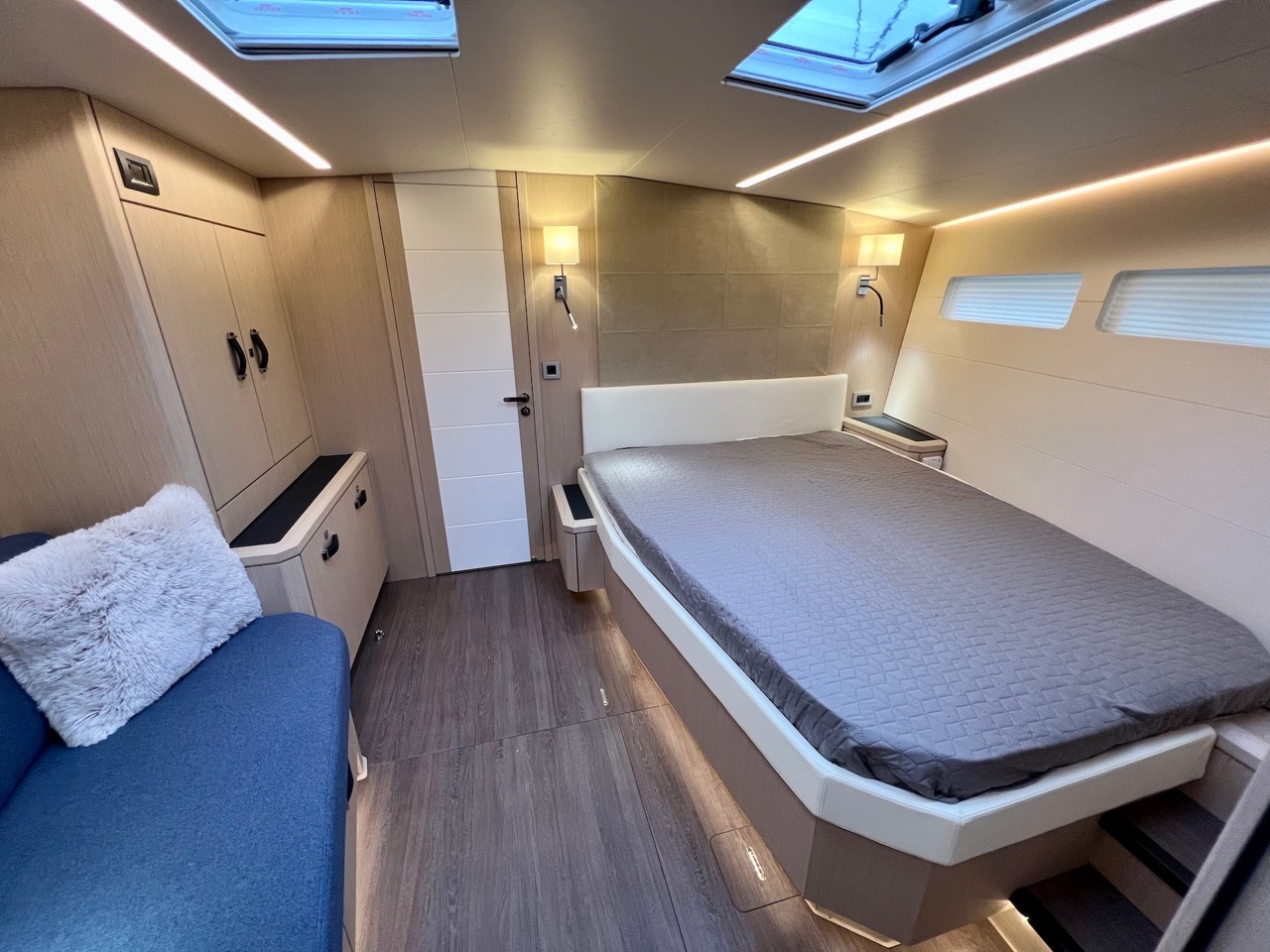 | Inside | 12V Steckdose, 220V Steckdosen, Backofen, Bluetooth Player, Fäkalientank, Gasherd, Gefrierschrank, Generator, Geschirrspüler, Inverter 12V/220V, Klimaanlage (ohne Landstrombedarf), Kühlschrank, Ladegerät, LCD Fernseher, LED-Innenleuchten, Pantryausstattung, Radio mit USB und Bluetooth, Spülbecken, TV, USB Steckdose, Ventilator, Warmwasser, Watermaker, Weinkühlschrank |