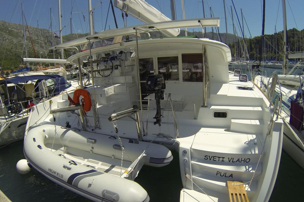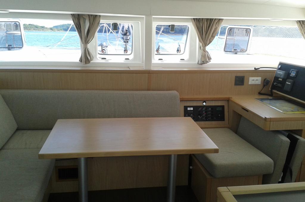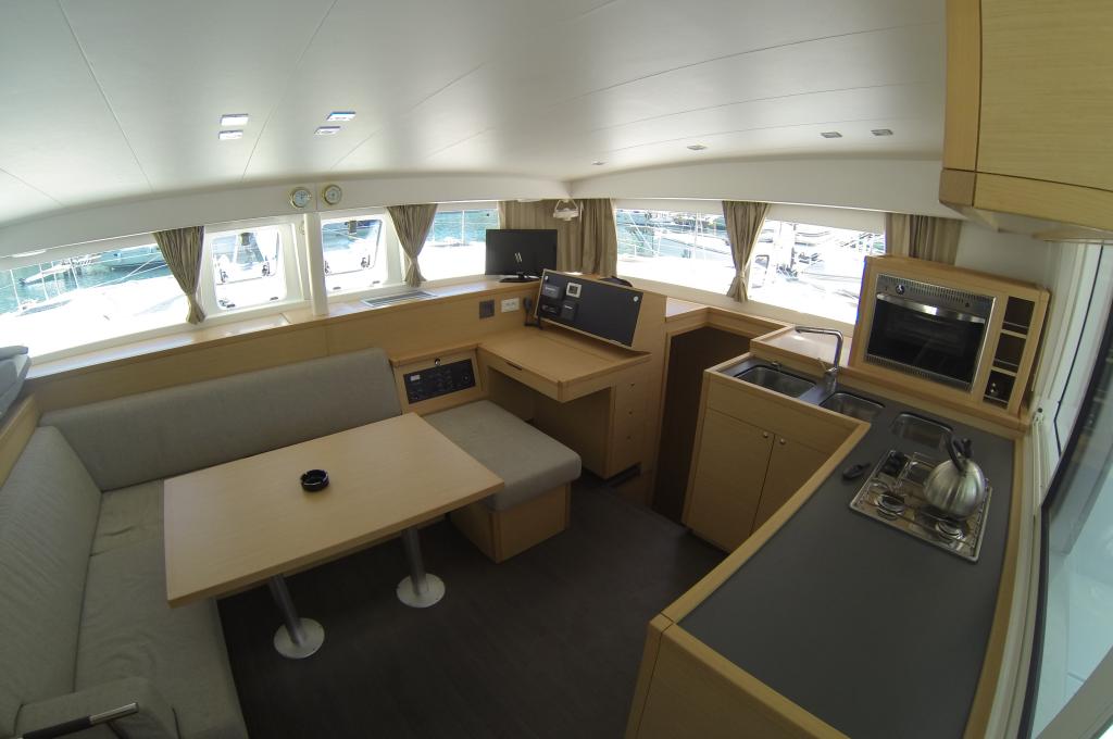 | Inside | Borduhr, elektr. Druckwasserpumpe, Heizung, Klimaanlage (Landstrom), Kühlschrank, Ladegerät, Landstromkabel, LCD Fernseher + DVD, Luftpumpe für Beiboot, Radio mit CD oder MP3, Salontisch absenkbar, Trichter, Warmwasser |