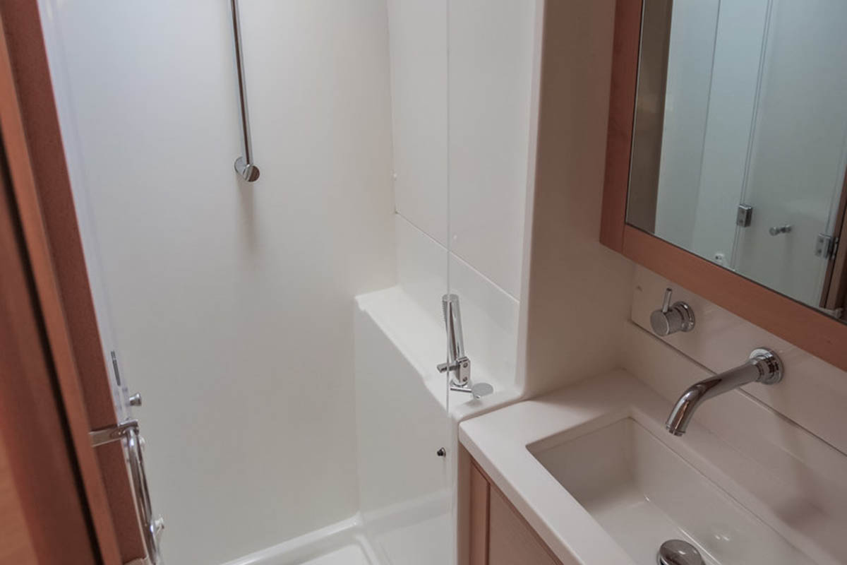 | Outside | 220 V-Landanschluss, Anker mit Kette, Badeleiter, Badeplattform, Biminitop, Cockpitdusche, Cockpitlautsprecher, Cockpitpolster, Cockpittisch, elektr. Ankerwinsch, elektr. Winsch, Teak im Cockpit, Winschen |