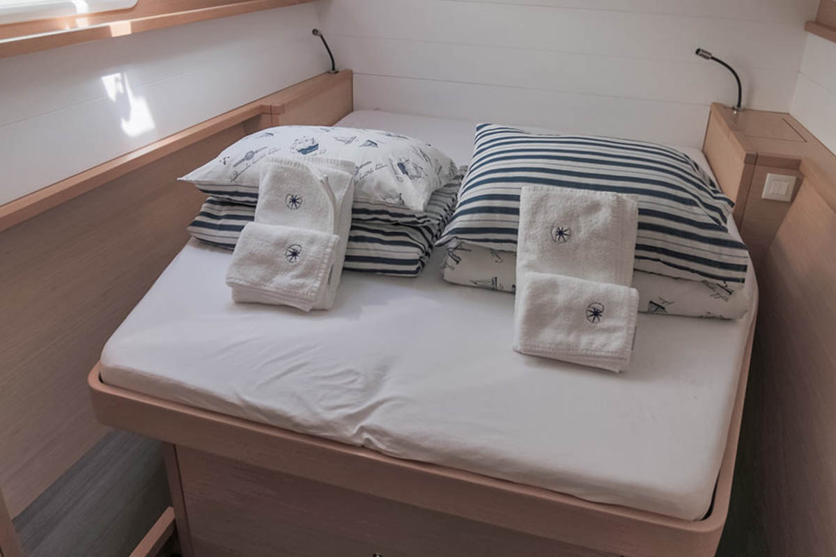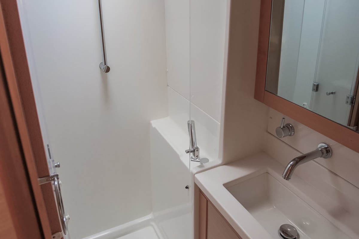 | Outside | 220 V-Landanschluss, Anker mit Kette, Badeleiter, Badeplattform, Biminitop, Cockpitdusche, Cockpitkühlschrank, Cockpitlautsprecher, Cockpitpolster, Cockpittisch, elektr. Ankerwinsch, elektr. Winsch, Teak im Cockpit |