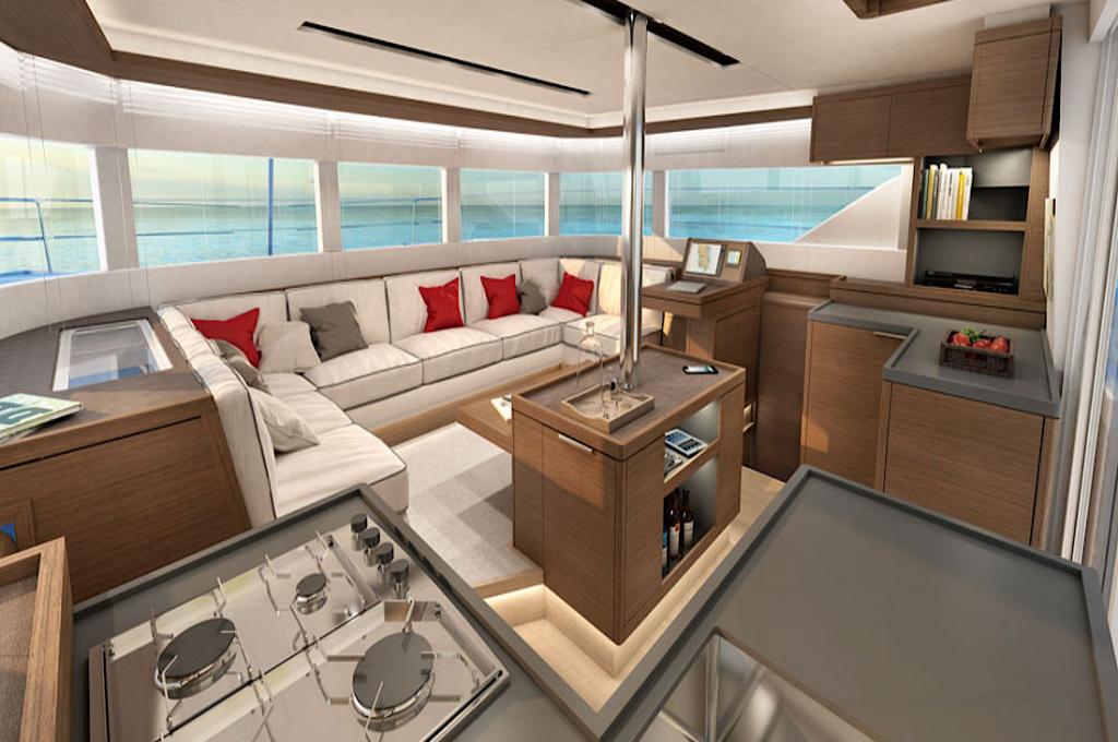 | Outside | Badeplattform (hydr.), Biminitop, Cockpitkühlschrank, Cockpitlautsprecher, Cockpitpolster, Cockpittisch (klappbar), Davits, Deckpolster, Fernsteuerung für elektr. Ankerwinsch, Teak im Cockpit, Winschen |