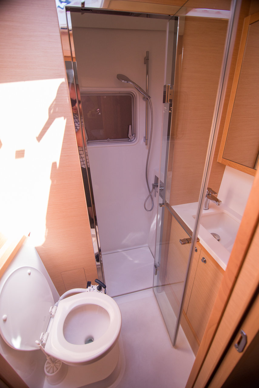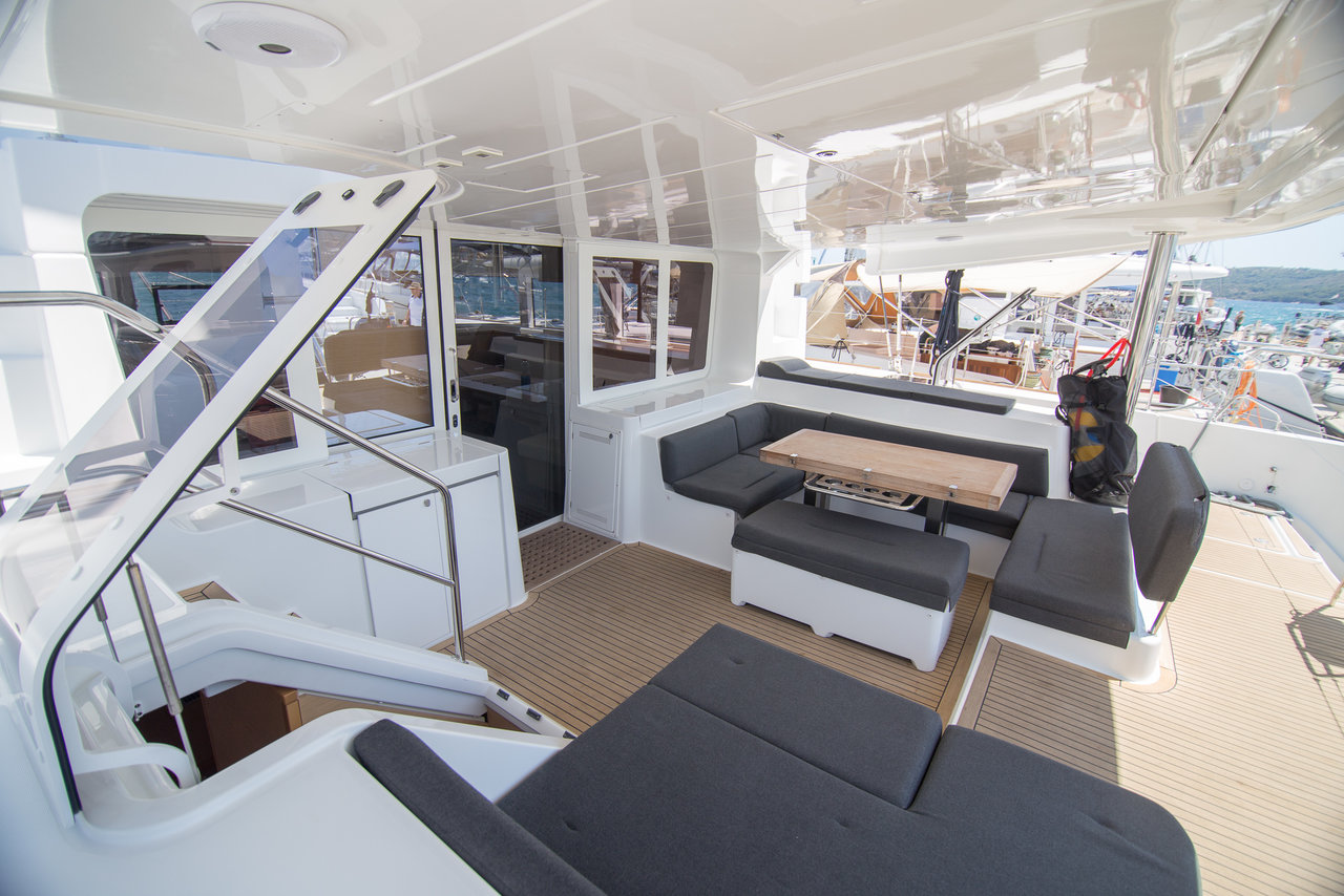 | Outside | 220 V-Landanschluss, Anker mit Kette, Badeleiter, Badeplattform, Biminitop, Cockpitdusche, Cockpitlautsprecher, Cockpitpolster, Cockpittisch, Deckbeleuchtung, Delta-Anker, elektr. Ankerwinsch, elektr. Winsch, Fernsteuerung für elektr. Ankerwinsch, Flybridge, Teak im Cockpit, Winschen |