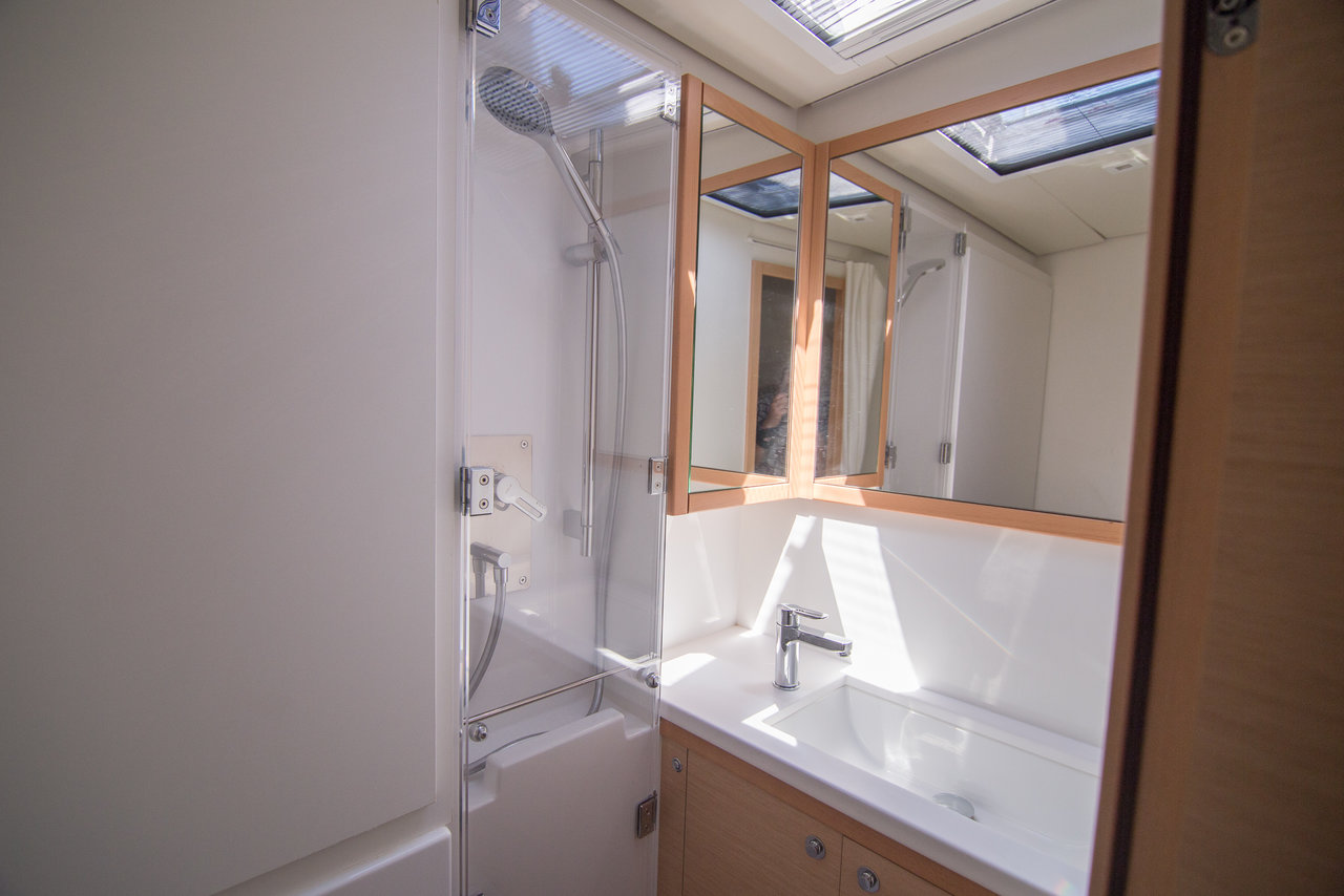 | Inside | 220V Steckdosen, Backofen, Eisbox, Elektrische Filterkaffeemaschine, Fäkalientank, Gasherd, Gefrierschrank, Generator, Geschirrspüler, Heizung, Inverter 12V/220V, Kaffeemaschine, Klimaanlage (ohne Landstrombedarf), Kühlschrank mit Gefrierfach, Ladegerät, Lautsprecher im Salon, Mikrowelle, Pantryausstattung, Radio mit CD und USB, Toaster, Wasserkocher |