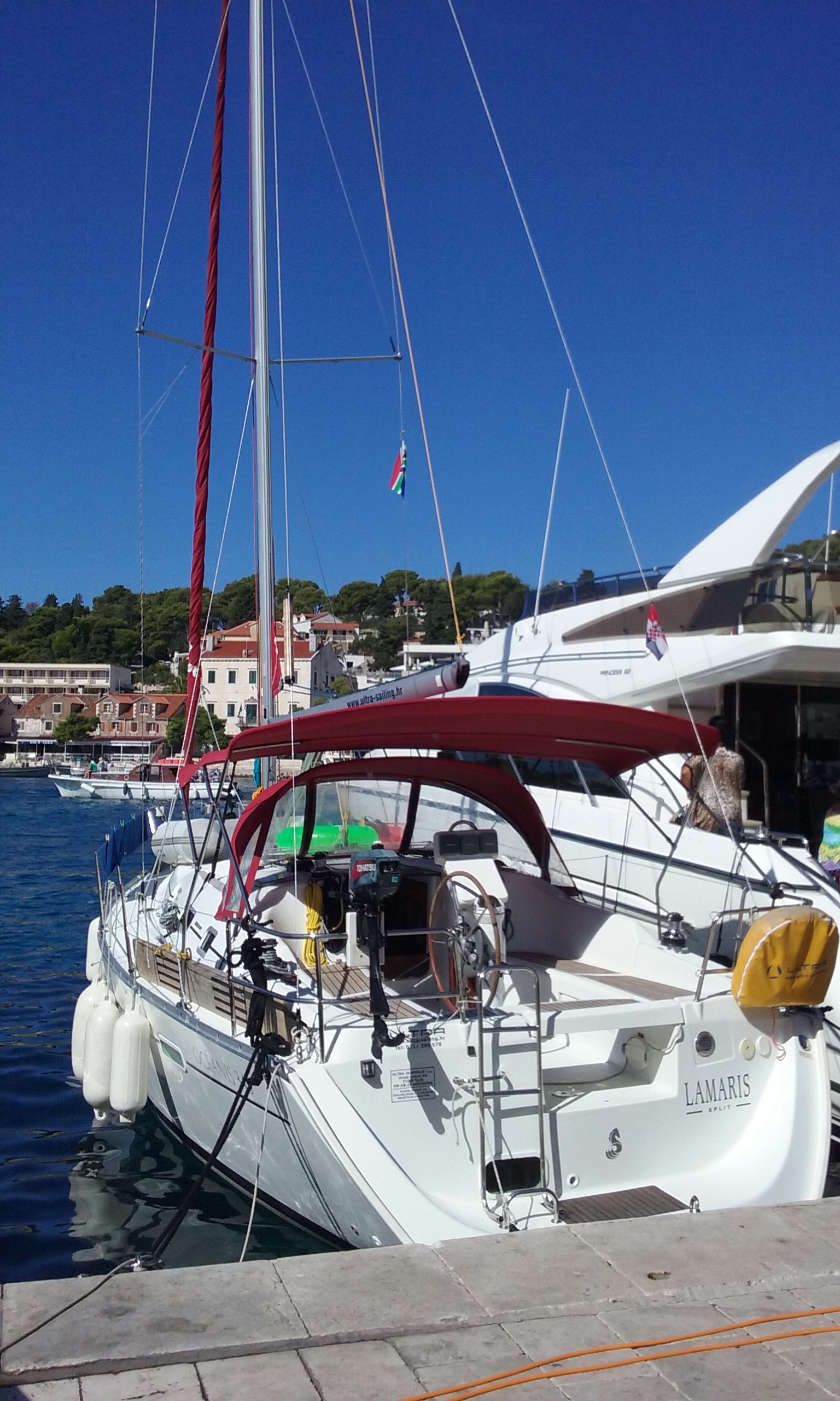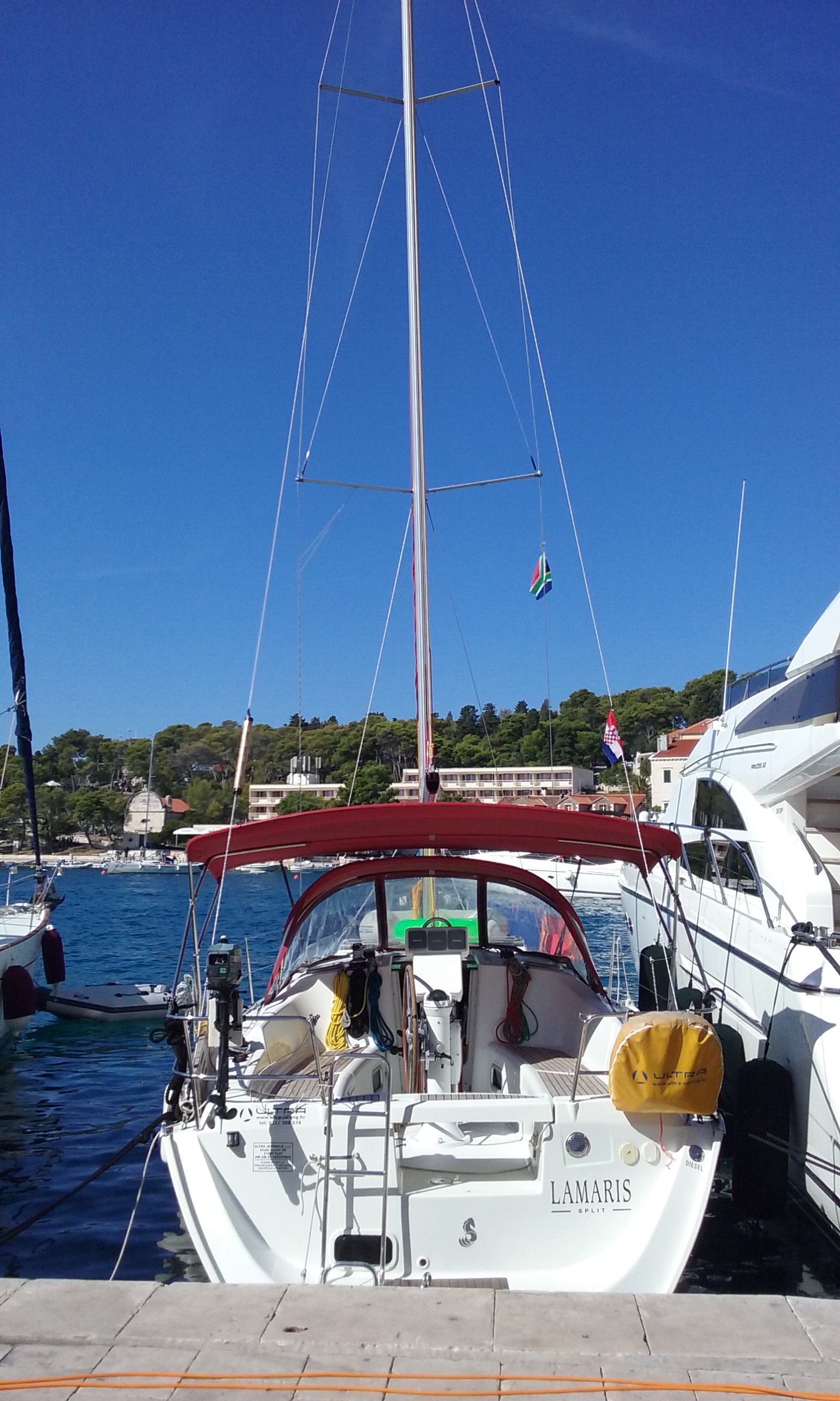 | Navigation | Fernglas, GPS mit Kartenplotter im Salon, Hafenhandbücher, Kompass, Seekarten, Windmesser |