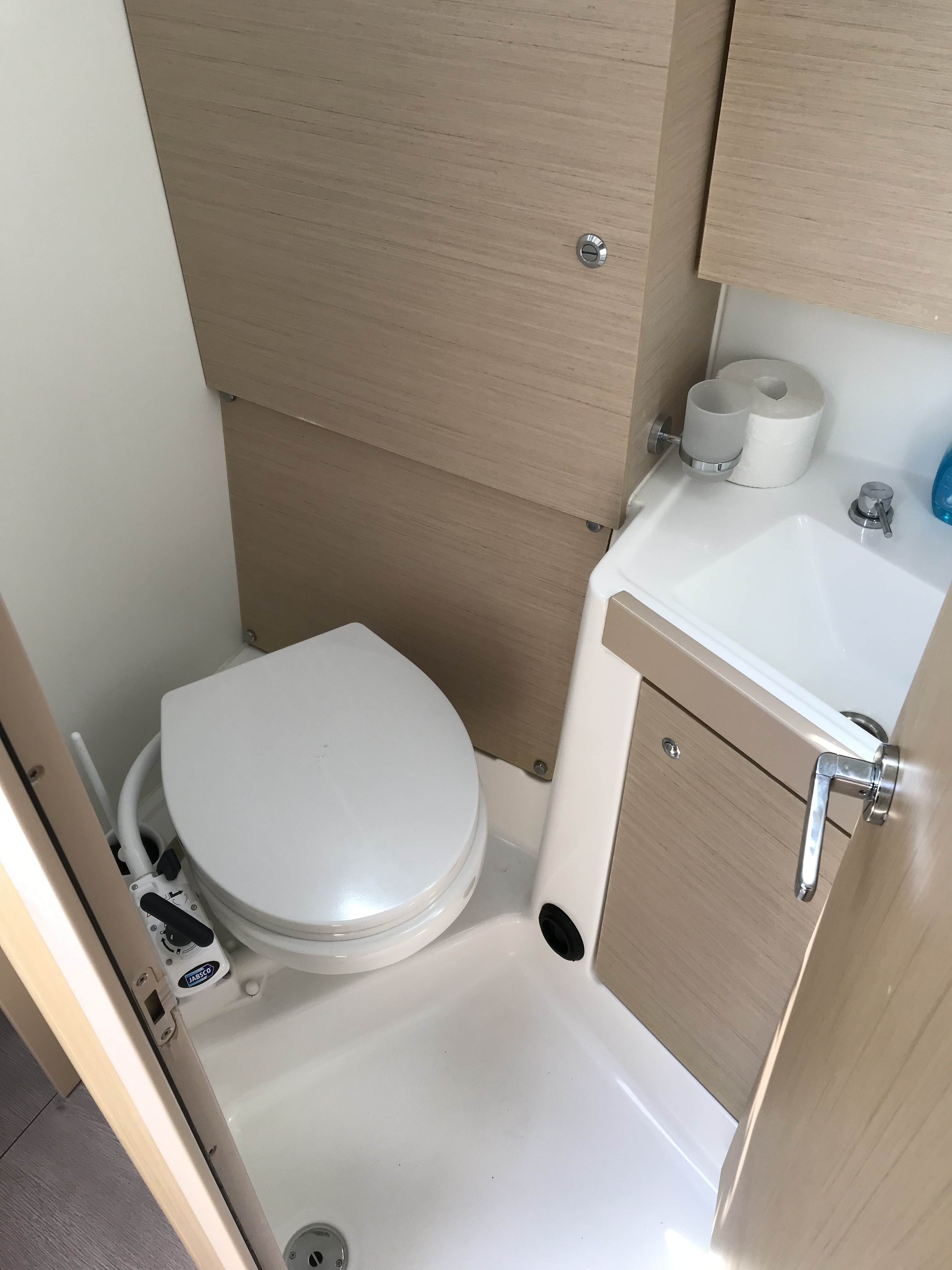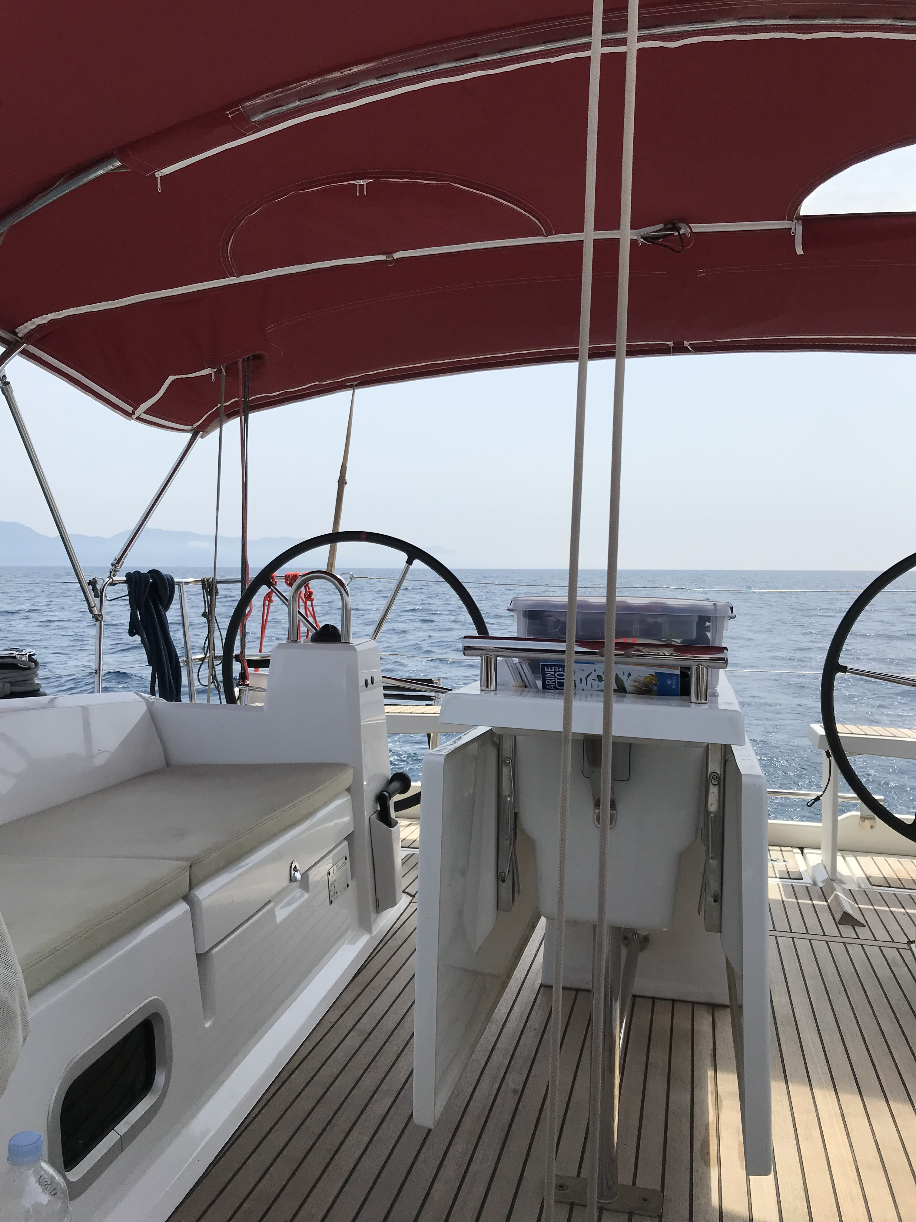 Outside 220 V-Landanschluss, Anker mit Kette, Biminitop, Bootshaken, Cockpitdusche, Cockpittisch, elektr. Ankerwinsch, Fender, Gangway, Kugelfender, Solaranlage, Sprayhood