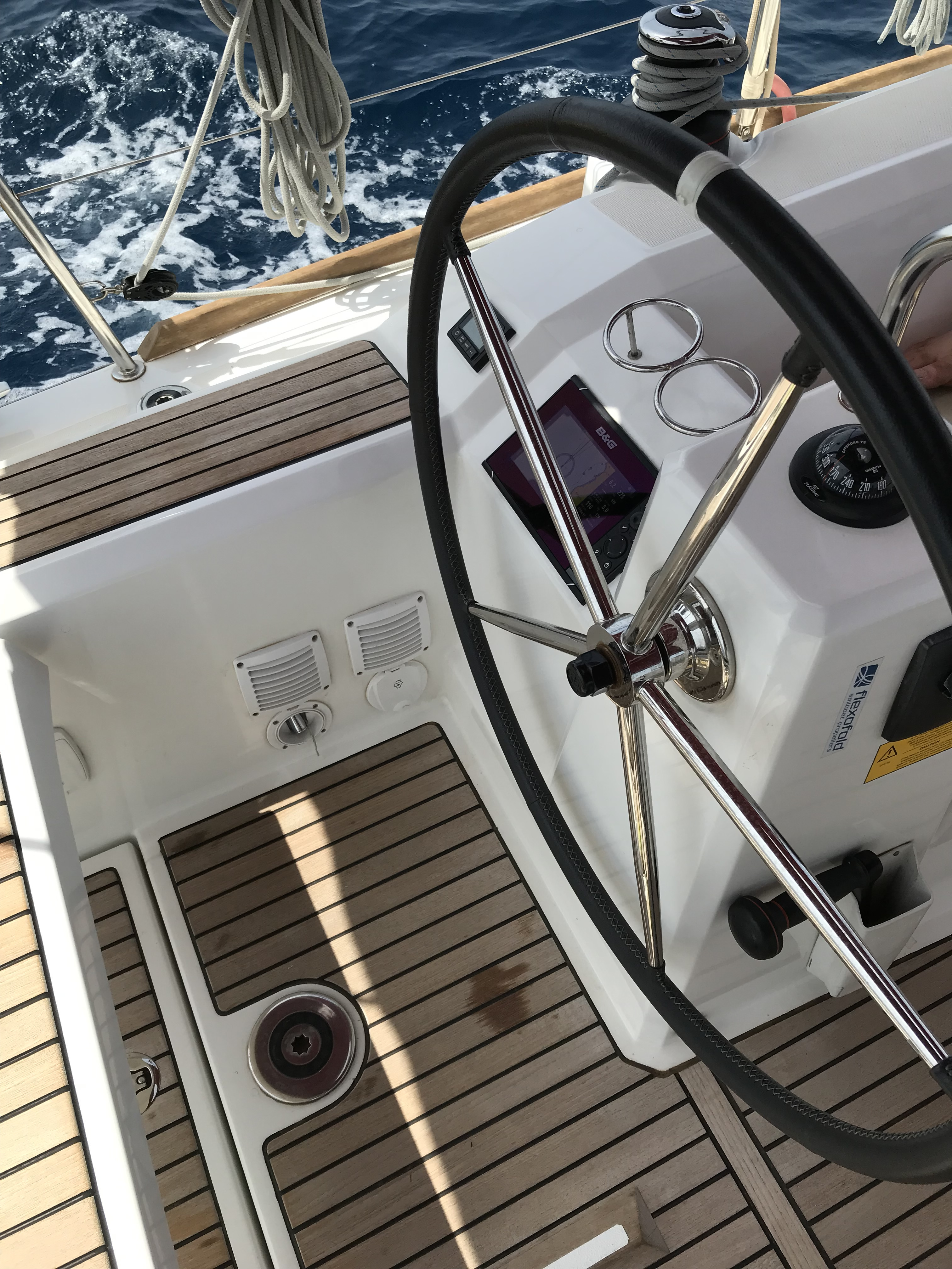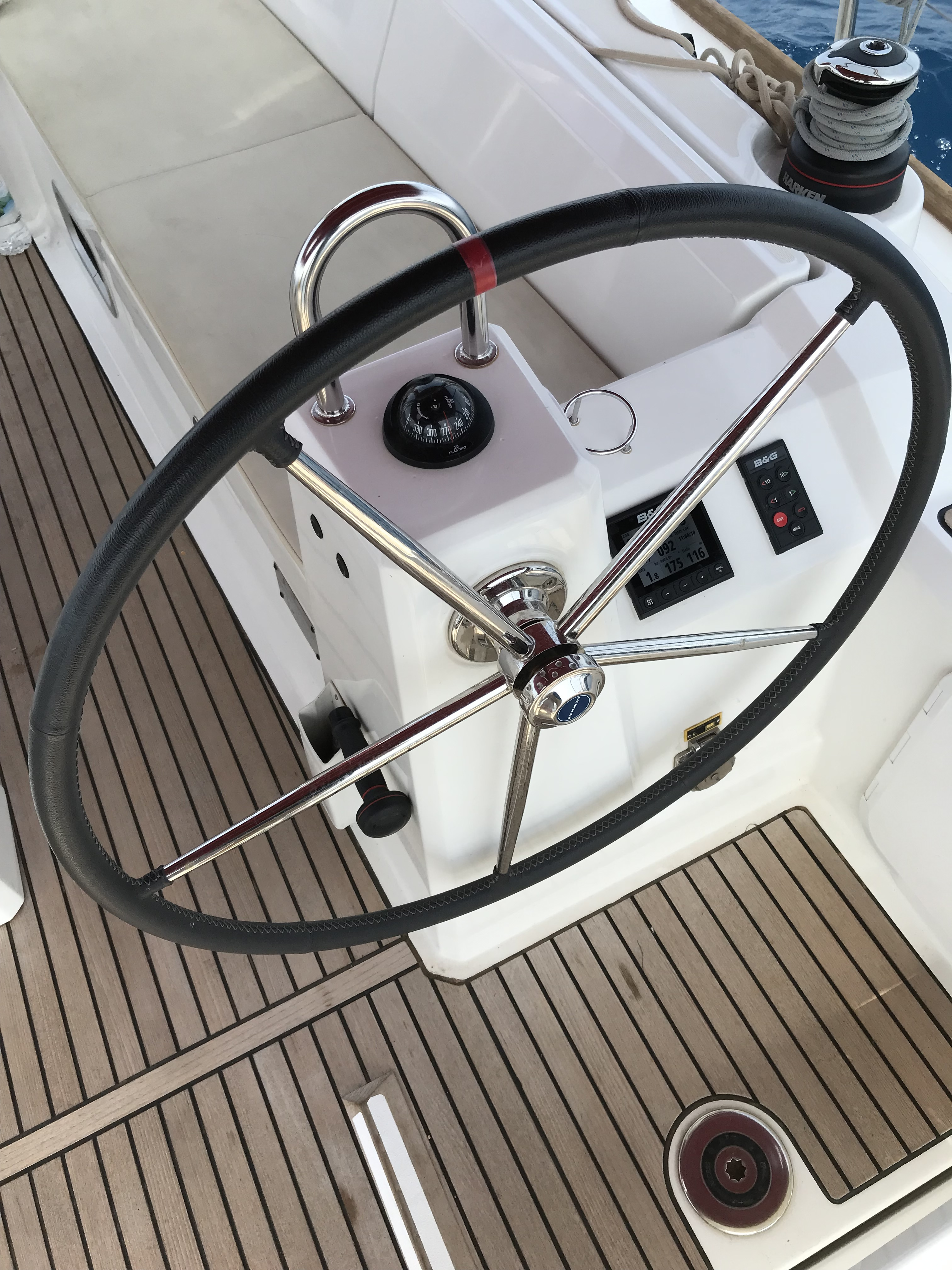 Safety Autopilot, Bootsmannstuhl, Bordapotheke, elektr. Bilgepumpe, Feststoffschwimmwesten, Feueraxt, Feuerlöscher, Handbilgepumpe, Lifebelts, Nebelhorn, Notsignale, UKW-Funk, Zweitanker