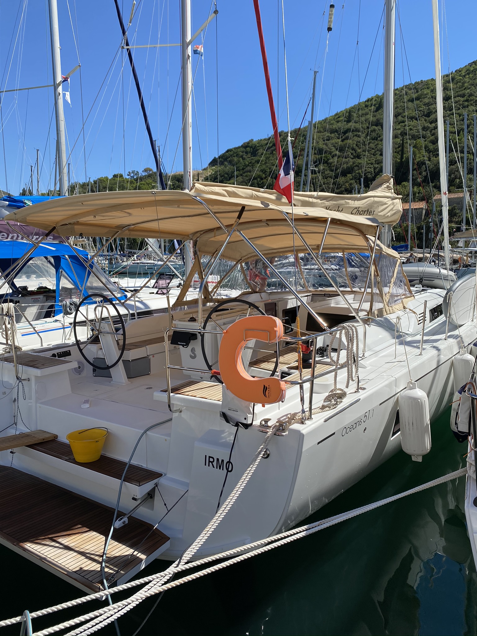 | Outside | Badeleiter, Biminitop, Cockpitdusche, Cockpitlautsprecher, Cockpitpolster, Cockpittisch, elektr. Ankerwinsch, Sprayhood |