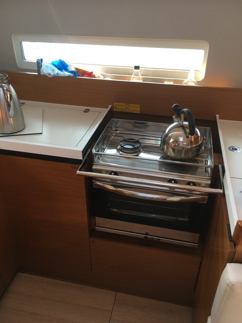 | Outside | 220 V-Landanschluss, Anker mit Kette, Badeplattform, Biminitop, Cockpitdusche, Cockpitpolster, Cockpittisch, elektr. Ankerwinsch, Fender, Festmacherleinen, Sprayhood, Teak im Cockpit, Wantenschneider, Windex |