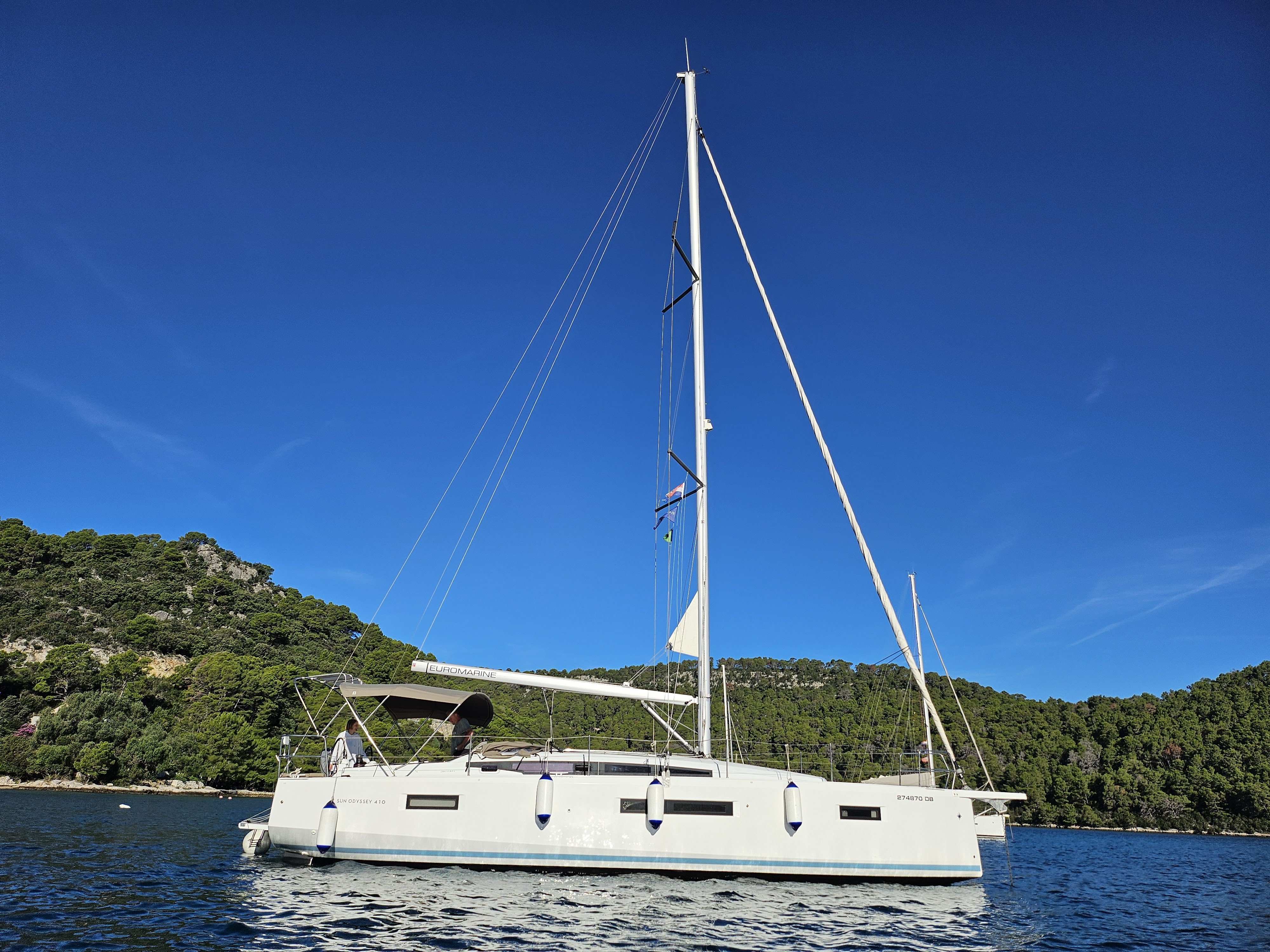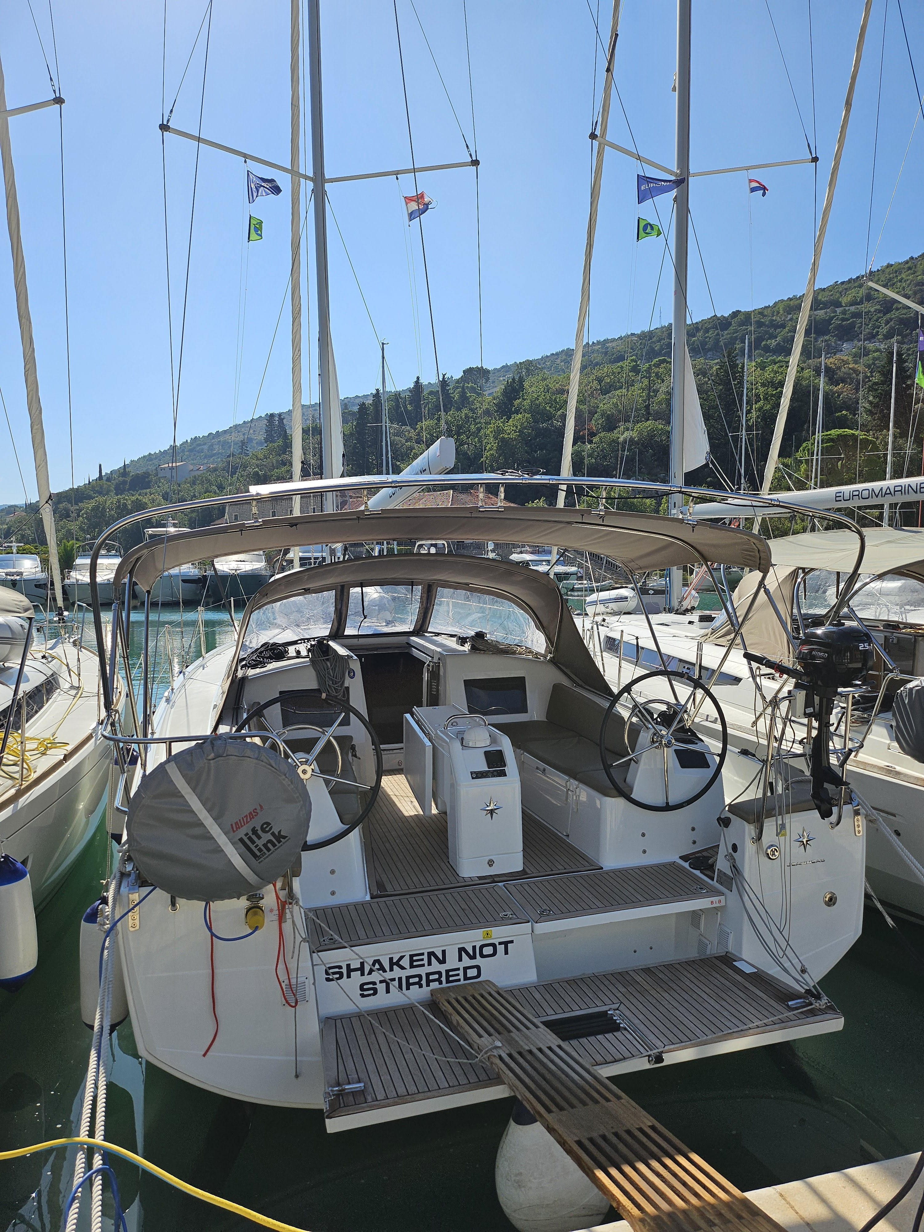 | Outside | 220 V-Landanschluss, Anker mit Kette, Ankerkettenzähler, Badeleiter, Badeplattform, Biminitop, Cockpitdusche, Cockpitlautsprecher, Cockpitpolster, Cockpittisch, elektr. Ankerwinsch, Gangway, Solaranlage, Sprayhood |