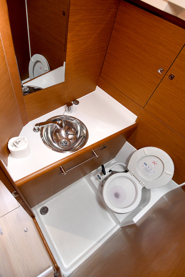 | Outside | 220 V-Landanschluss, Anker mit Kette, Badeplattform, Biminitop, Cockpitdusche, Cockpitpolster, Cockpittisch, elektr. Ankerwinsch, Fender, Festmacherleinen, Sprayhood, Teak im Cockpit, Wantenschneider, Windex |