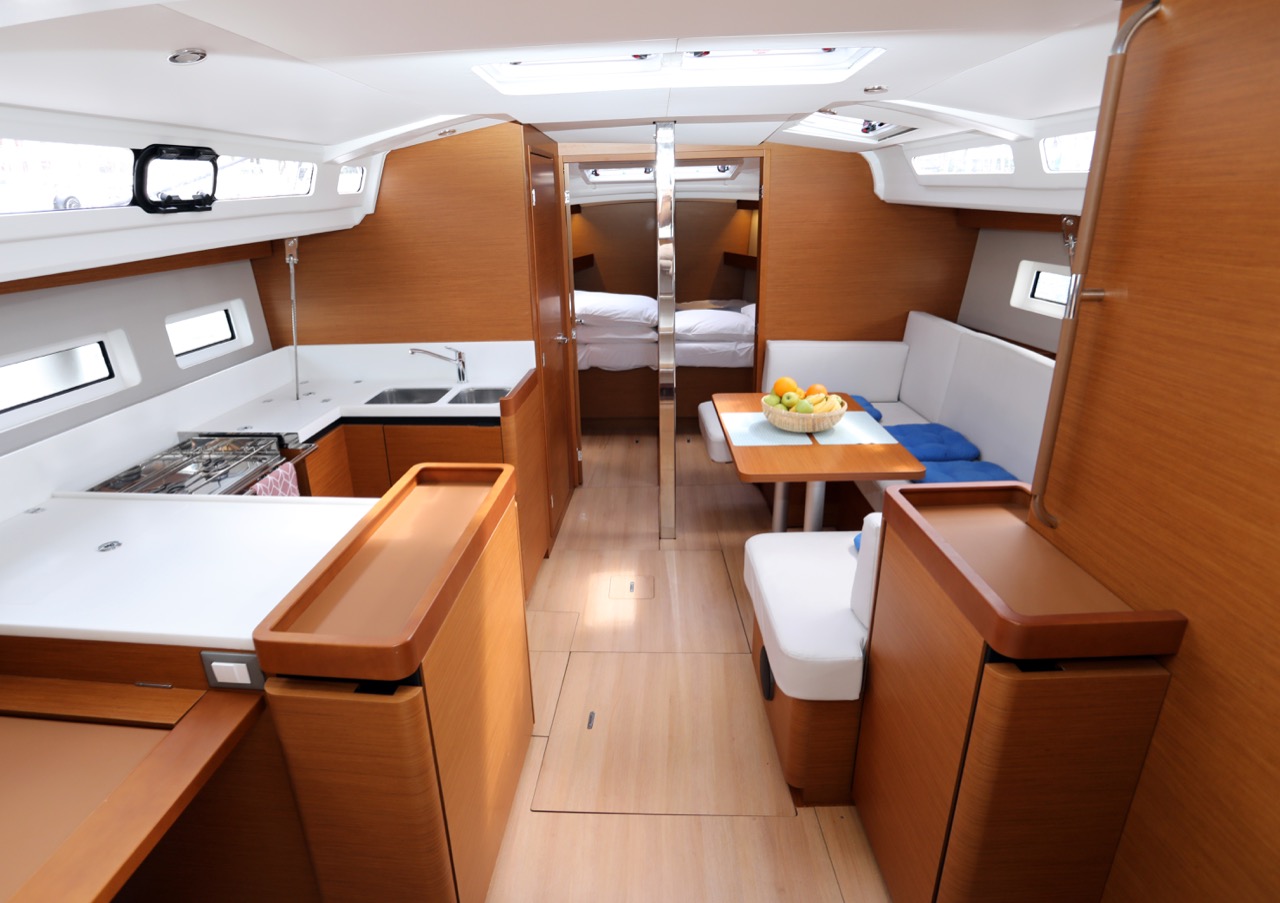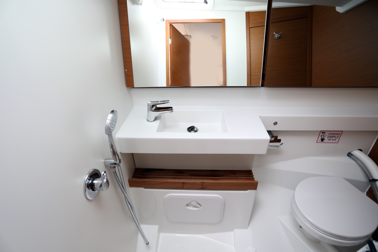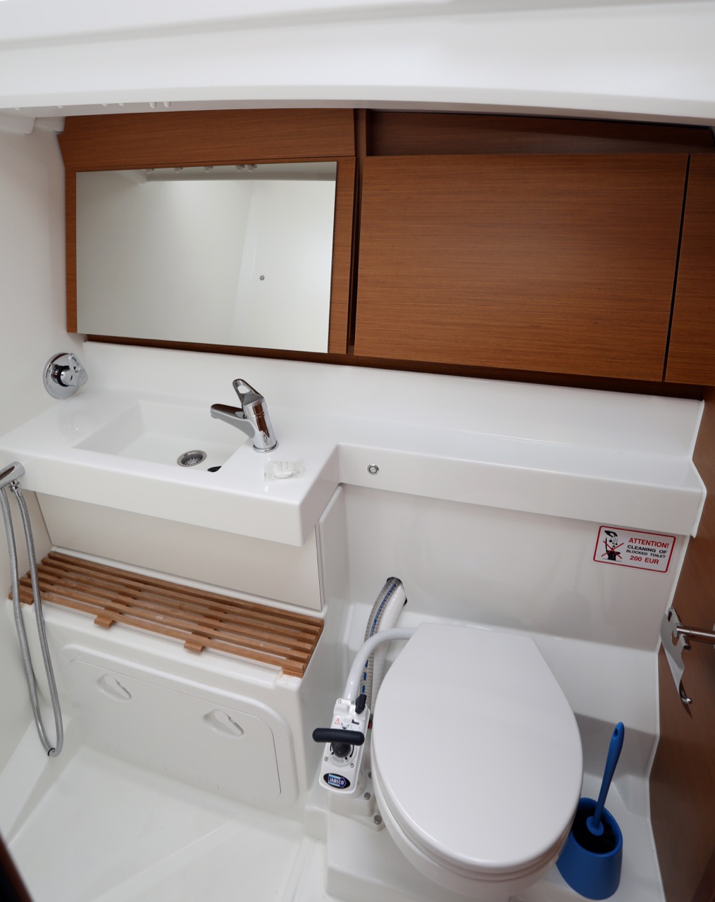 | Outside | 220 V-Landanschluss, Anker mit Kette, Badeplattform, Biminitop, Cockpitdusche, Cockpitpolster, Cockpittisch, elektr. Ankerwinsch, Fender, Festmacherleinen, Wantenschneider, Windex |