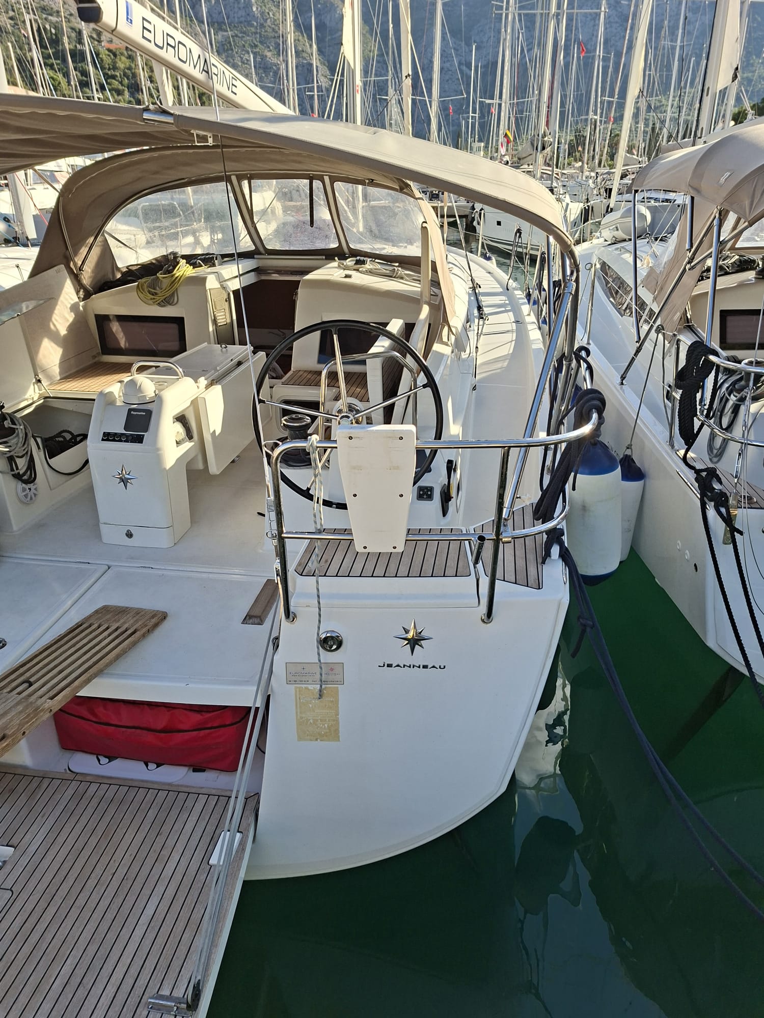 | Outside | 220 V-Landanschluss, Anker mit Kette, Badeplattform, Biminitop, Cockpitdusche, Cockpitpolster, Cockpittisch, elektr. Ankerwinsch, Fender, Festmacherleinen, Wantenschneider, Windex |