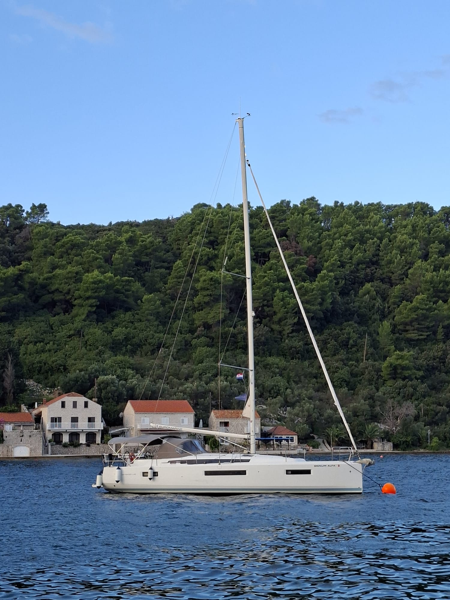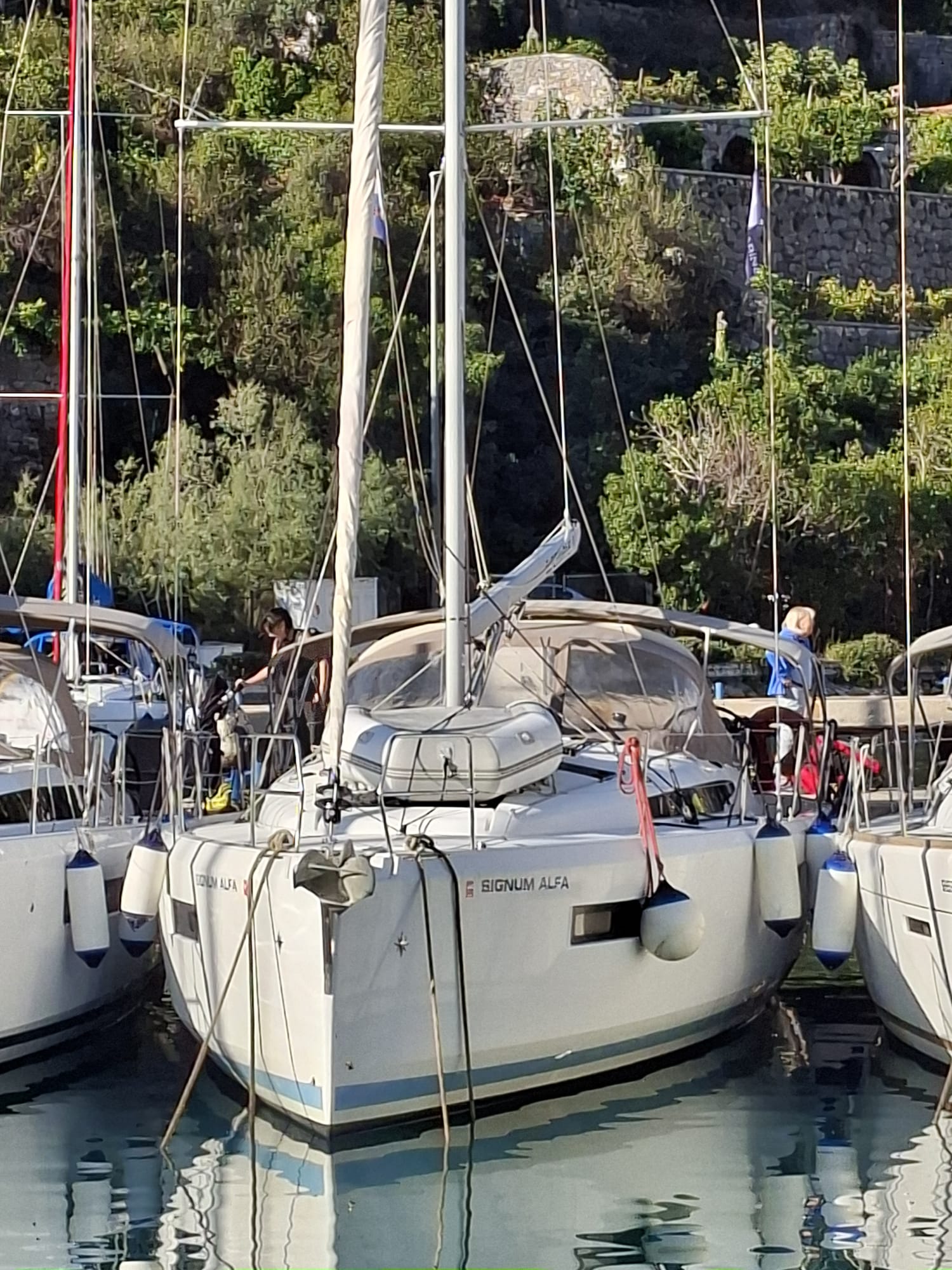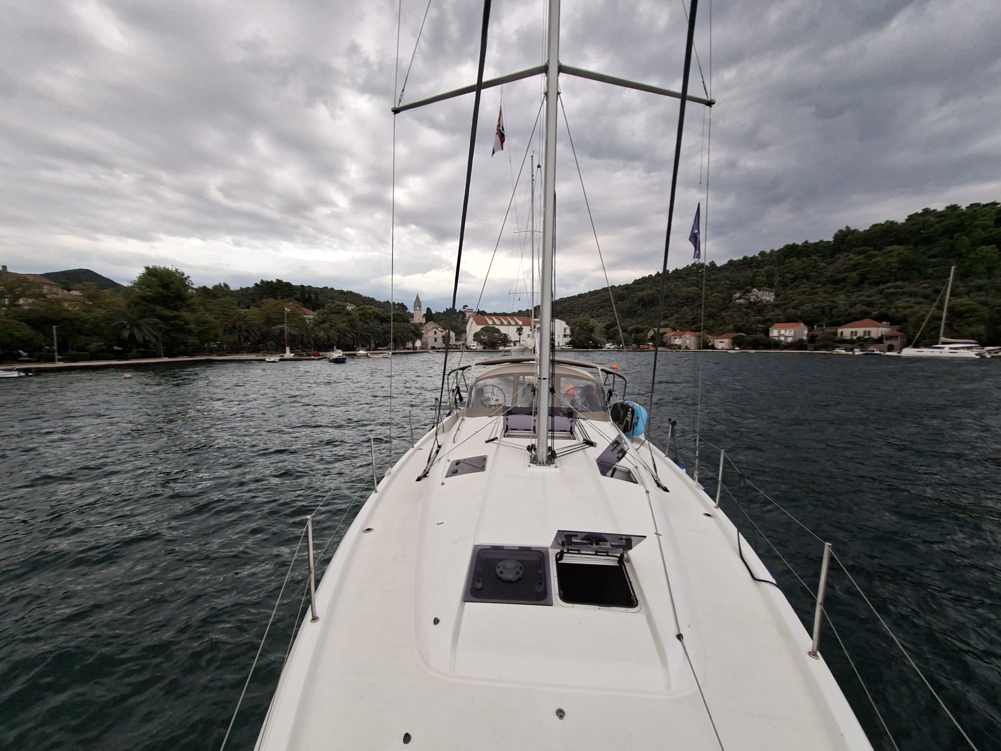 Das Schiff wurde als "Old Lady" bezeichnet und das passte. Platz war gut, oberflächlich auch sauber, nur in den Ecken etwas dreckig. Probleme gab es nur mit der Ankerwinsch, da hing ein Relais. Batterien waren gut, Motor ebenfalls. Schoten und Fallen etwas schwerfällig.