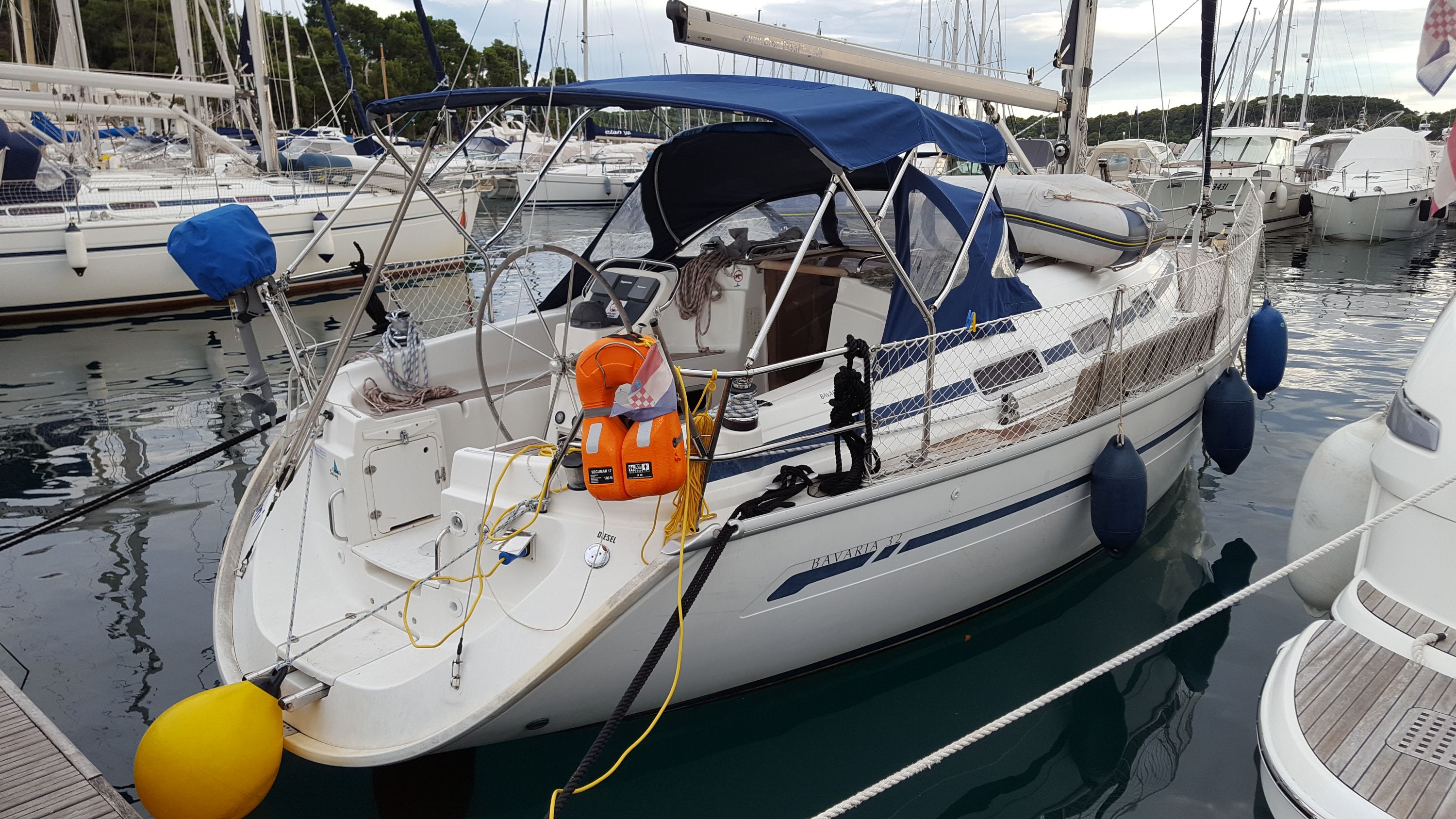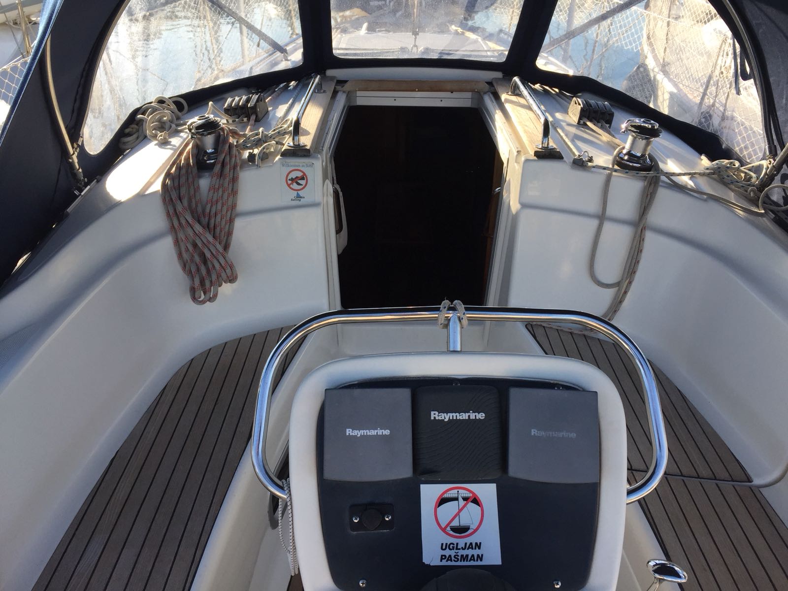 | Outside | 12 V-Anschluss, 220 V-Landanschluss, Biminitop, Bootshaken, Deckpolster, elektr. Ankerwinsch, Fender, Festmacherleinen, Heckdusche, Sprayhood, Teakdeck, Wasserschlauch, Winschen |