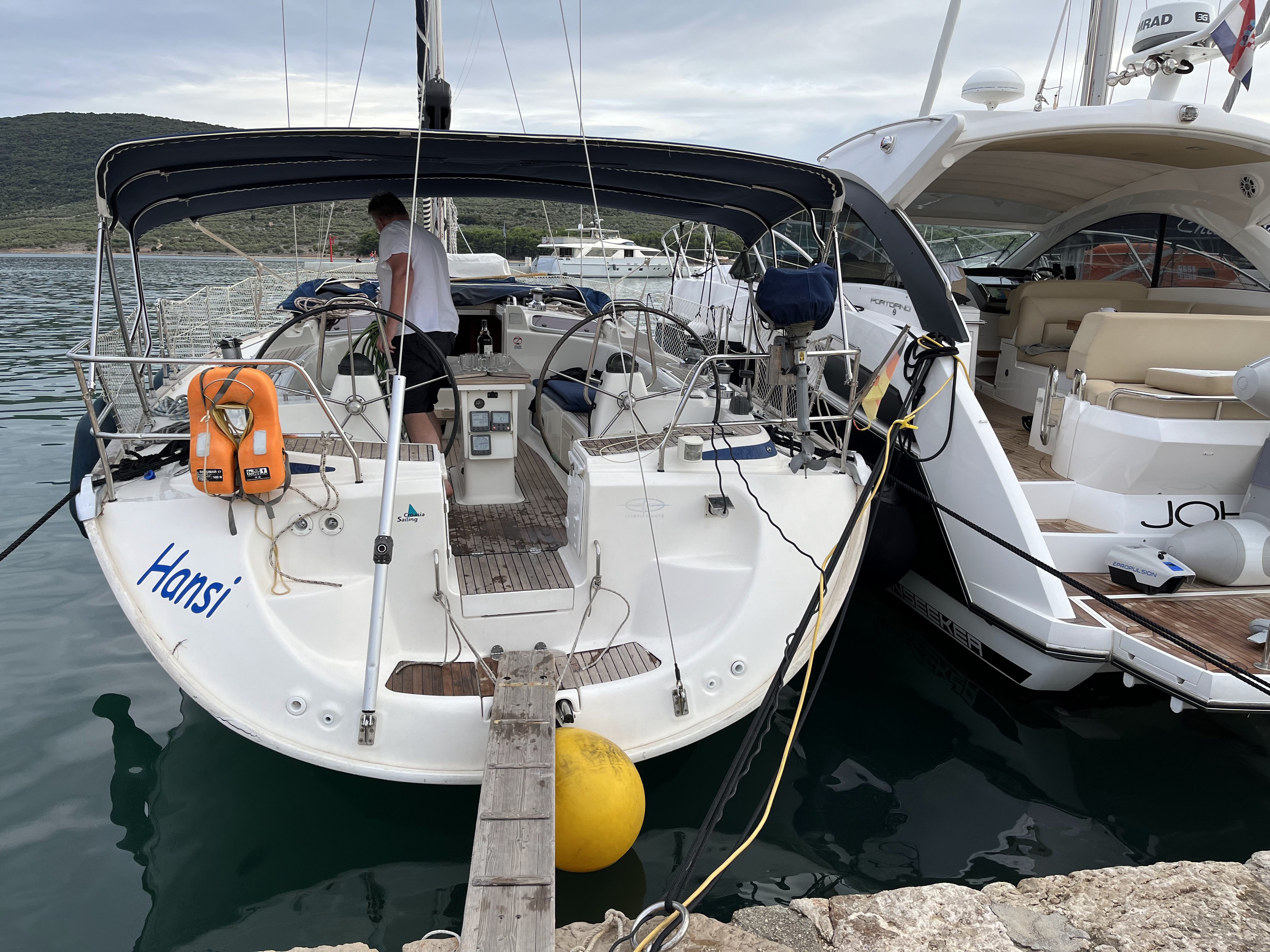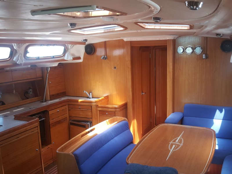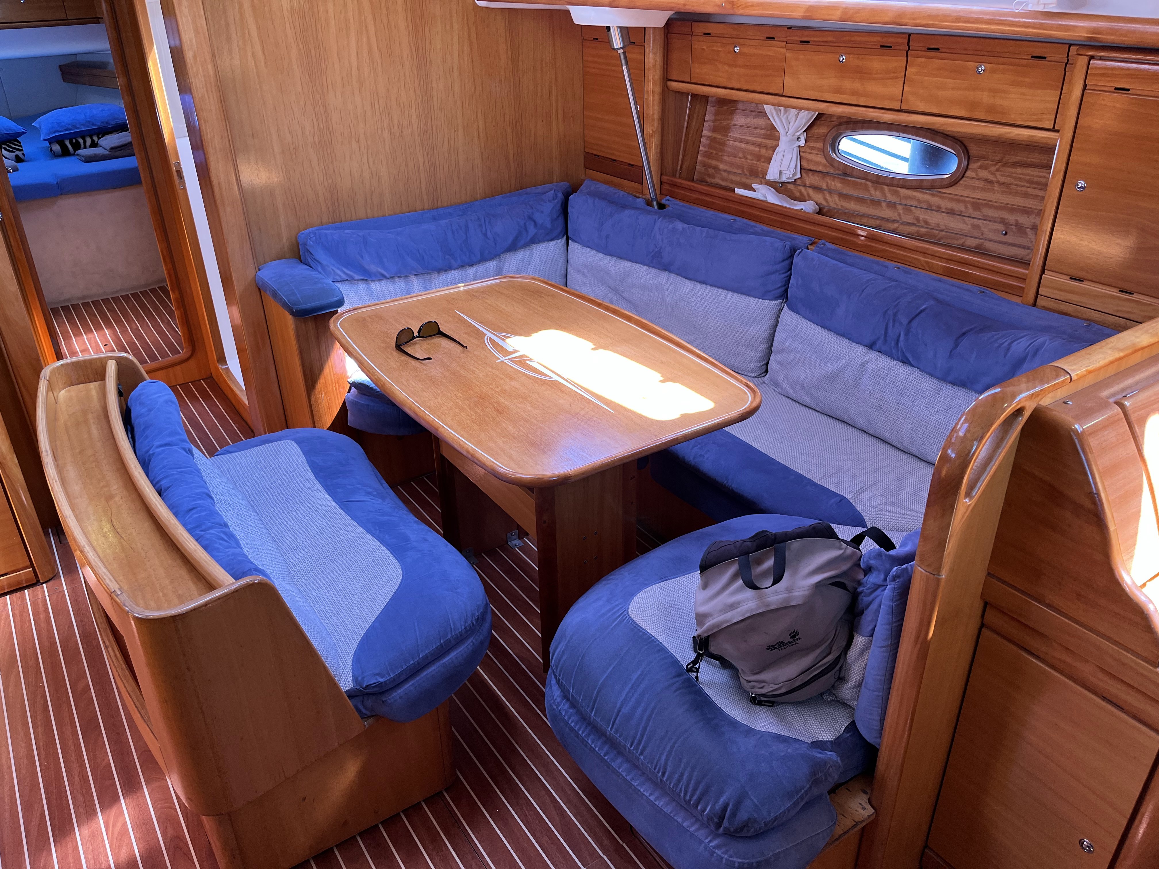 | Outside | 12 V-Anschluss, 220 V-Landanschluss, Biminitop, Bootshaken, Cockpitlautsprecher, Deckpolster, elektr. Ankerwinsch, Fender, Festmacherleinen, Heckdusche, Spi-Winschen, Sprayhood, Wasserschlauch, Winschen |