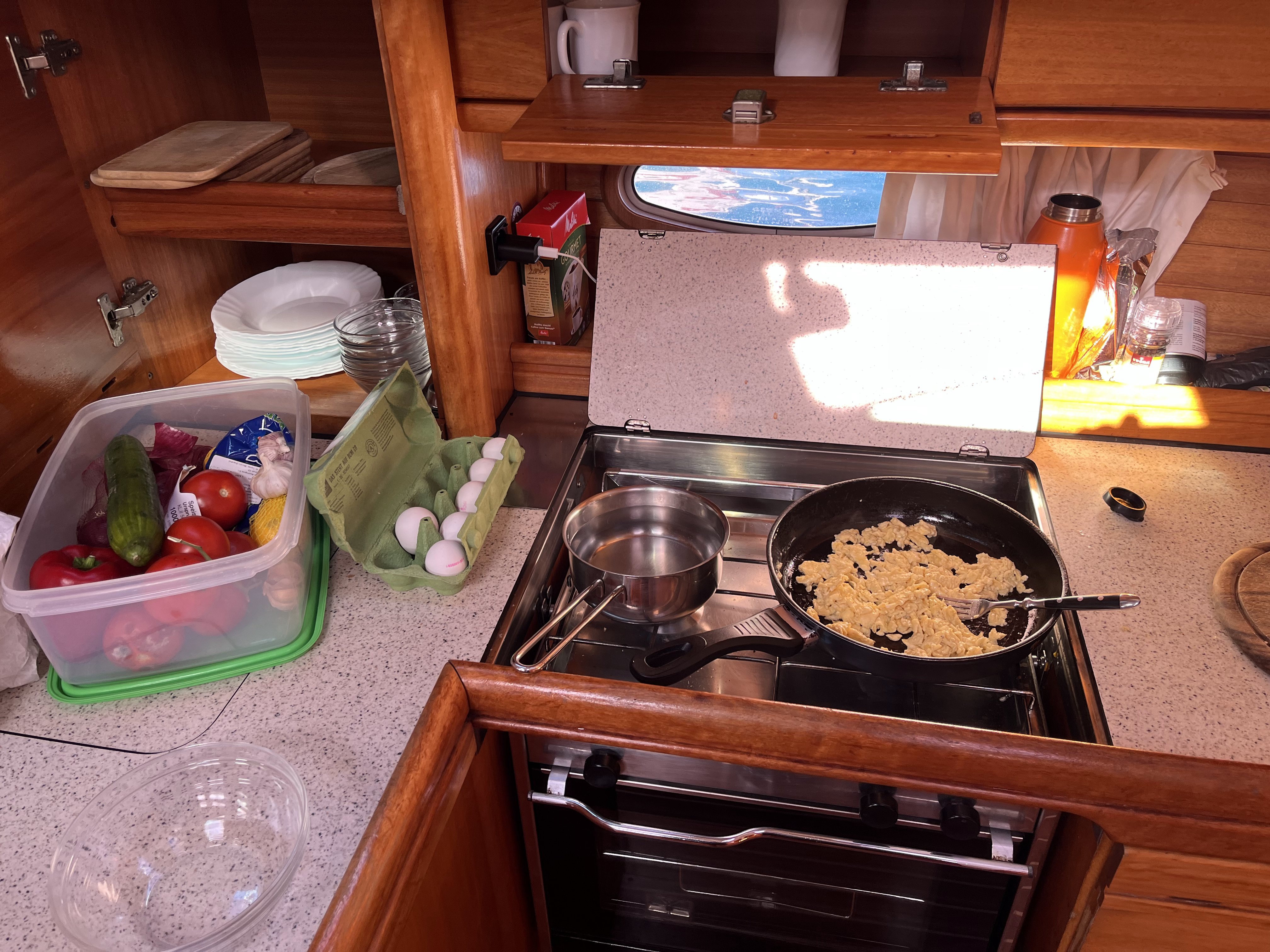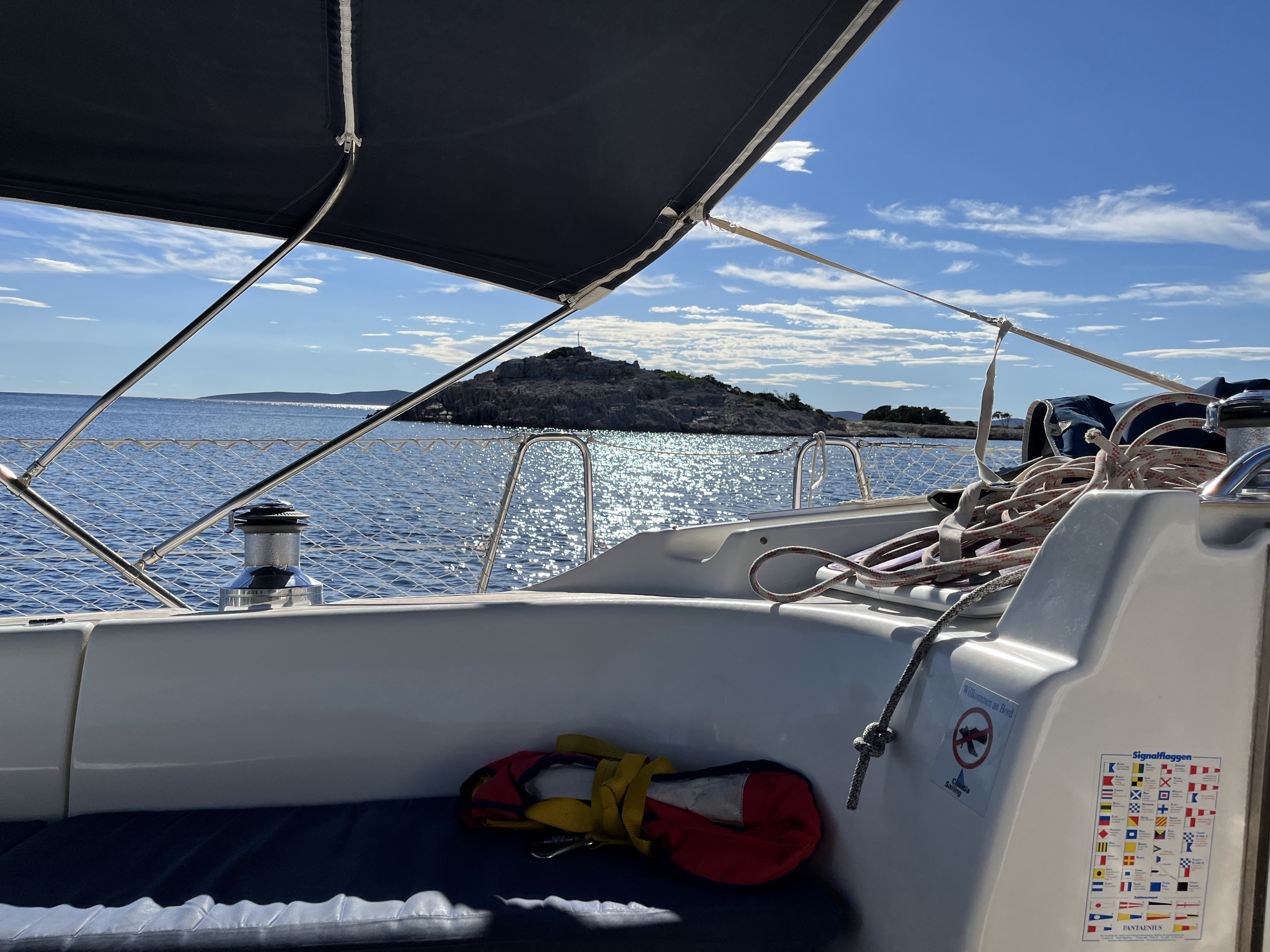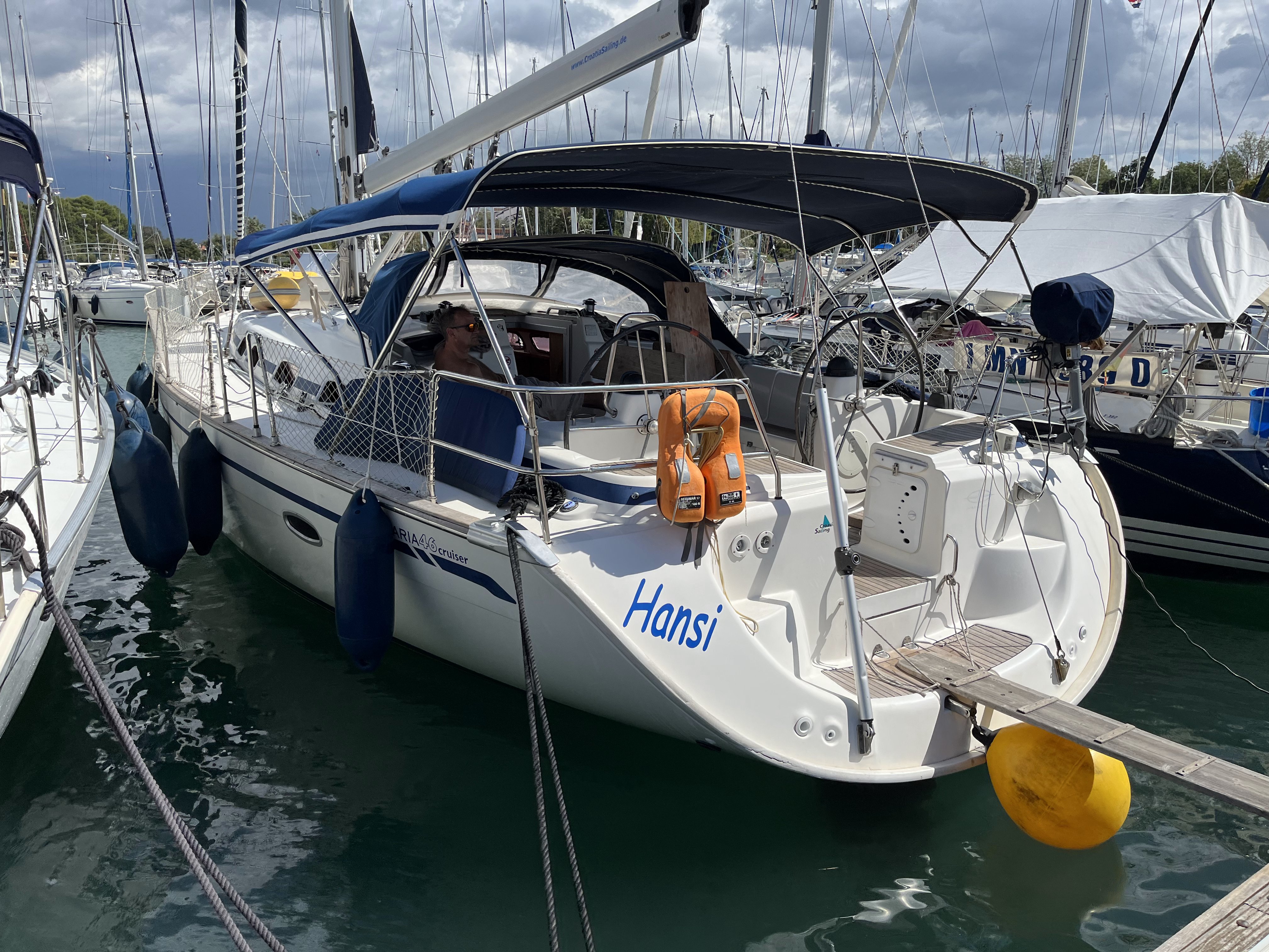 | Outside | 12 V-Anschluss, 220 V-Landanschluss, Biminitop, Bootshaken, Cockpitlautsprecher, Deckpolster, elektr. Ankerwinsch, Fender, Festmacherleinen, Heckdusche, Spi-Winschen, Sprayhood, Wasserschlauch, Winschen |
