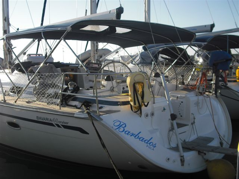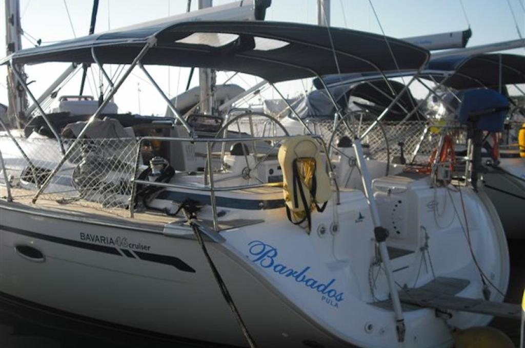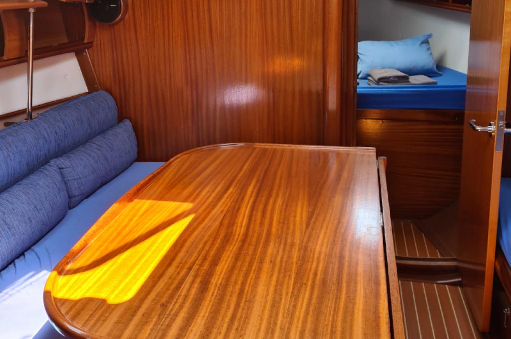 | Outside | 12 V-Anschluss, 220 V-Landanschluss, Biminitop, Bootshaken, Cockpitlautsprecher, Deckpolster, elektr. Ankerwinsch, Fender, Festmacherleinen, Heckdusche, Spi-Winschen, Sprayhood, Teakdeck, Wasserschlauch, Winschen |