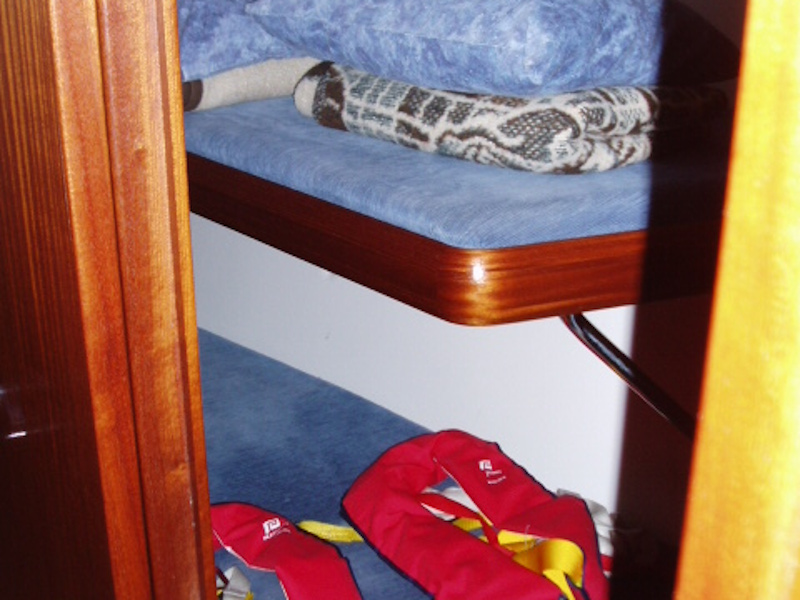 | Navigation | Barometer, Echolot, Fernglas, GPS mit Kartenplotter im Salon, Hafenhandbücher, Handpeilkompass, Navigationsbesteck, Radar, Seekarten, Steuerkompass, Sumlog, Sumlog und Echolot, Tridata (Log, Echolot, Windm.), Windmesser |