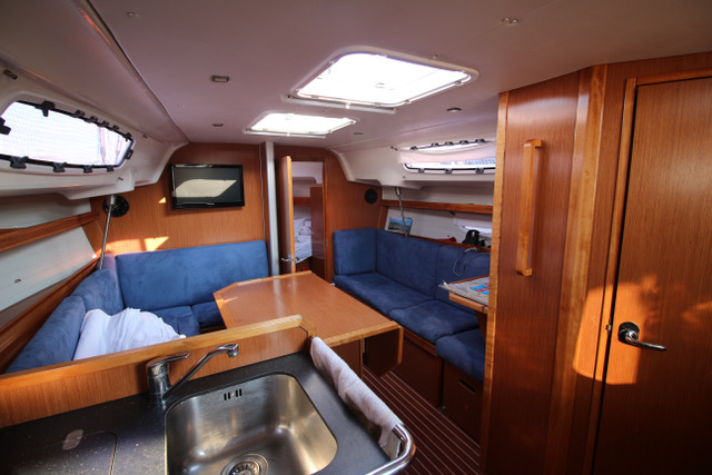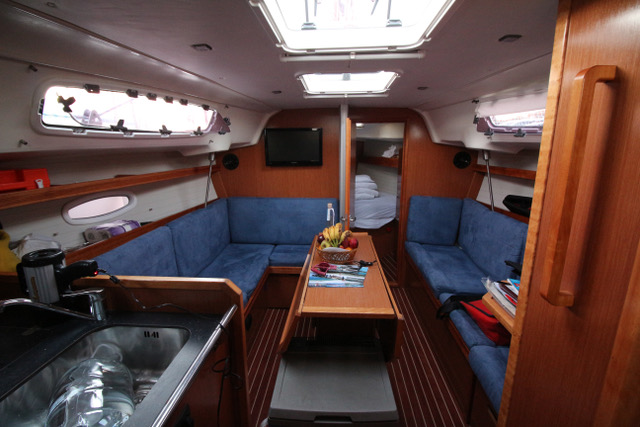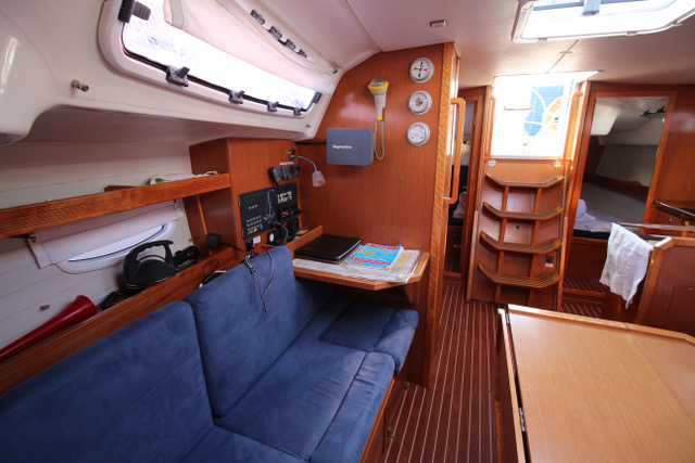 | Navigation | Barometer, Fernglas, GPS mit Kartenplotter im Salon, Hafenhandbücher, Handpeilkompass, Kompass, Navigationsbesteck, Seekarten, Thermometer, Tridata (Log, Echolot, Windm.), Windmesser |