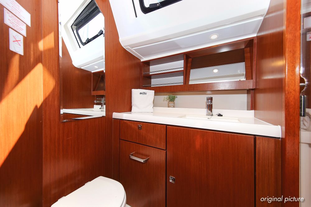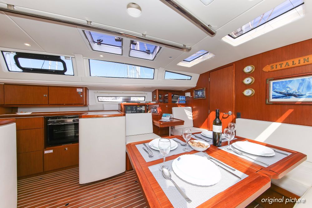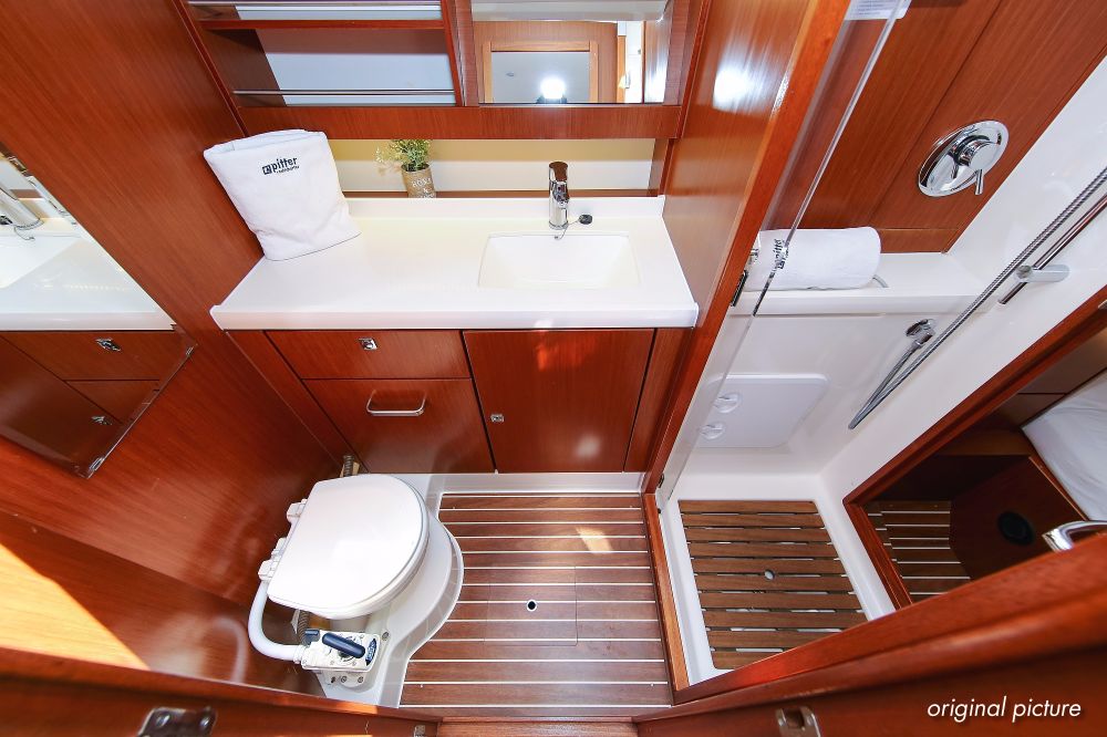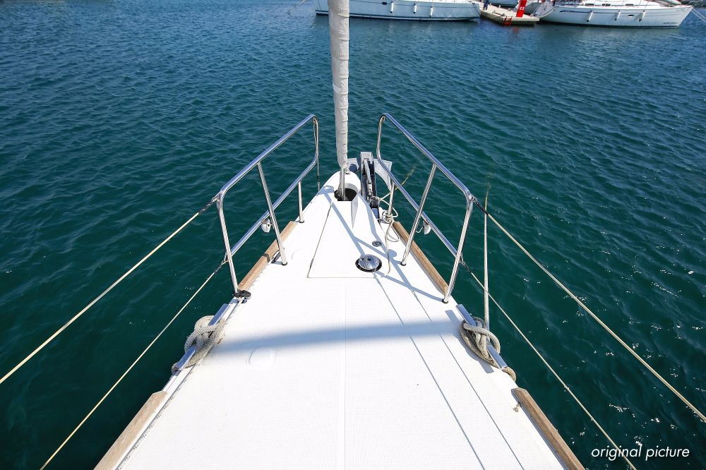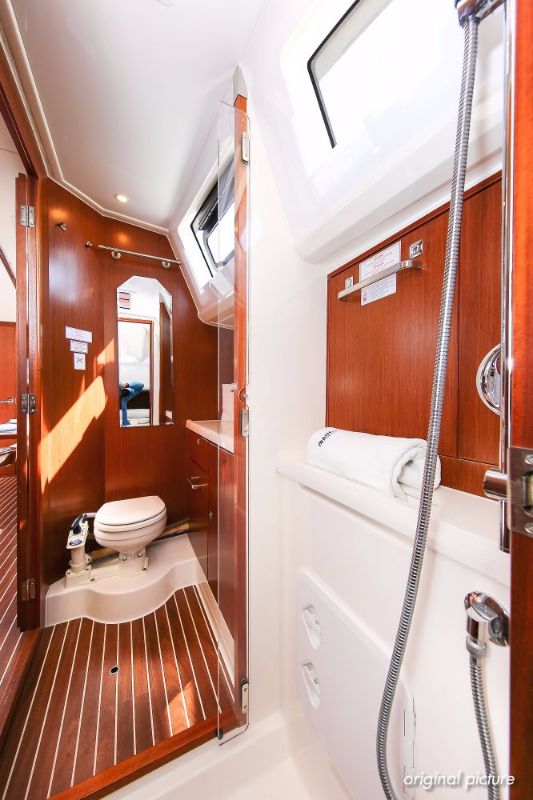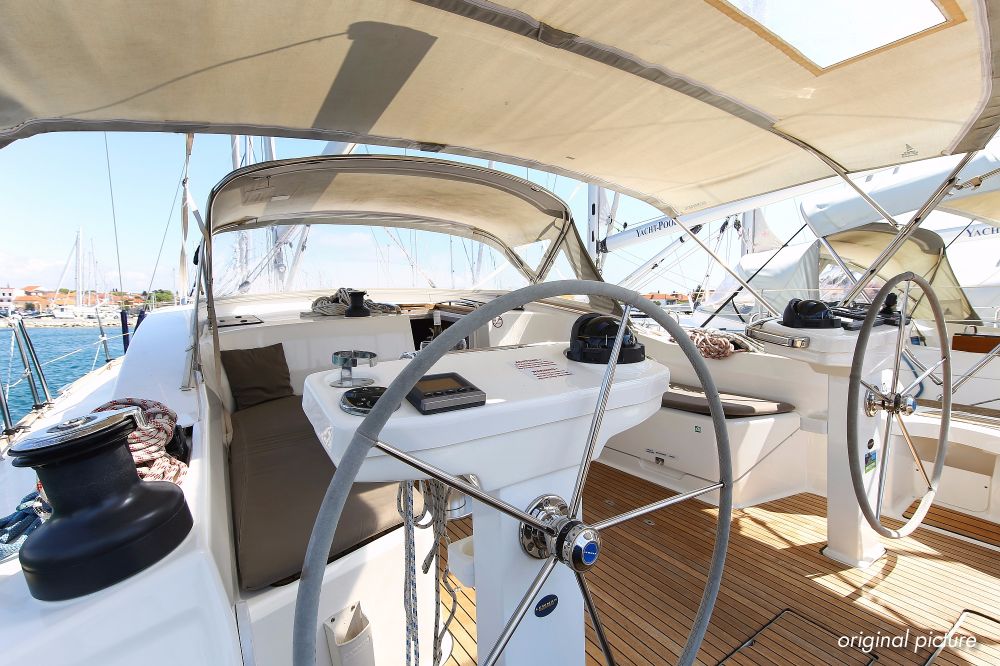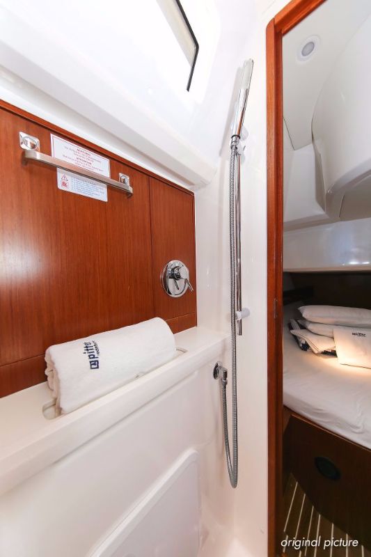 | Outside | 220 V-Landanschluss, Ankerwinsch, Badeplattform, Biminitop, Bootshaken, Cockpitdusche, Cockpitlautsprecher, Cockpitpolster, Cockpittisch absenkbar, Dieselkanister , elektr. Ankerwinsch, Fender, Festmacherleinen, Gangway, Kugelfender, Kunststoff-Eimer (Pütz), Sprayhood, Teak im Cockpit, Wantenschneider, Wasserkanister , Wasserschlauch, Windex |