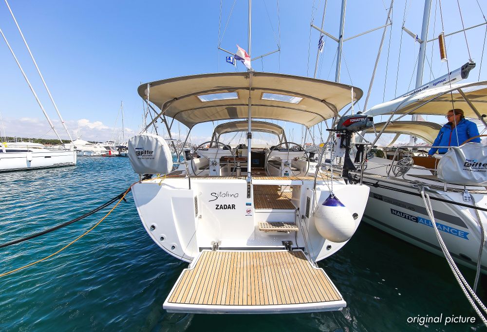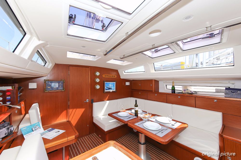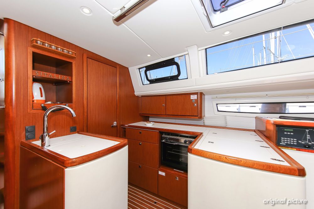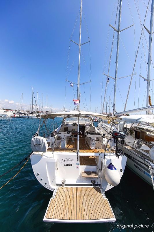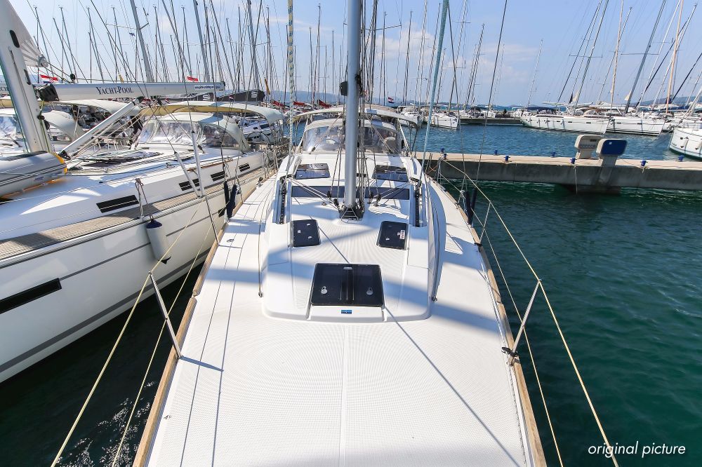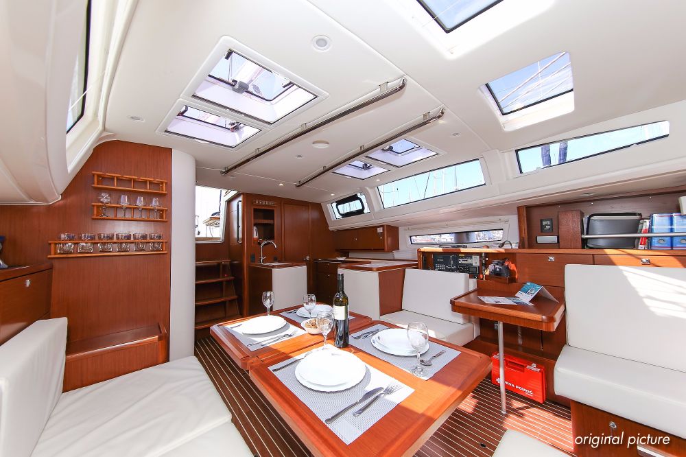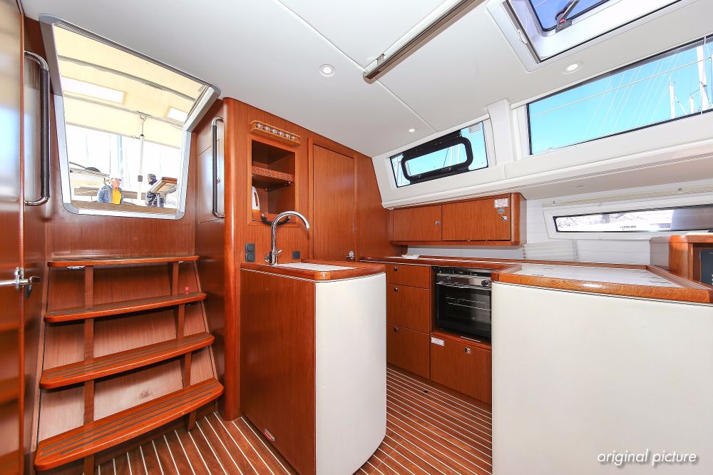 | Outside | 220 V-Landanschluss, Ankerwinsch, Badeplattform, Biminitop, Bootshaken, Cockpitdusche, Cockpitlautsprecher, Cockpitpolster, Cockpittisch absenkbar, Dieselkanister , elektr. Ankerwinsch, Fender, Festmacherleinen, Gangway, Kugelfender, Kunststoff-Eimer (Pütz), Sprayhood, Teak im Cockpit, Wantenschneider, Wasserkanister , Wasserschlauch, Windex |