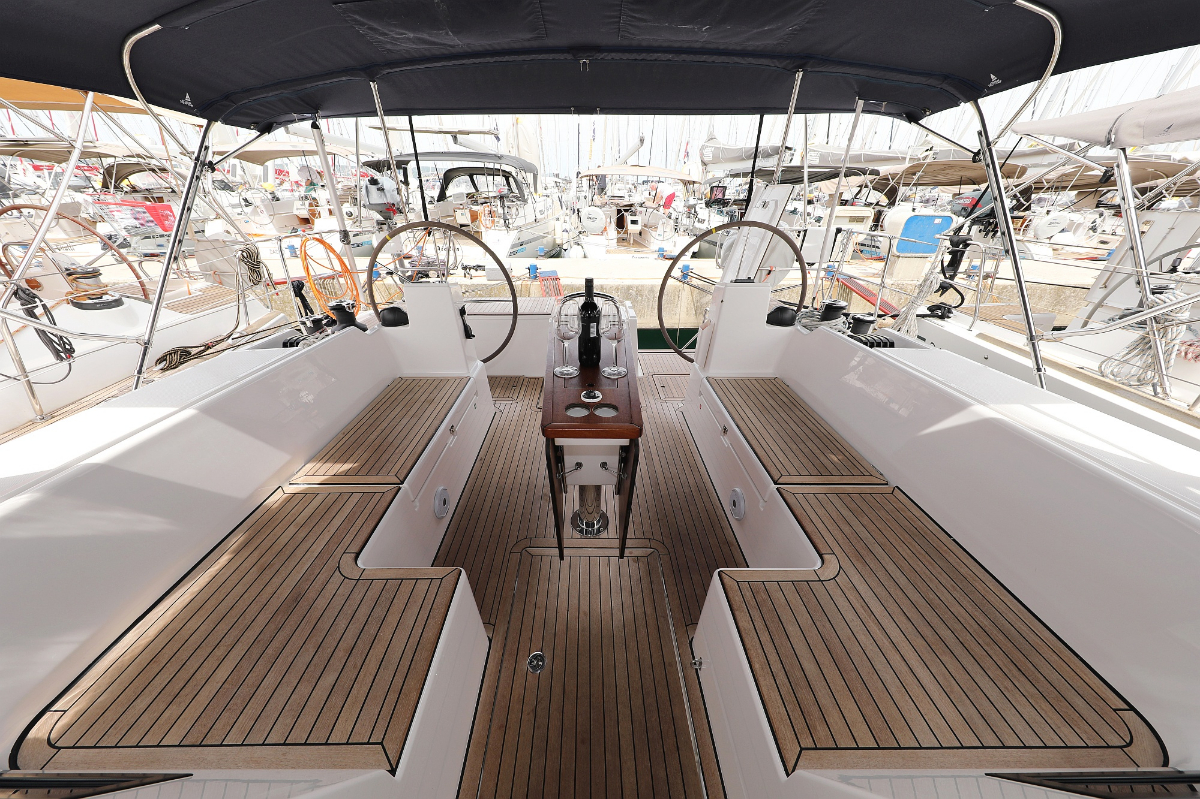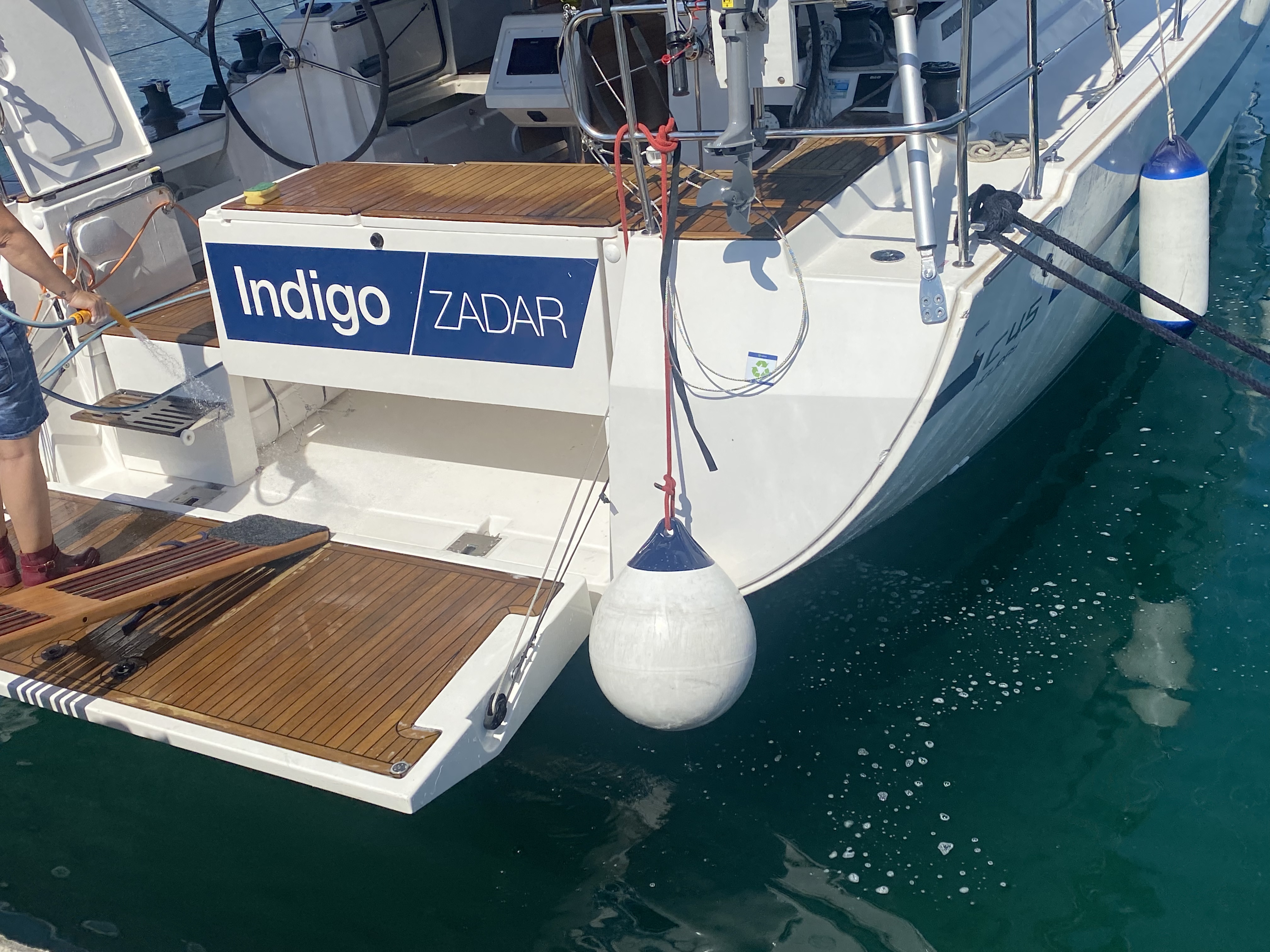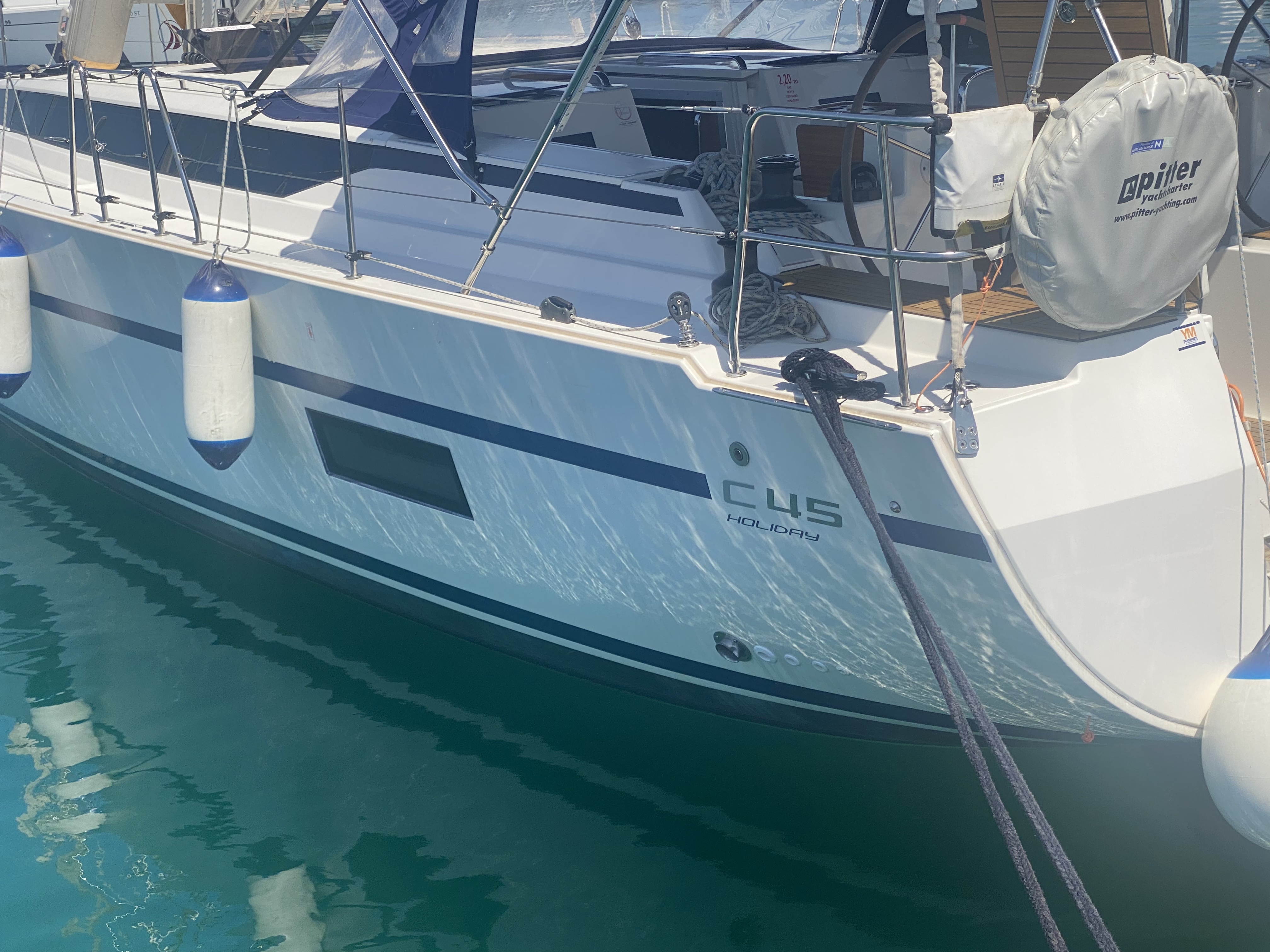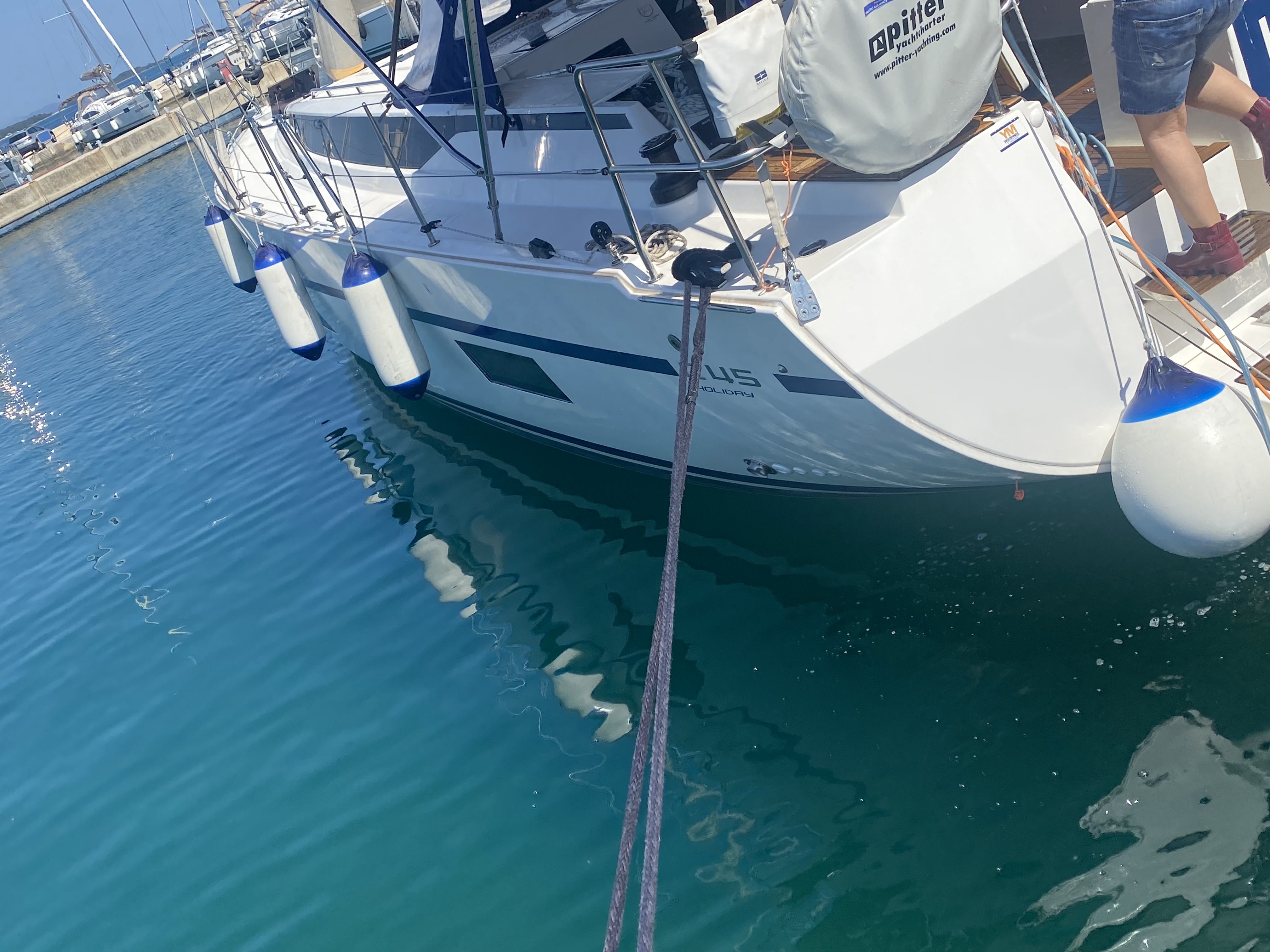 | Outside | 220 V-Landanschluss, Anker mit Kette, Ankerwinsch, Badeplattform, Biminitop, Bootshaken, Cockpitdusche, Cockpitlautsprecher, Cockpitpolster, Cockpittisch, Dieselkanister , elektr. Ankerwinsch, Fender, Festmacherleinen, Gangway, Kugelfender, Kunststoff-Eimer (Pütz), Solaranlage, Sprayhood, Teak im Cockpit, Wantenschneider, Wasserkanister , Wasserschlauch |
