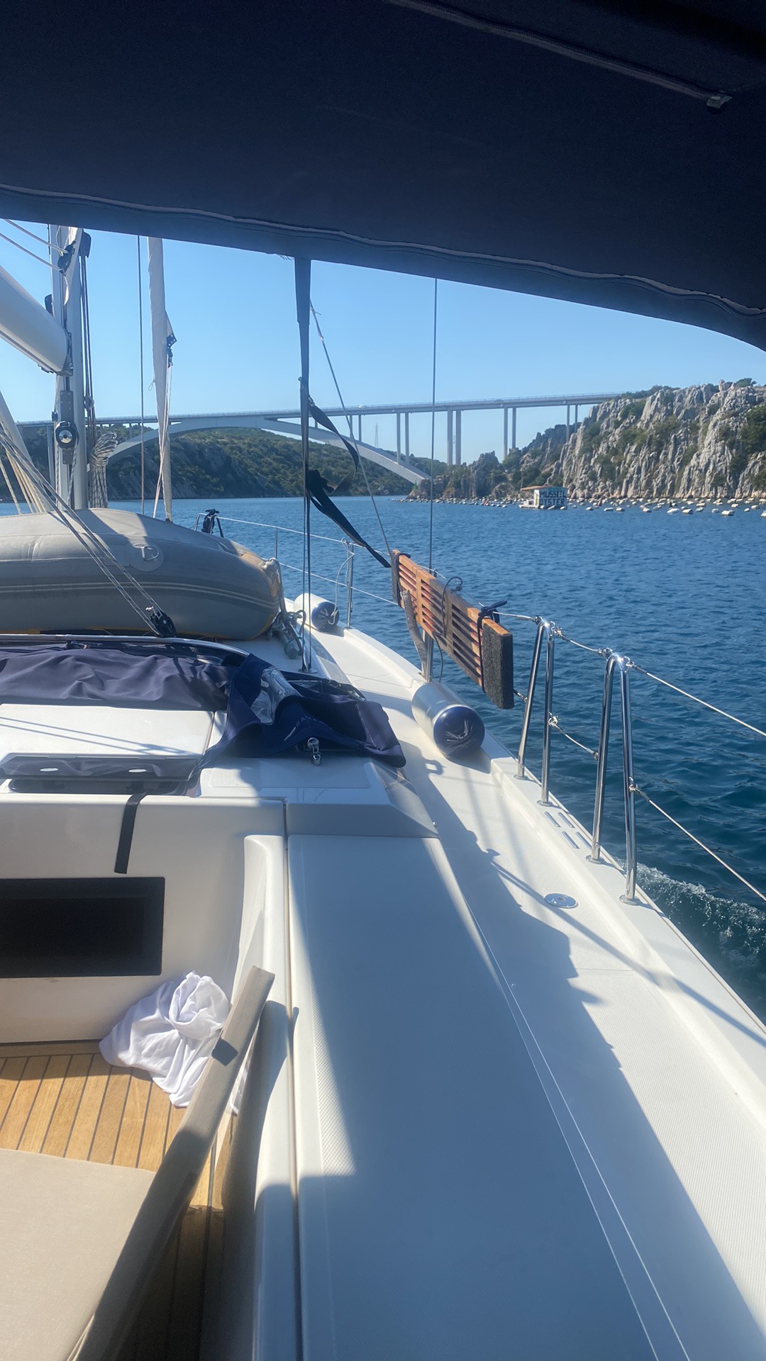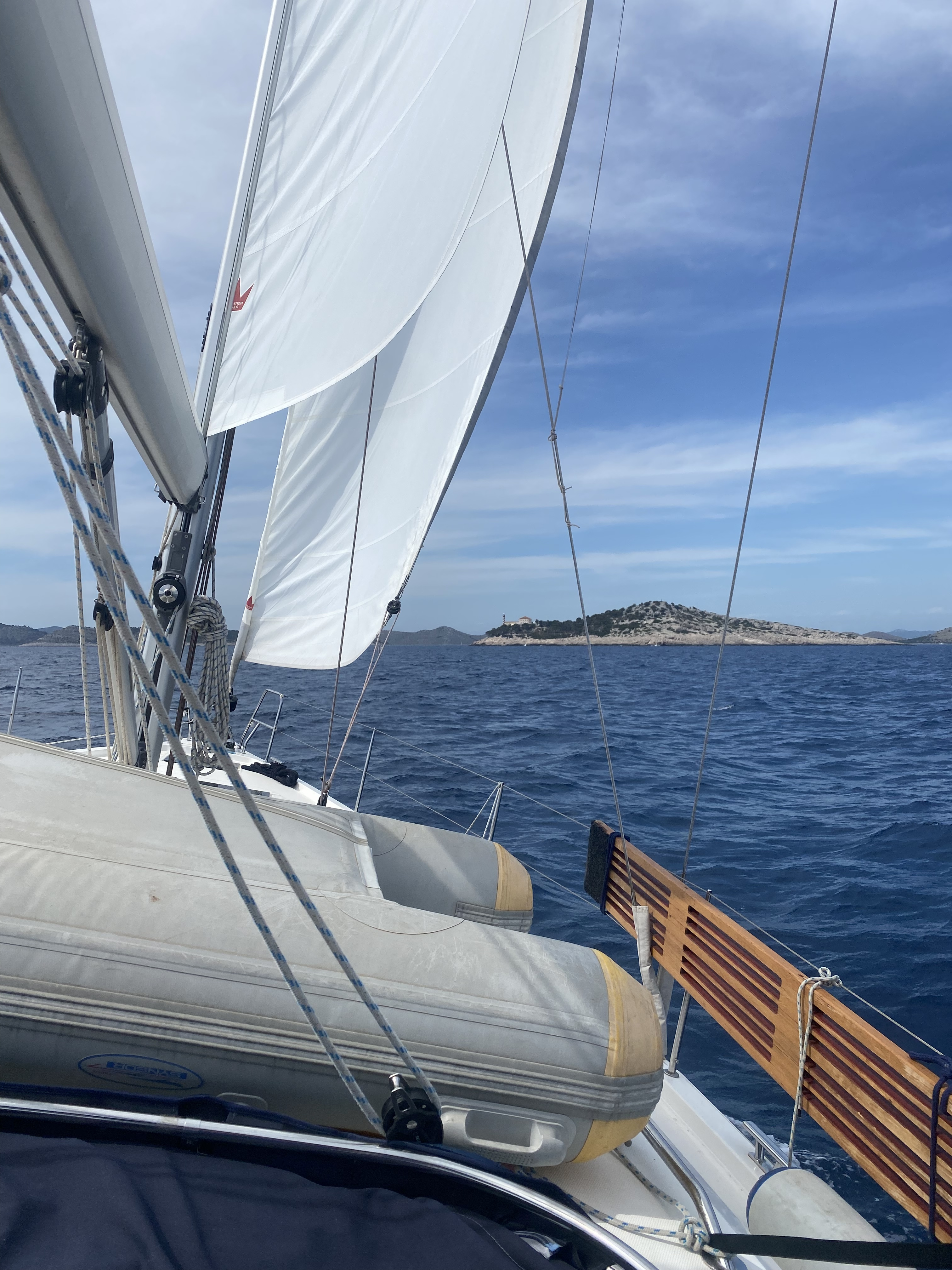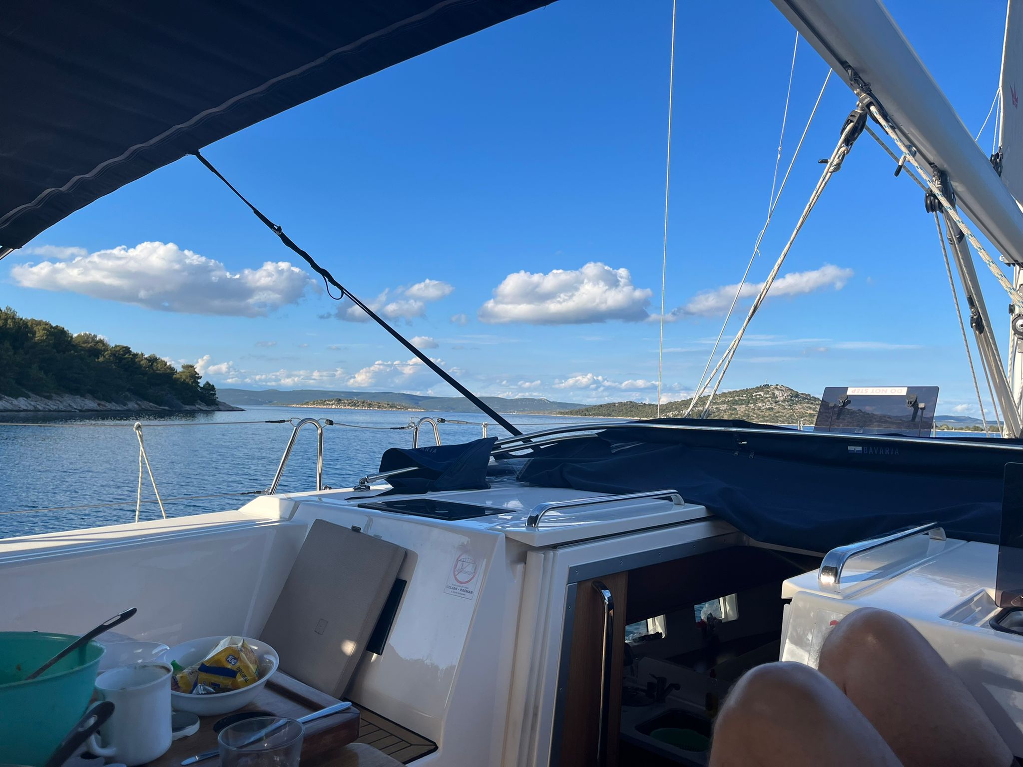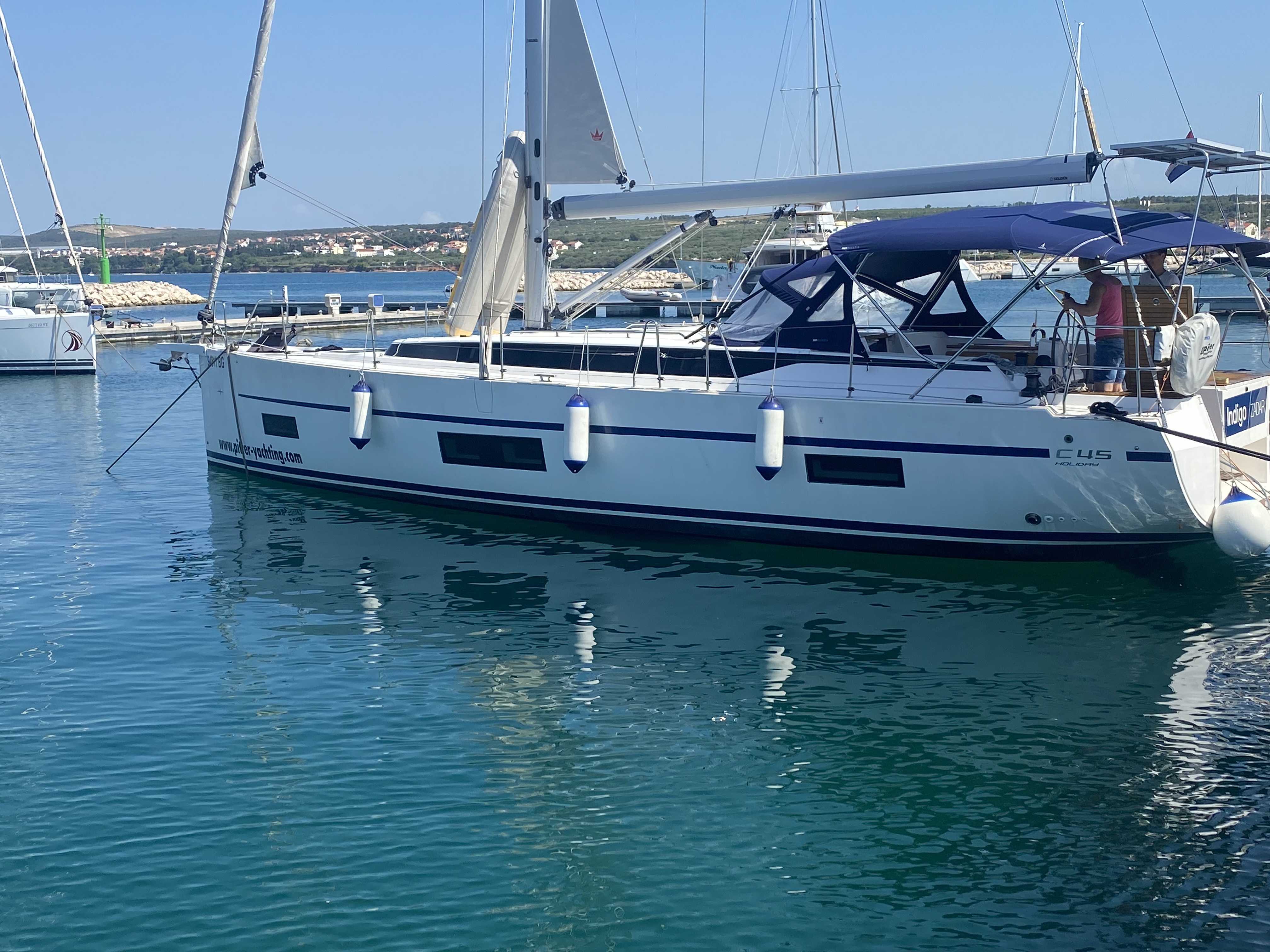 | Navigation | Barometer, Fernglas mit Peilkompass, GPS mit Kartenplotter im Cockpit, Hafenhandbücher, Navigationsbesteck, Seekarten, Tridata (Log, Echolot, Windm.) |