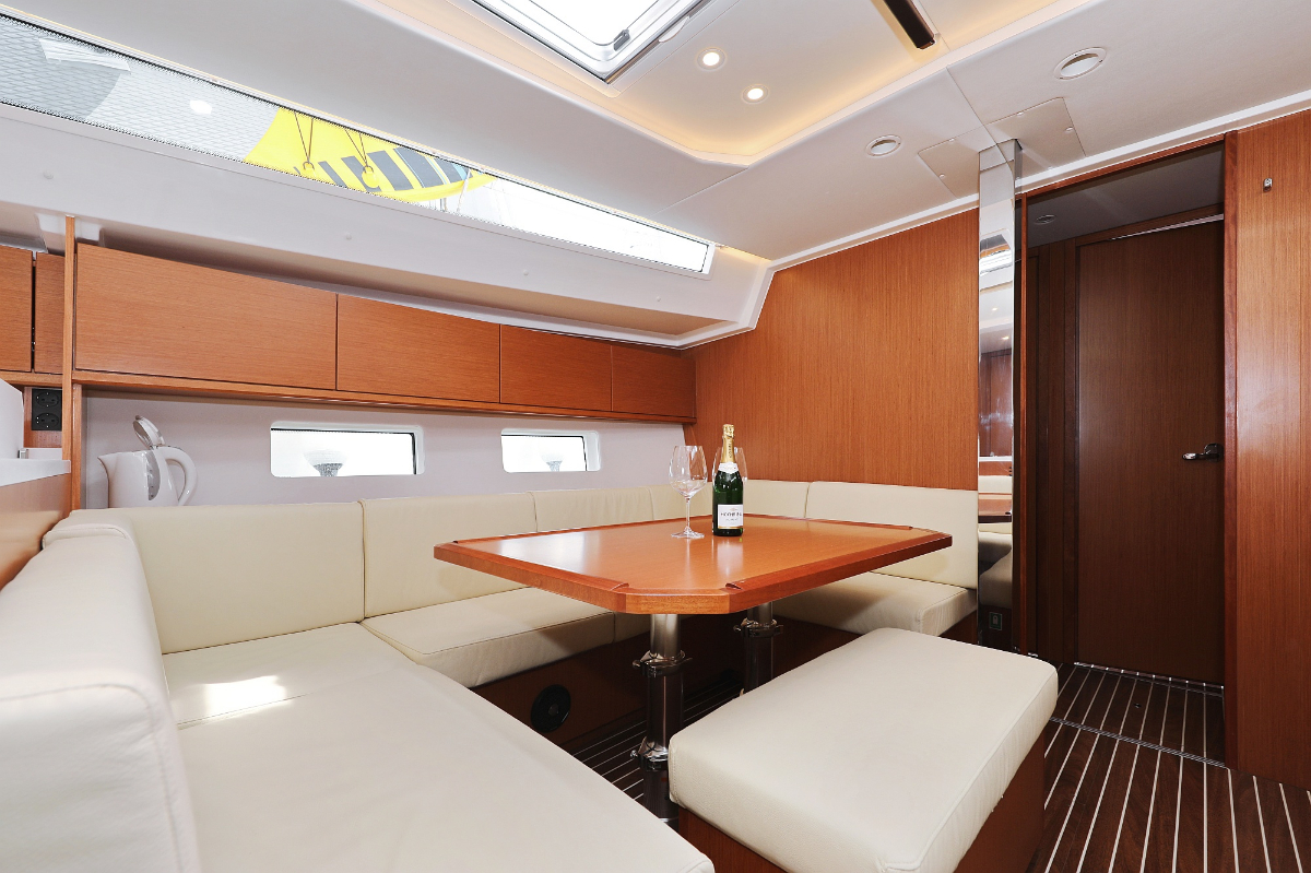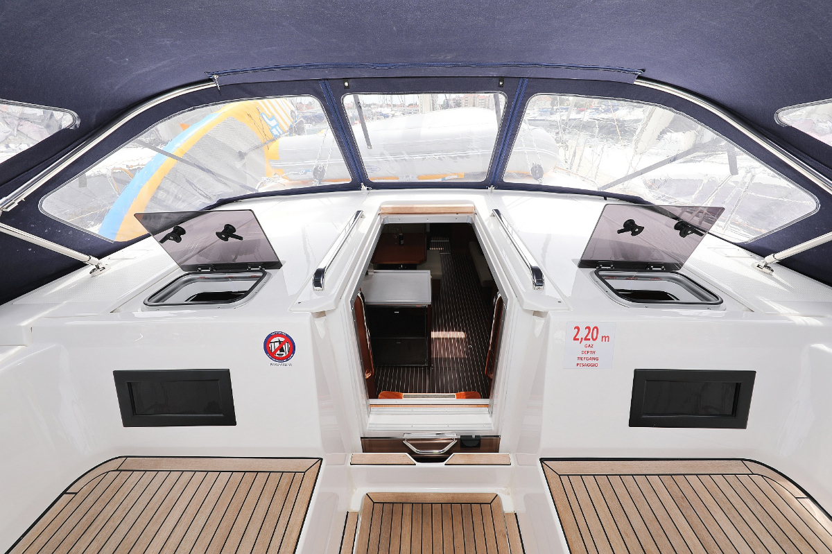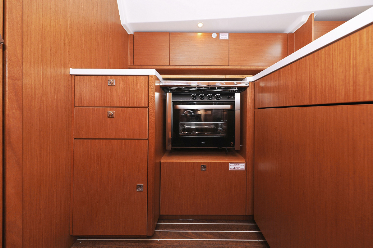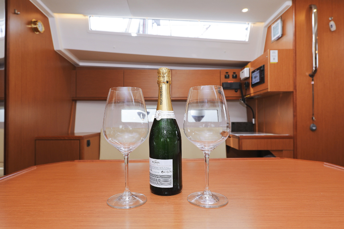 | Safety | Automatikwesten, Autopilot, Blitzboje, Bootsmannstuhl, Bordapotheke, Bordwerkzeug, Bugstrahlruder, Feuerlöscher, Lifebelts, Motor-Ersatzteile, Nebelhorn, Notsignale, Radarreflektor, Reparaturset für Beiboot, Rettungsinsel, Suchscheinwerfer, Taschenlampe, UKW-Funk mit AIS, Zweitanker |