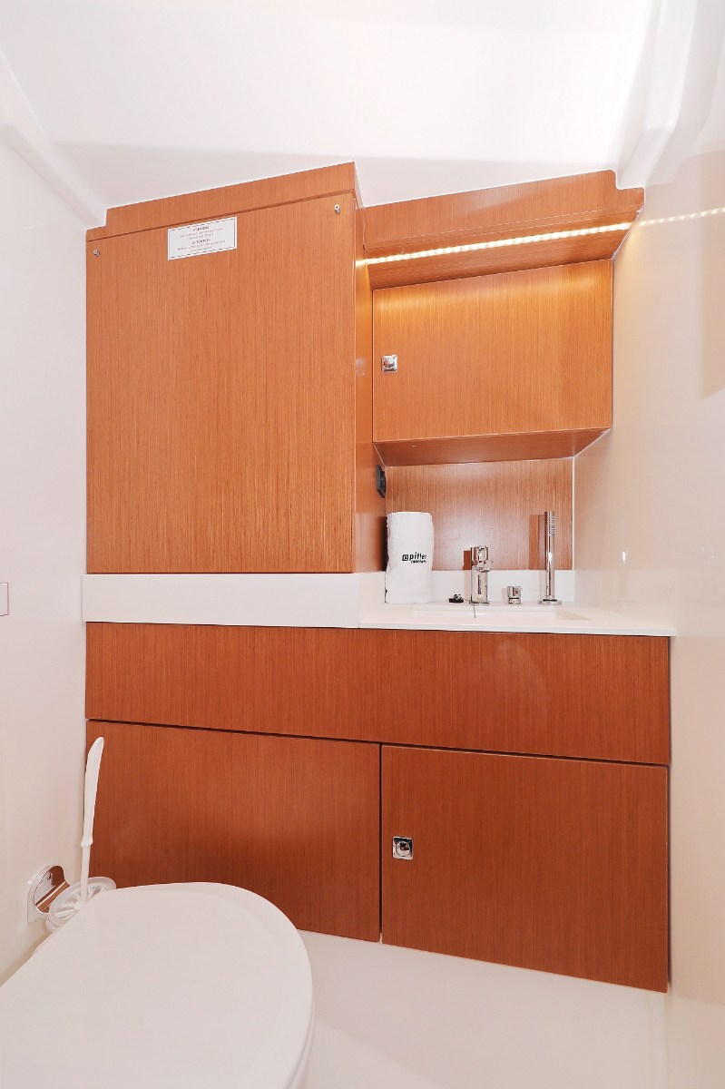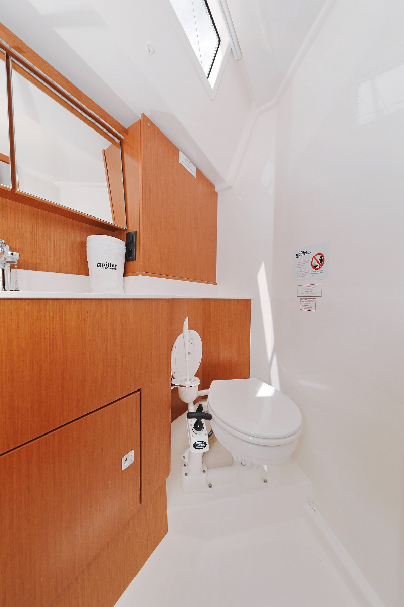 | Inside | Borduhr, Dusche, FUSION Sound System, Heizung, Inverter 12V/220V, Kühlschrank mit Gefrierfach, Ladegerät, Luftpumpe für Beiboot, Pantryausstattung, Radio mit CD, Salontisch absenkbar, Warmwasser |