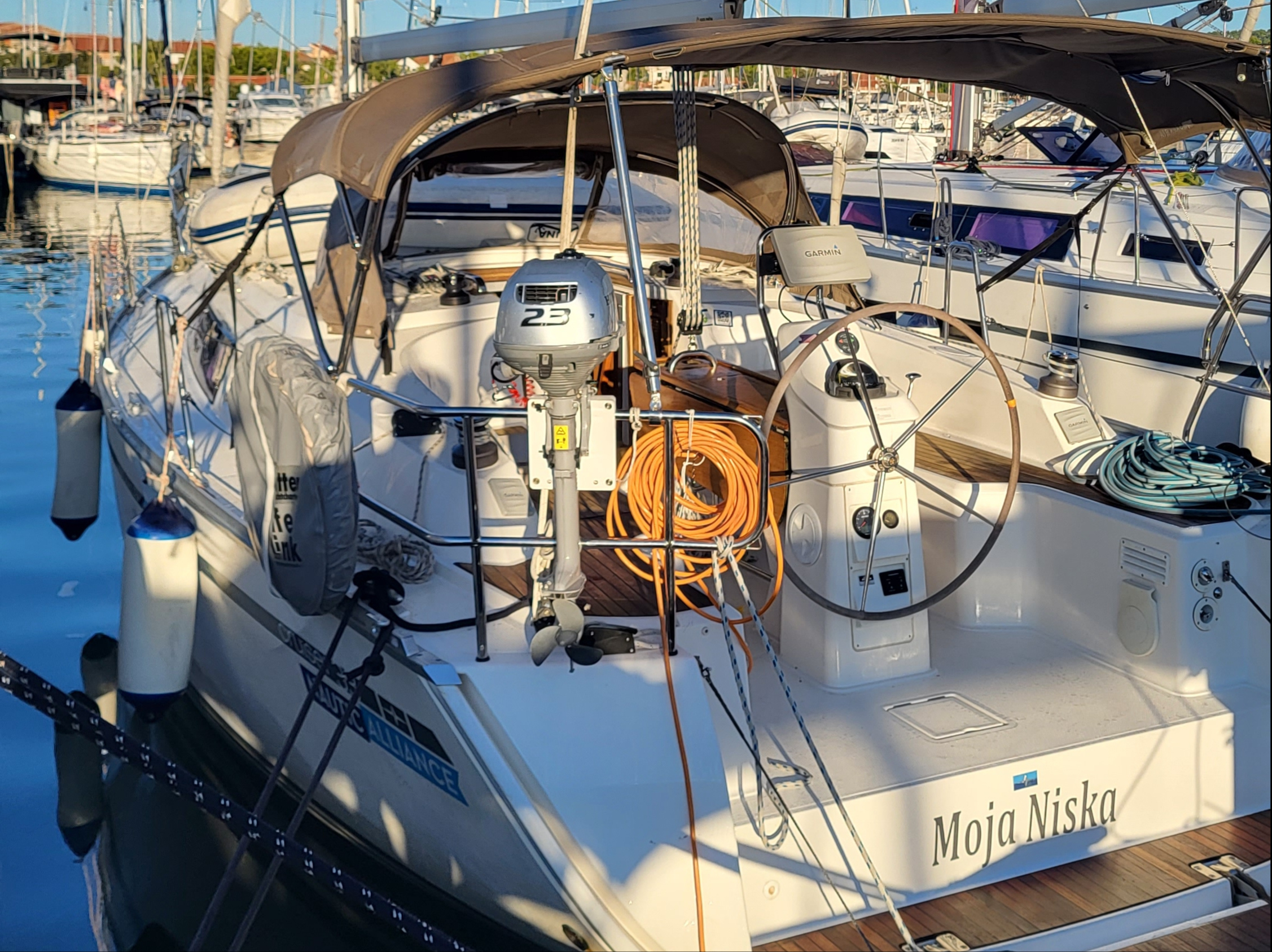 | Outside | 220 V-Landanschluss, Anker mit Kette, Ankerwinsch, Badeplattform, Biminitop, Bootshaken, Cockpitdusche, Cockpitlautsprecher, Cockpitpolster, Cockpittisch, Dieselkanister , elektr. Ankerwinsch, Fender, Festmacherleinen, Gangway, Kugelfender, Kunststoff-Eimer (Pütz), Sprayhood, Wantenschneider, Wasserkanister , Wasserschlauch |
