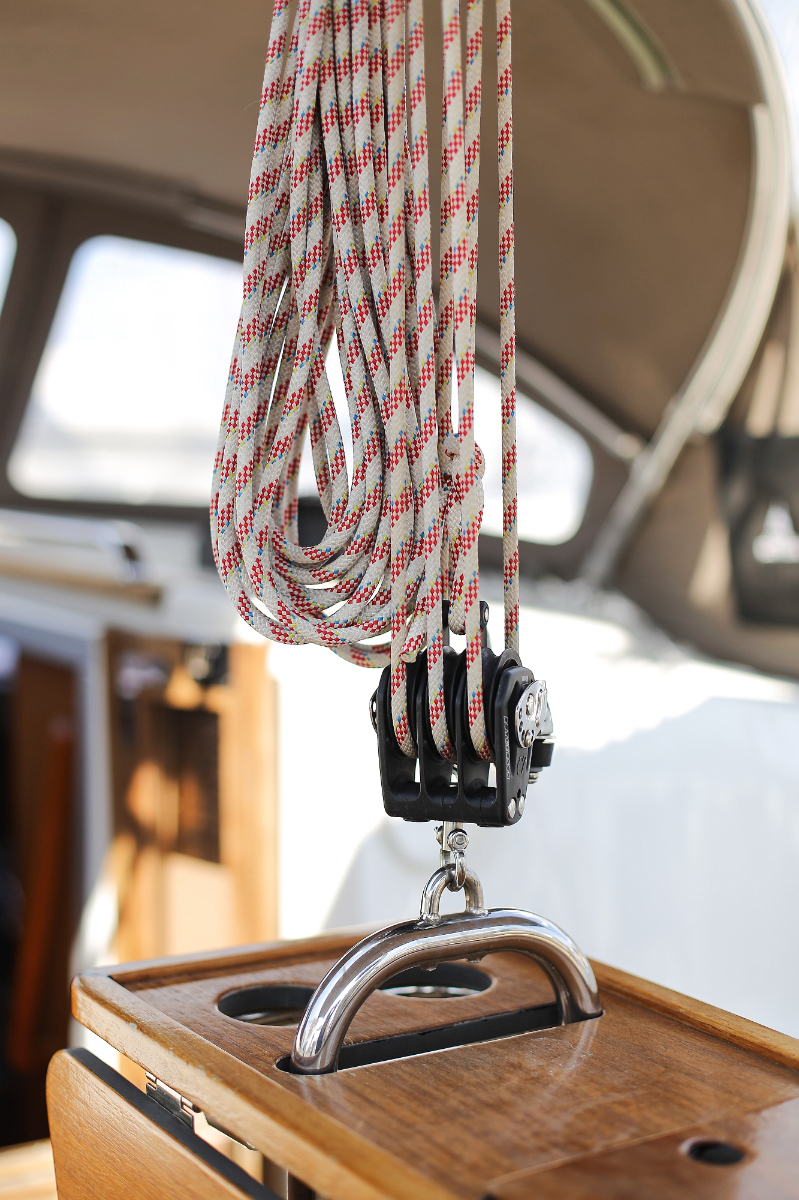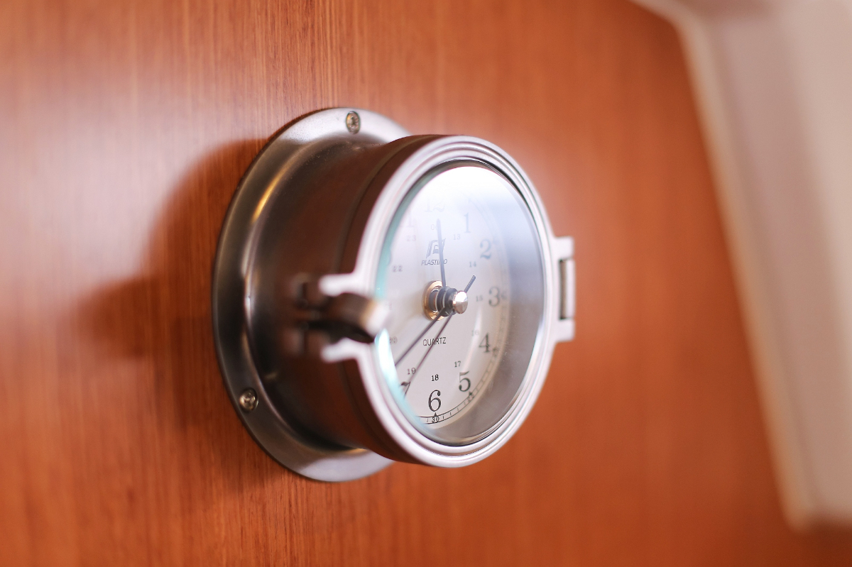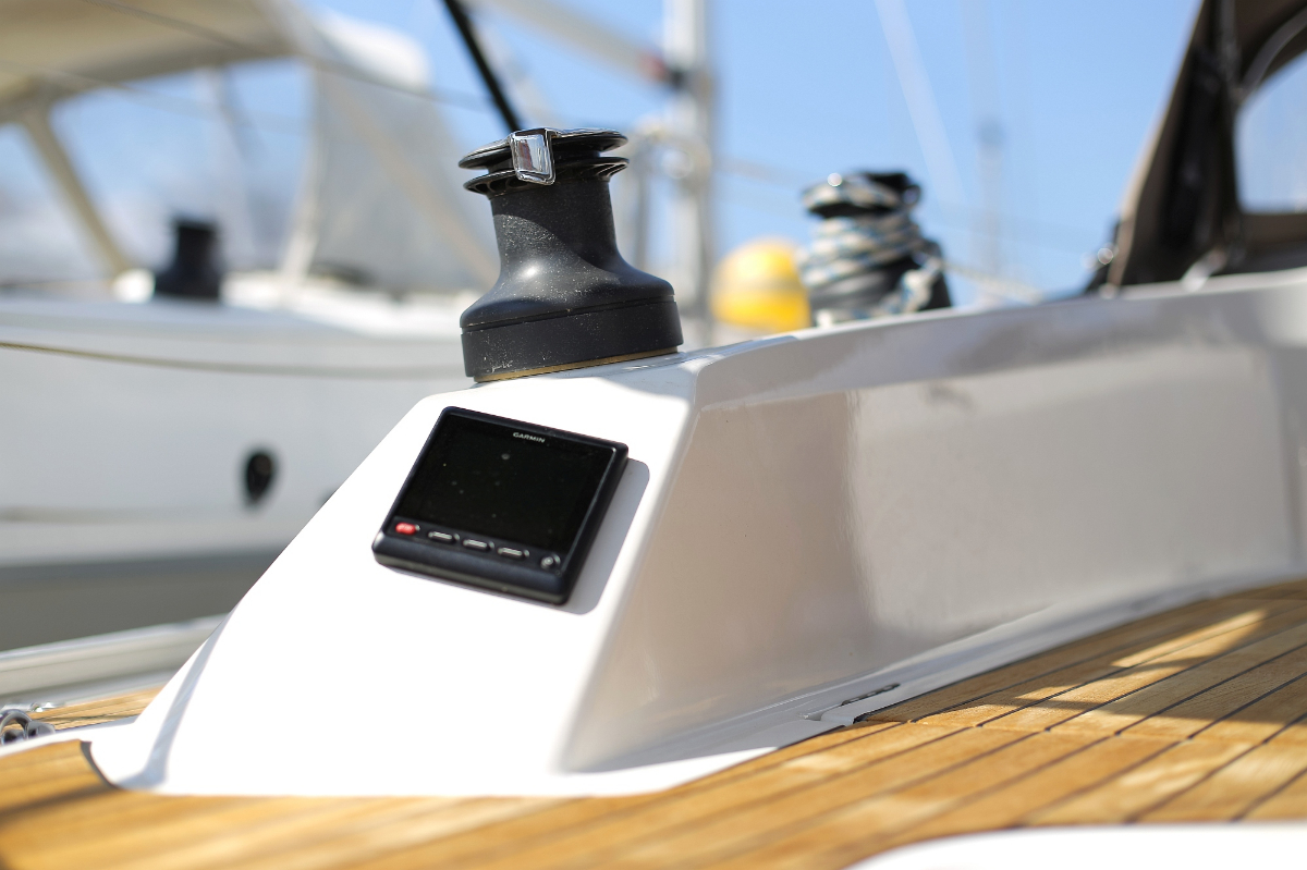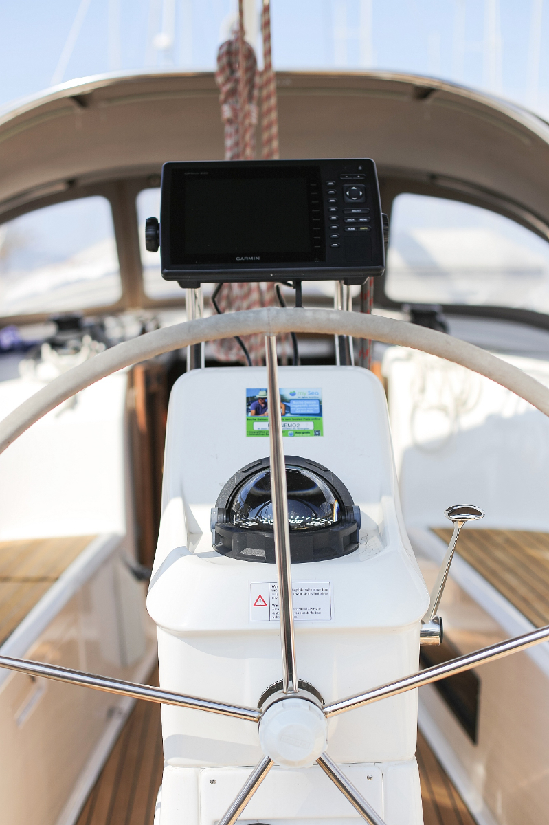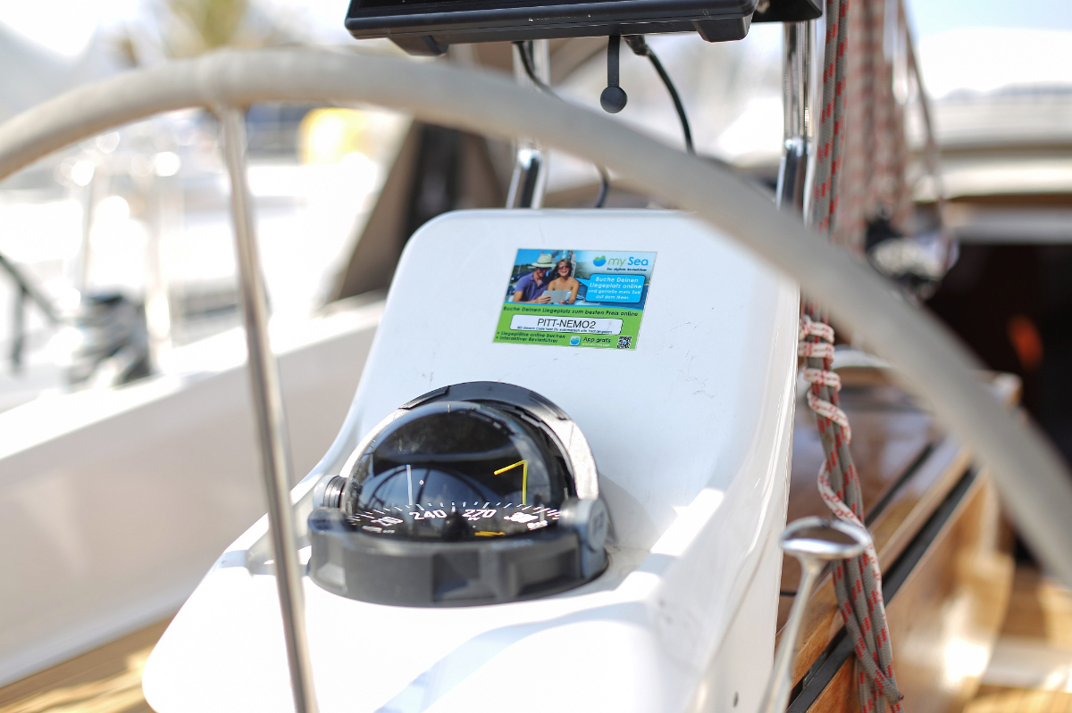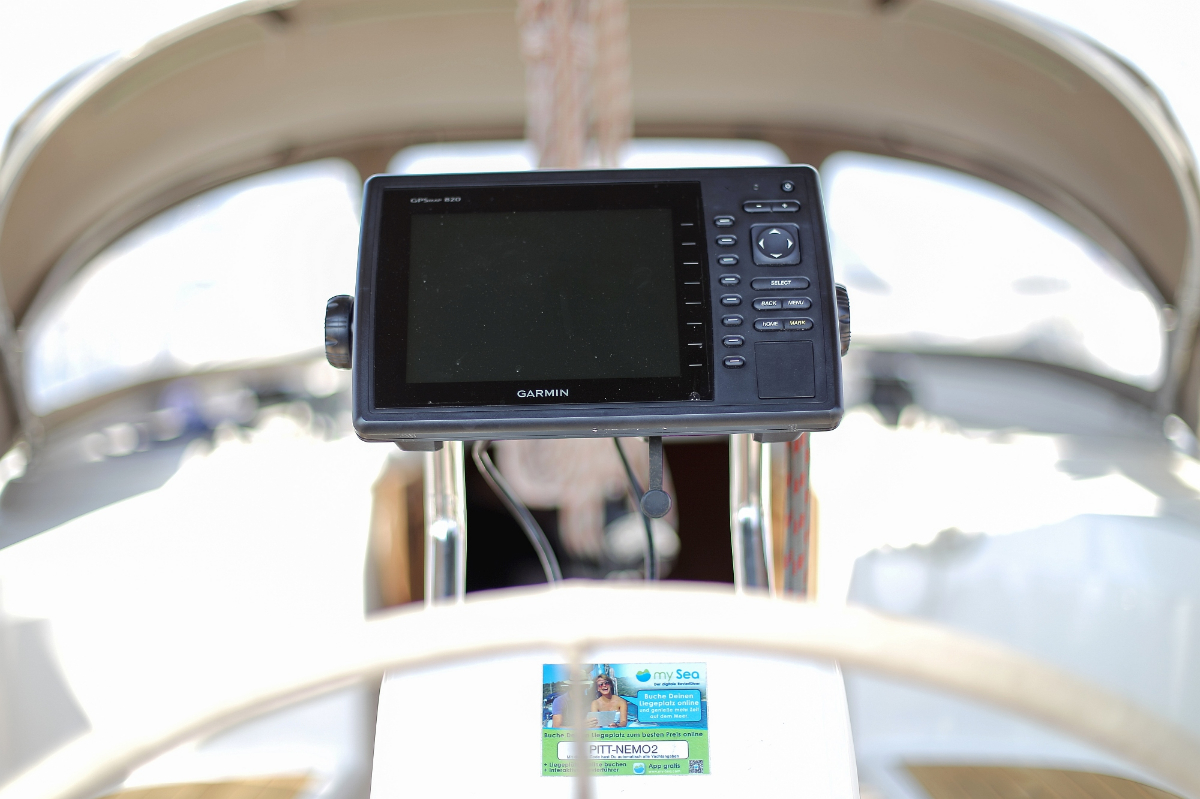 | Navigation | Barometer, Fernglas mit Peilkompass, GPS mit Kartenplotter im Cockpit, Hafenhandbücher, Navigationsbesteck, Seekarten, Tridata (Log, Echolot, Windm.) |