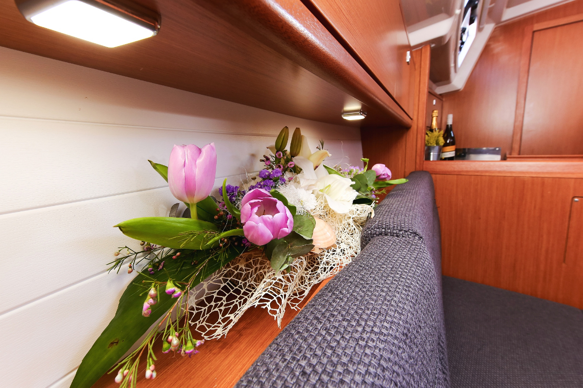 | Safety | Automatikwesten, Autopilot, Bootsmannstuhl, Bordapotheke, Bordwerkzeug, Feuerlöscher, Lifebelts, Nebelhorn, Notpinne, Notsignale, Radarreflektor, Reparaturset für Beiboot, Rettungsinsel, Suchscheinwerfer, Taschenlampe, UKW-Funk, Zweitanker |