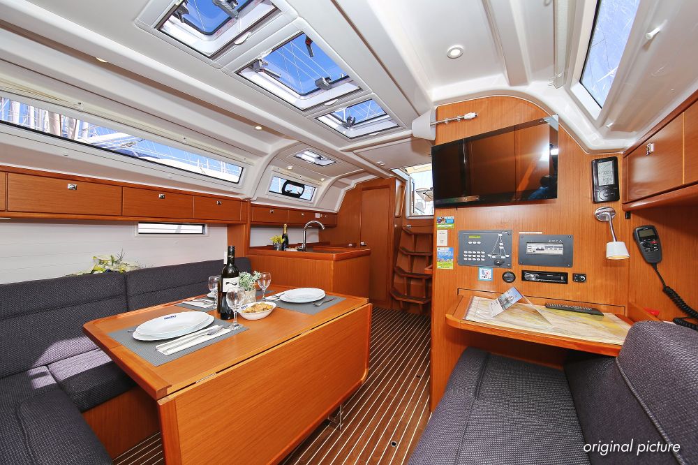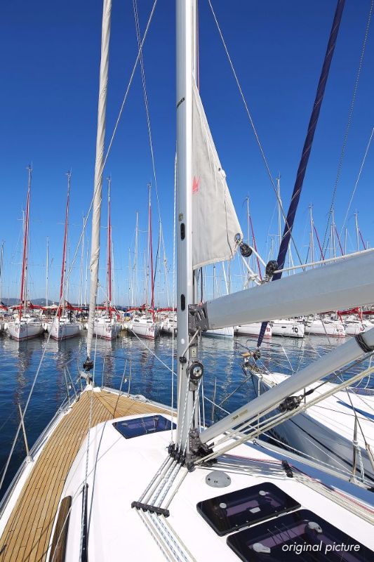 | Navigation | Fernglas, GPS mit Kartenplotter im Cockpit, Hafenhandbücher, Handpeilkompass, Navigationsbesteck, Seekarten, Tridata (Log, Echolot, Windm.) |