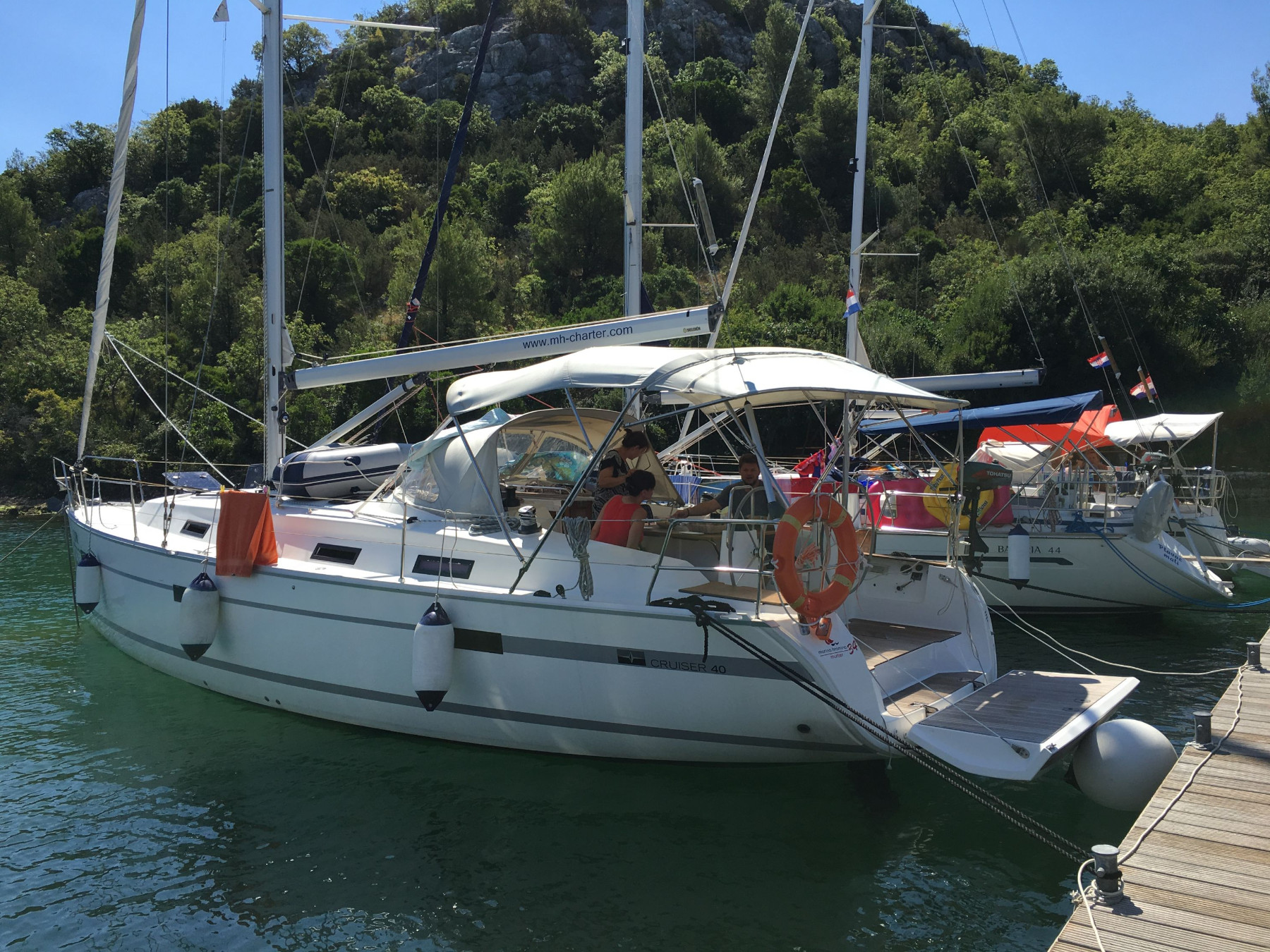 | Navigation | Barometer, Fernglas, GPS mit Kartenplotter im Salon, Hafenhandbücher, Handpeilkompass, Kompass, Navigationsbesteck, Seekarten, Thermometer, Tridata (Log, Echolot, Windm.), Windmesser |