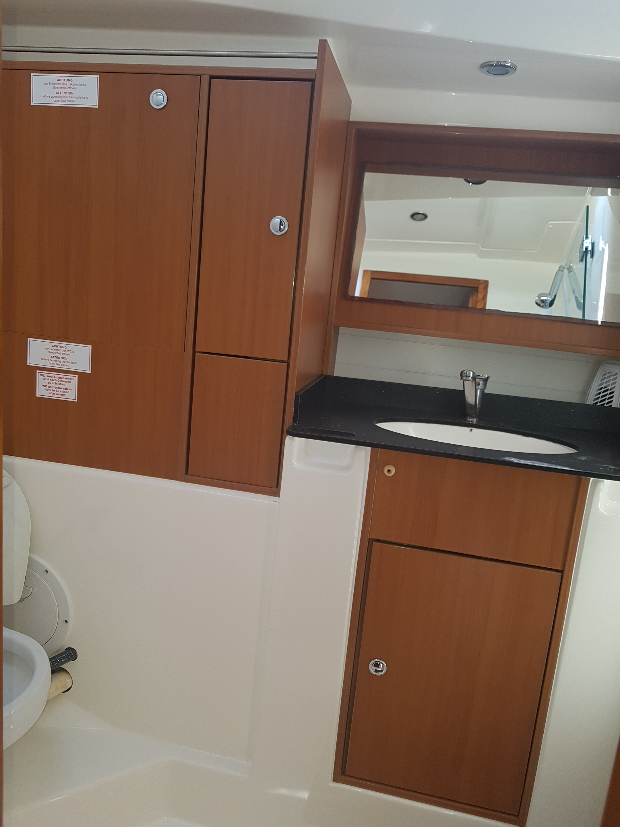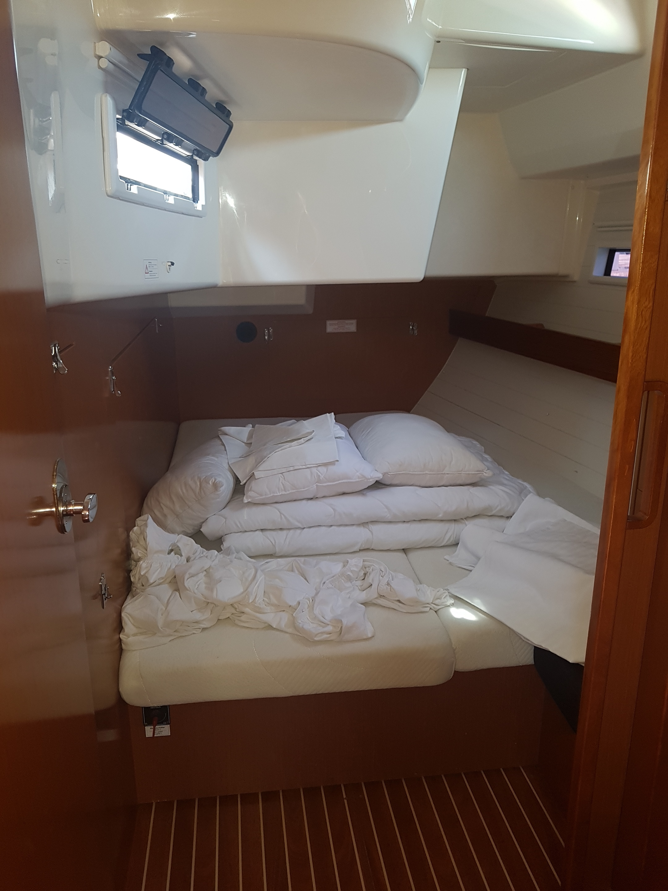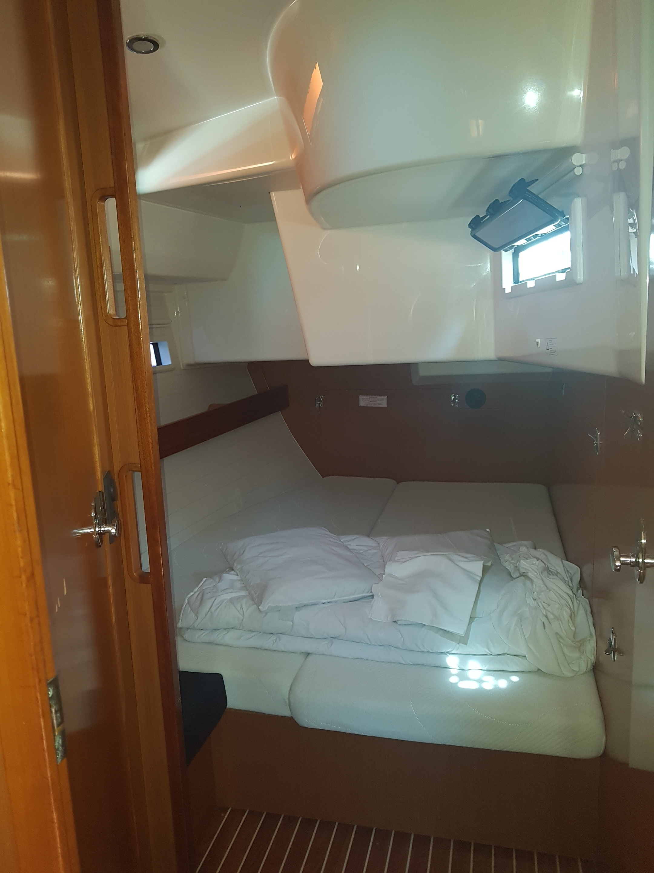 Die Yacht hatte kleine aber viele Mängel, die auch durchaus Sicherheitsrelevant waren, z.B. Ankerkette ohne Markierung, Badeplattform war an einer Seite nur mit einem Schrauben am Boot verschraubt, viele Kabinenlichter haben auf See nicht funktioniert.