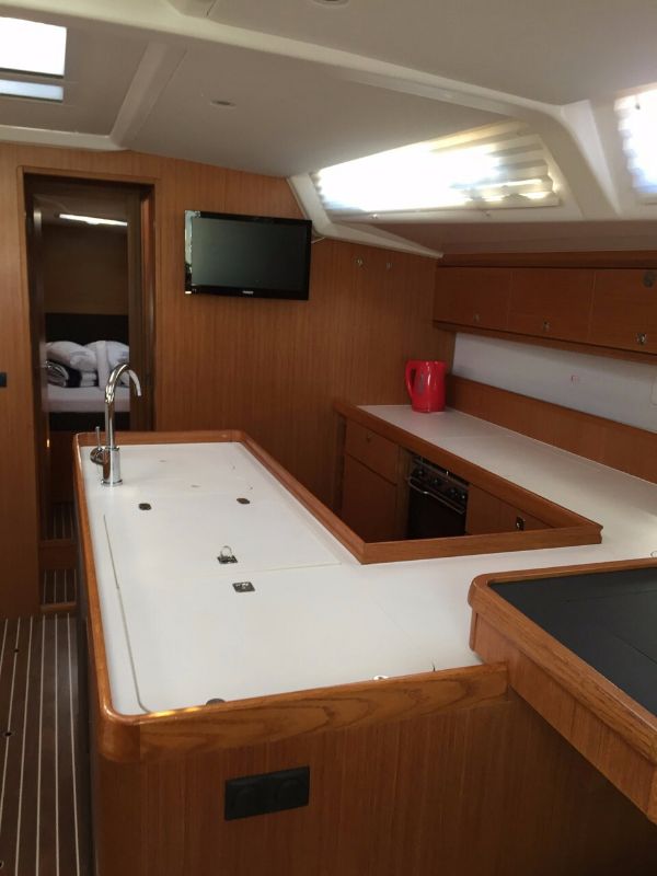| Inside | 2. Kühlschrank, Borduhr, Dusche, Eisbox, Generator, Heizung, Inverter 12V/220V, Kühlschrank, Ladegerät, Luftpumpe für Beiboot, Pantryausstattung, Radio mit CD, MP3, AUX-In, Salontisch absenkbar, Warmwasser, WC (elektr.) |