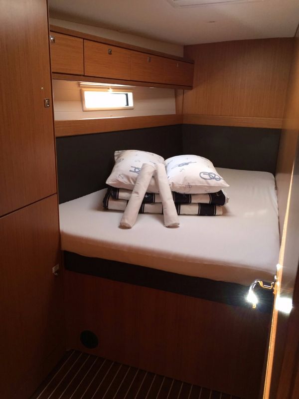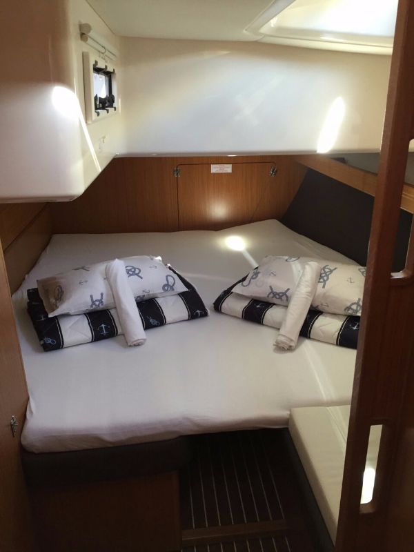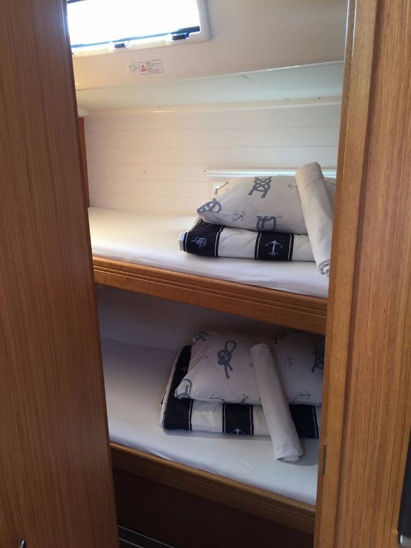 | Navigation | Barometer, Fernglas, GPS mit Kartenplotter im Cockpit, Hafenhandbücher, Handpeilkompass, Navigationsbesteck, Seekarten, Tridata (Log, Echolot, Windm.) |