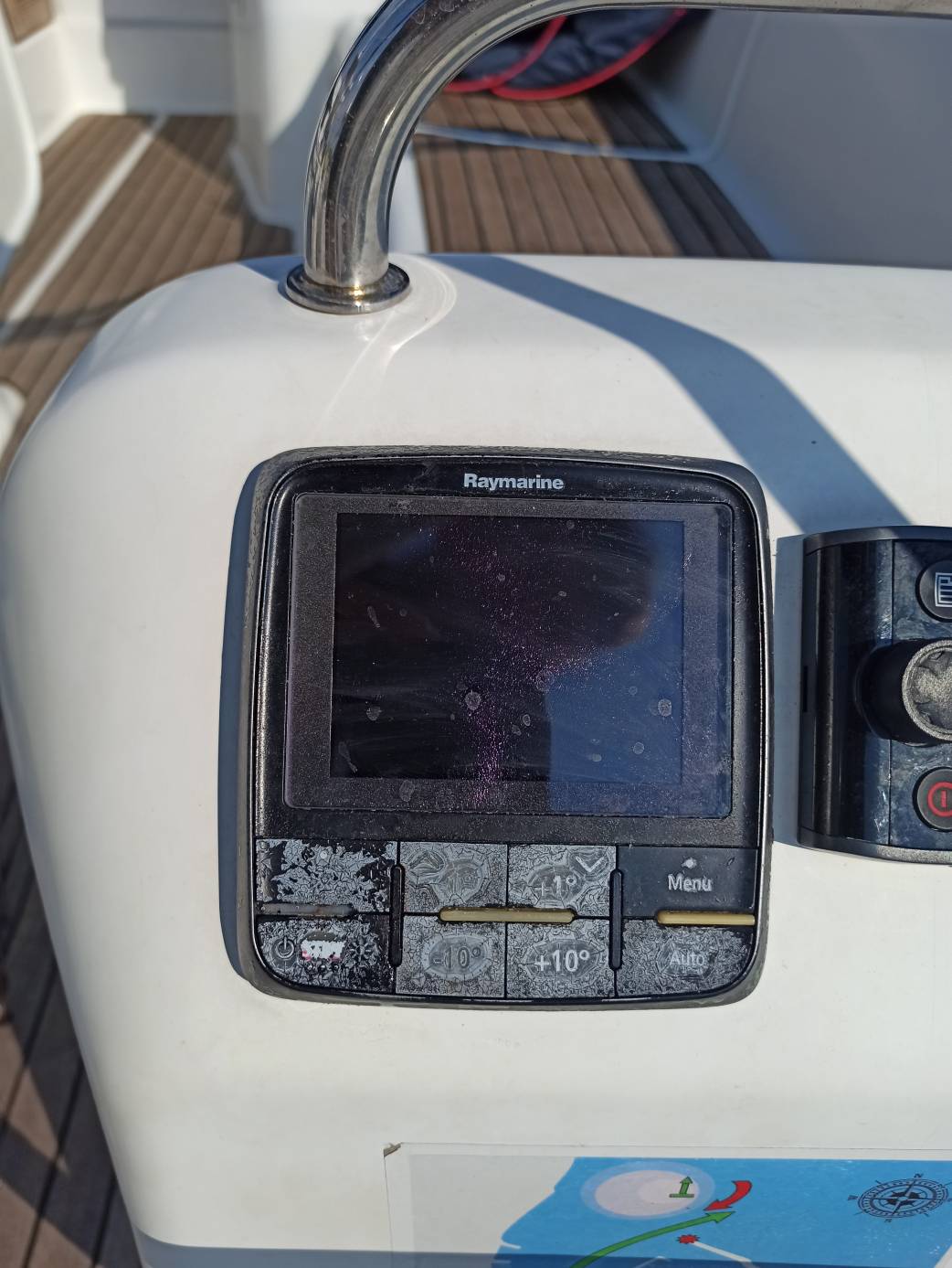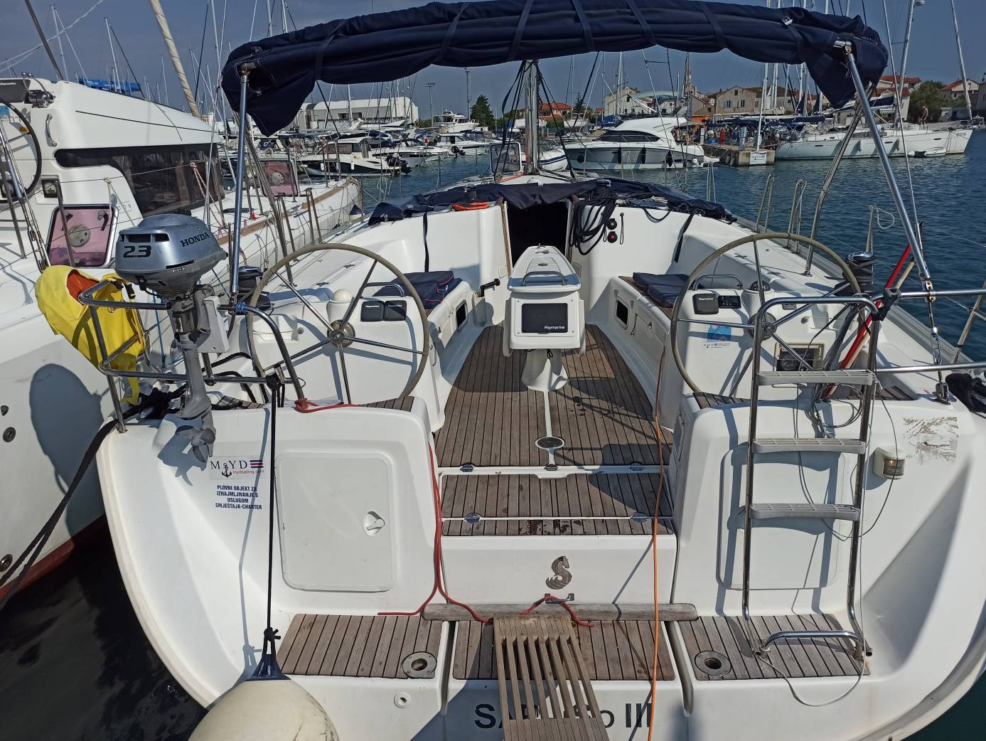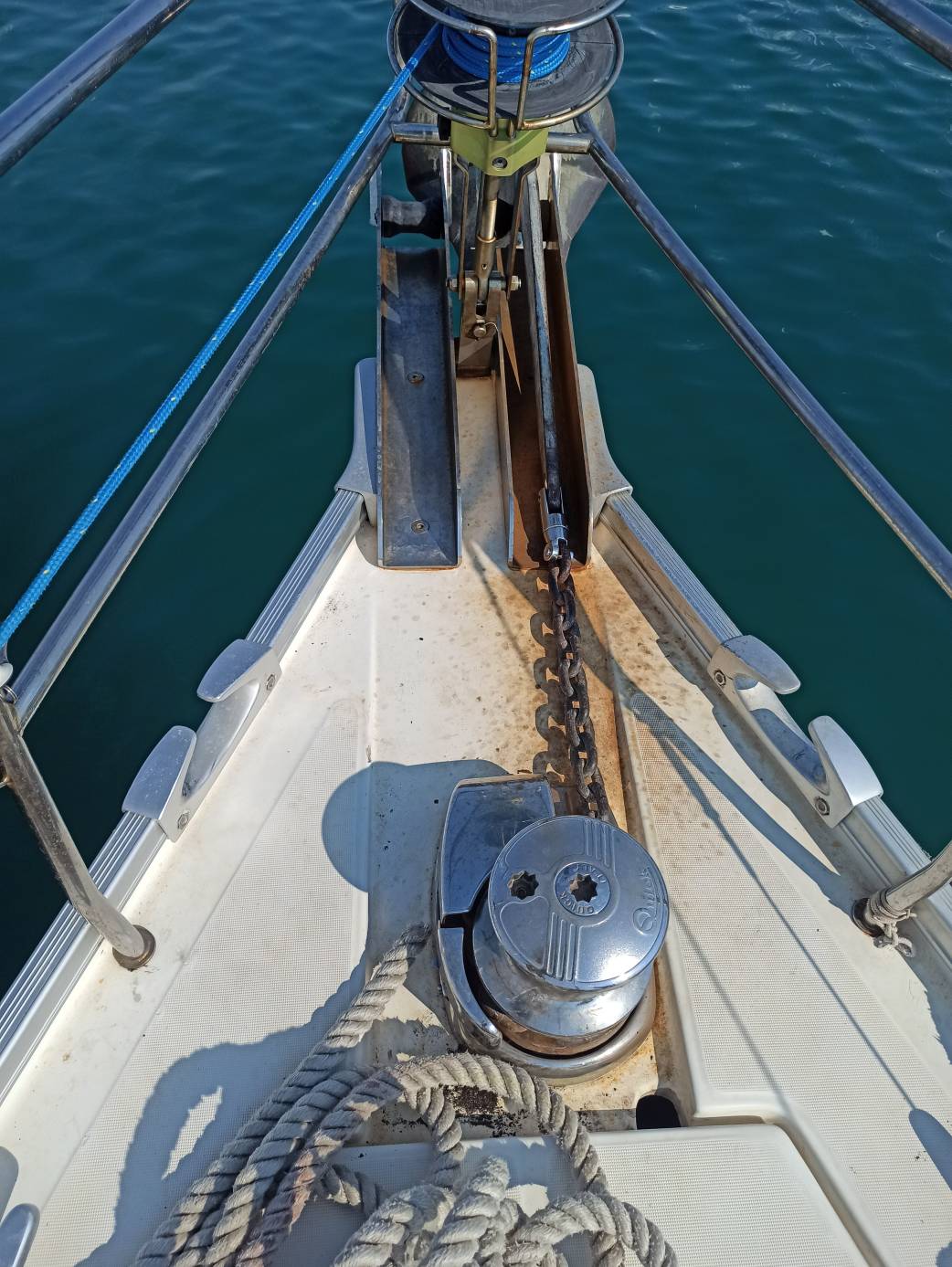 | Outside | Anker mit Kette, Außendusche, Biminitop, elektr. Ankerwinsch, Sonnensegel, Sprayhood, Windex |