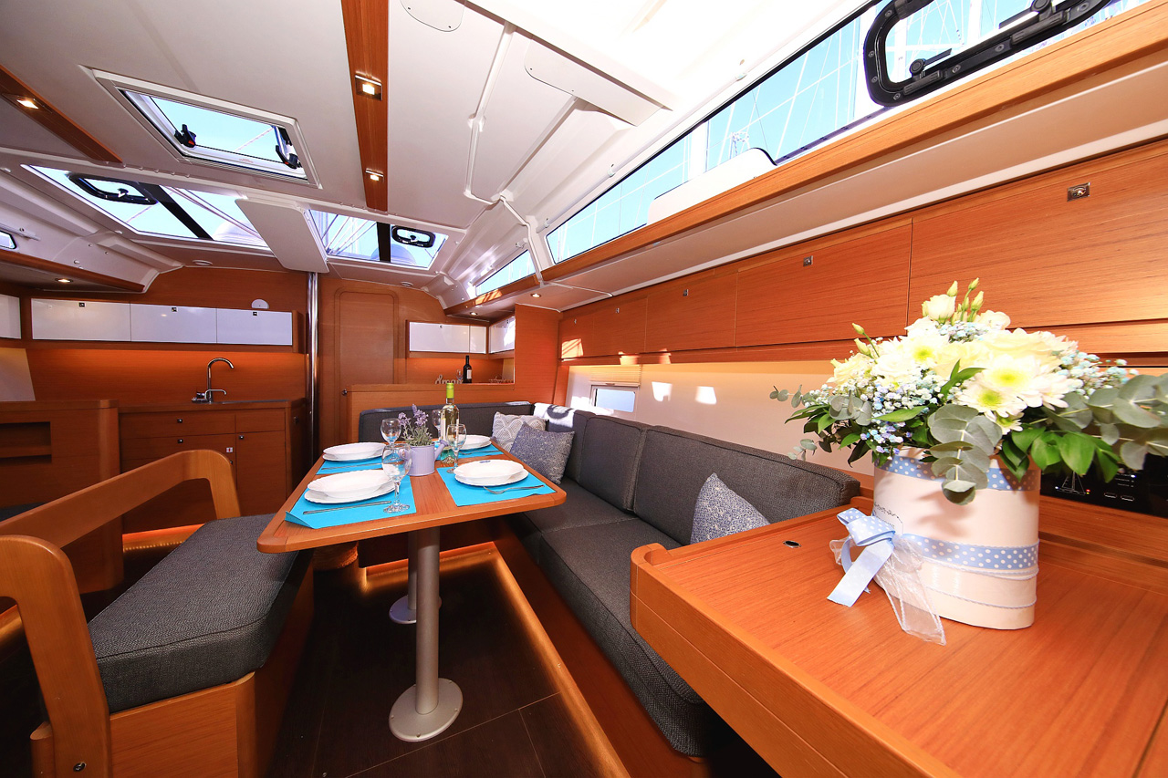 | Inside | Borduhr, Eisbox, Heizung, Inverter 12V/220V, Klimaanlage (Landstrom), Kühlschrank, Ladegerät, Luftpumpe für Beiboot, Pantryausstattung, Radio mit CD/USB/MP3/Aux-In/Bluetooth, Salontisch absenkbar, Warmwasser |