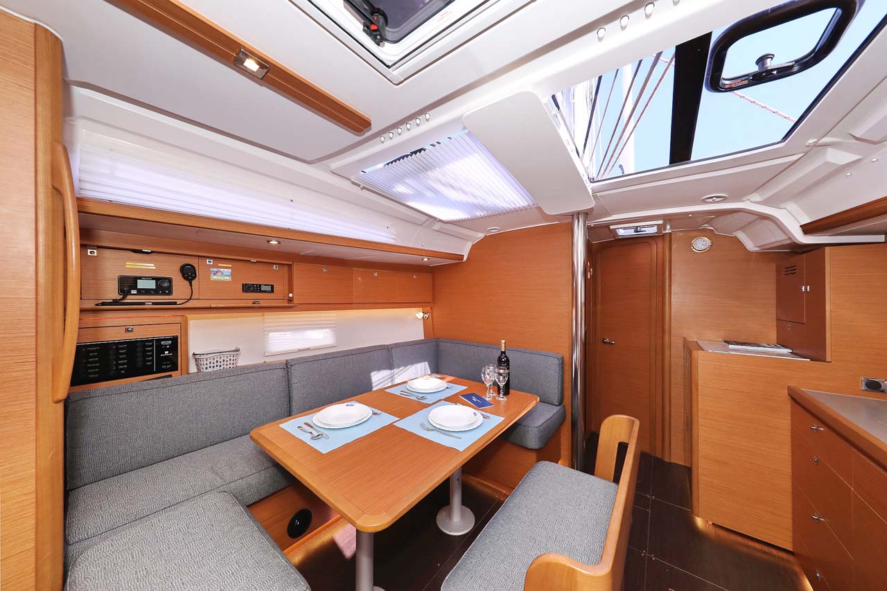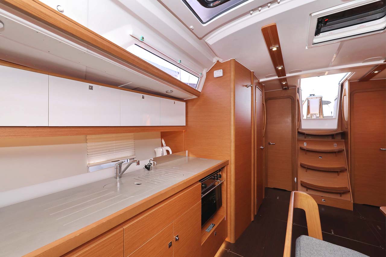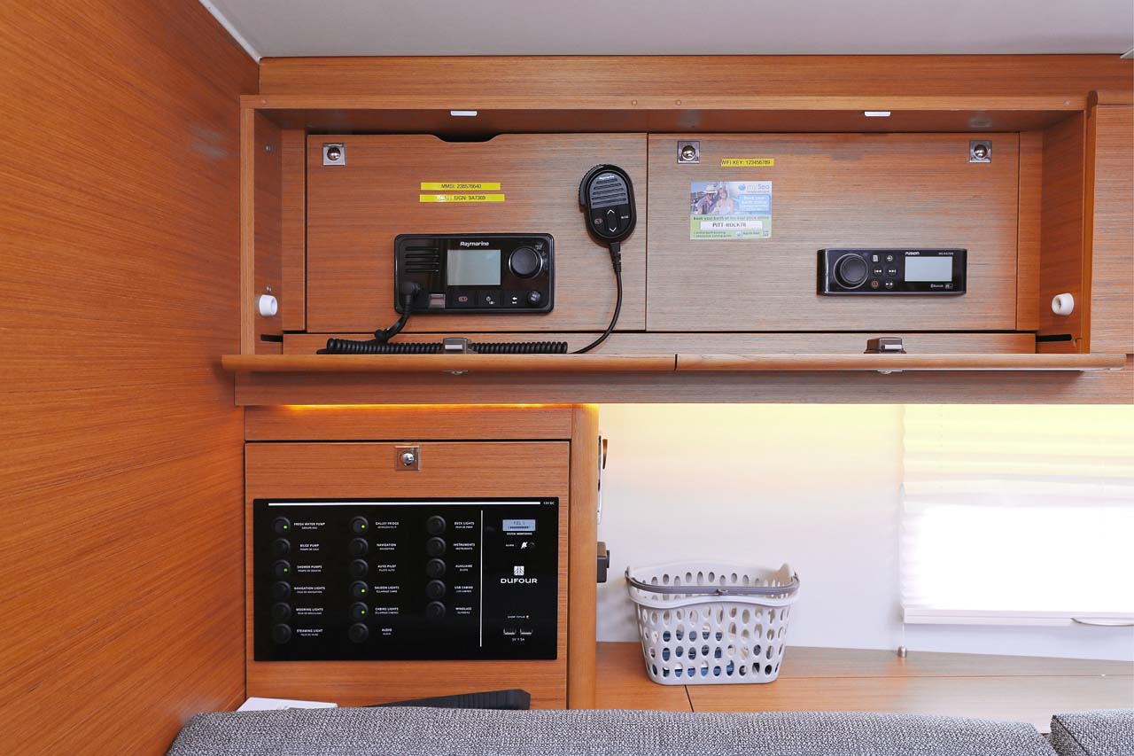| Navigation | Barometer, Fernglas mit Peilkompass, GPS mit Kartenplotter im Cockpit, Hafenhandbücher, Navigationsbesteck, Seekarten, Tridata (Log, Echolot, Windm.) |