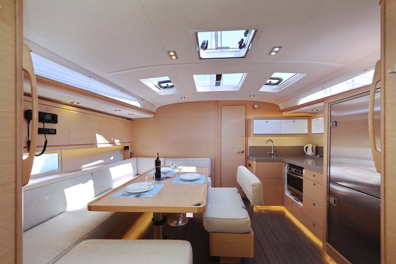 | Inside | Borduhr, FUSION Sound System, Heizung, Inverter 12V/220V, Kaffeemaschine, Kühlschrank, Ladegerät, Luftpumpe für Beiboot, Pantryausstattung, Radio mit Bluetooth, Salontisch absenkbar, Warmwasser |