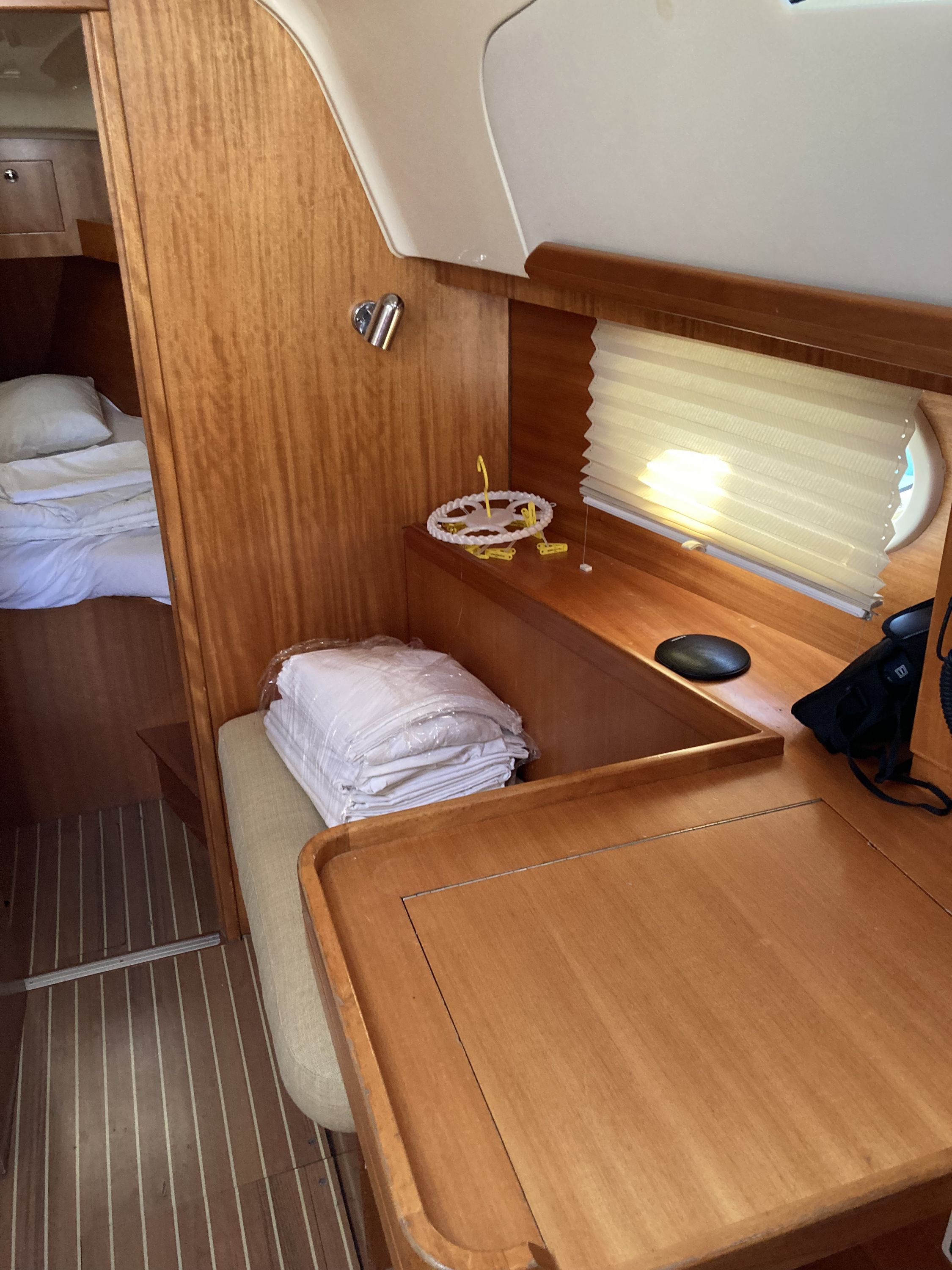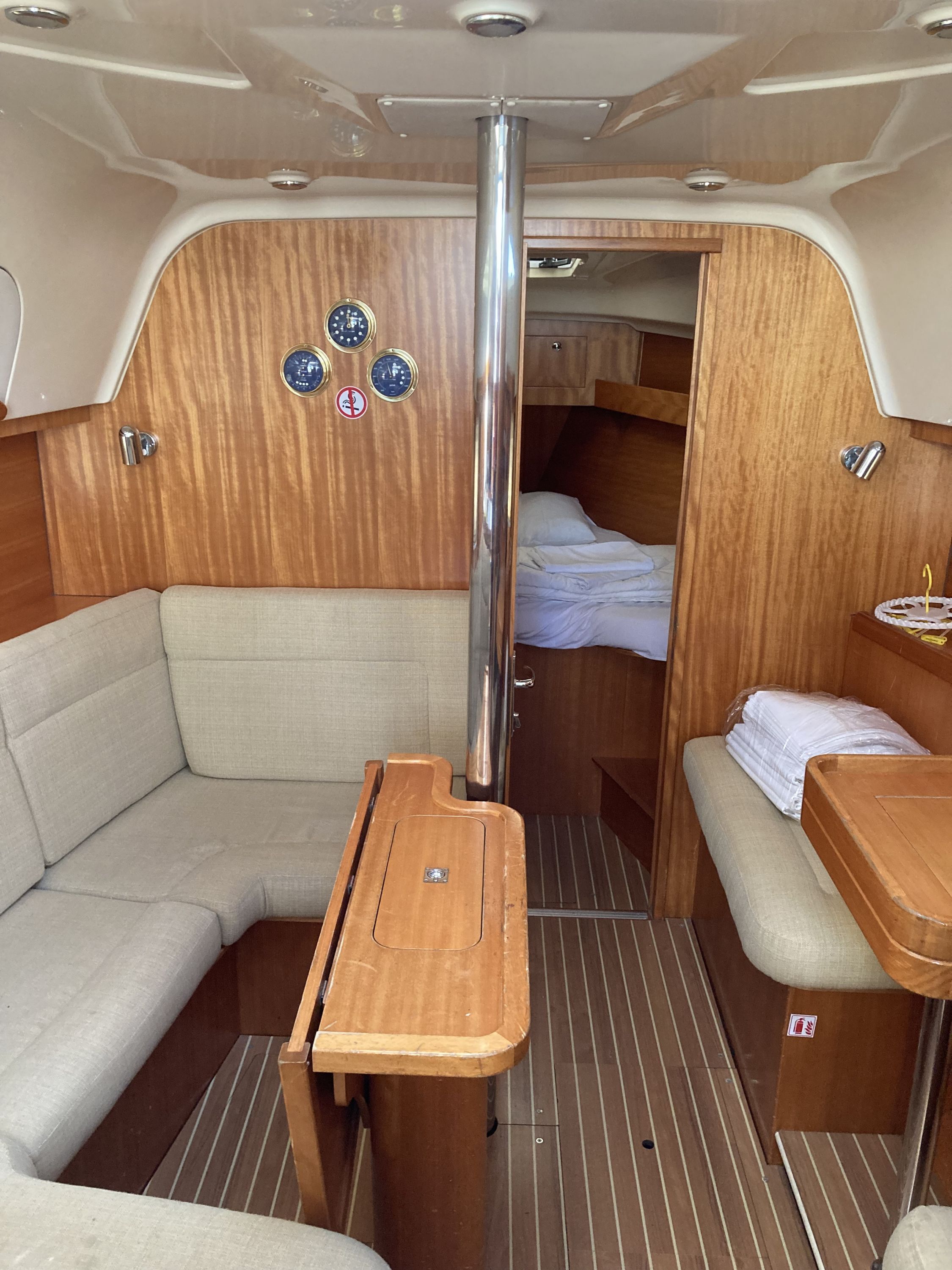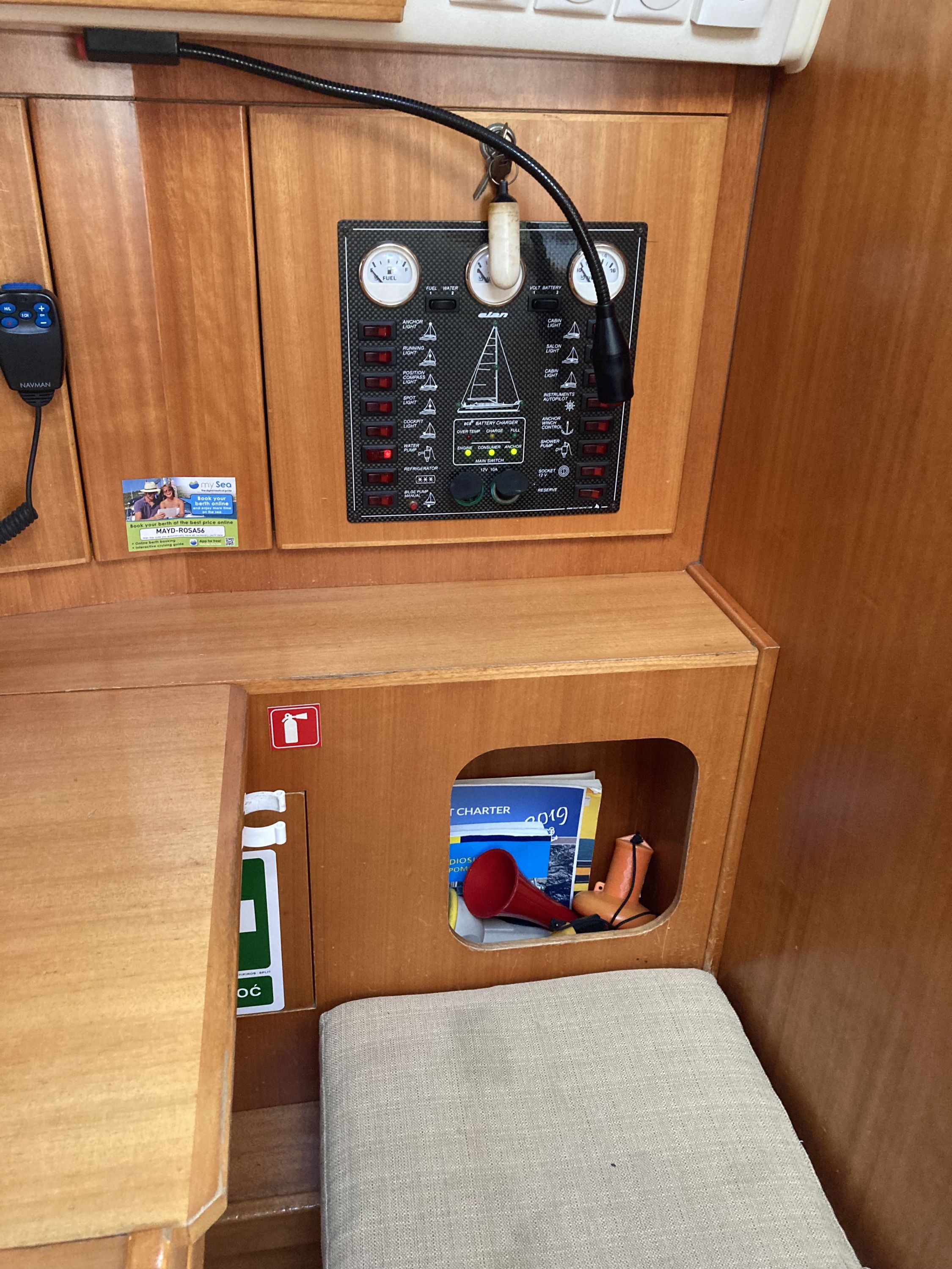 | Navigation | Echolot, GPS mit Kartenplotter im Salon, Kompass, Sumlog, Windmesser |