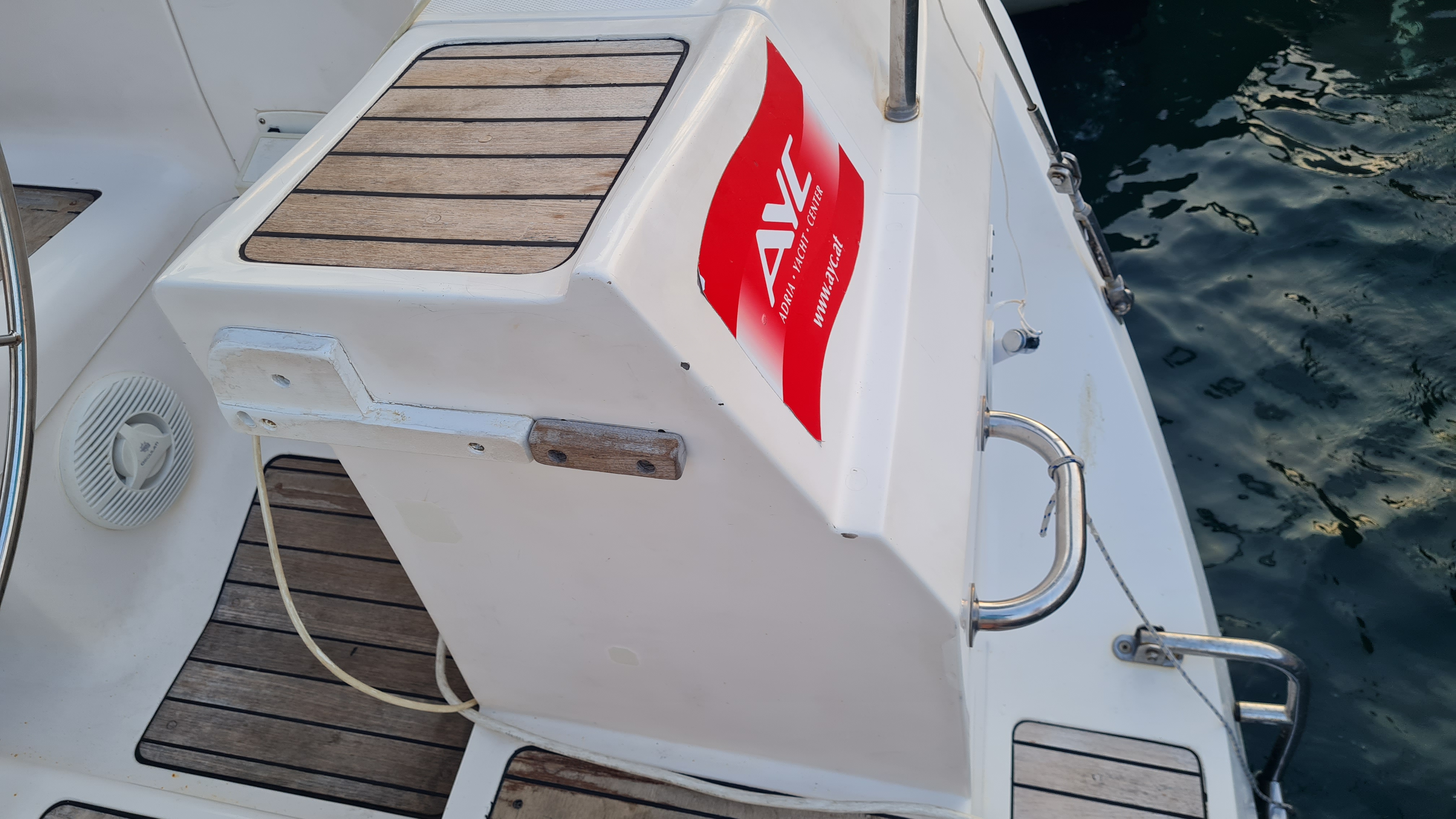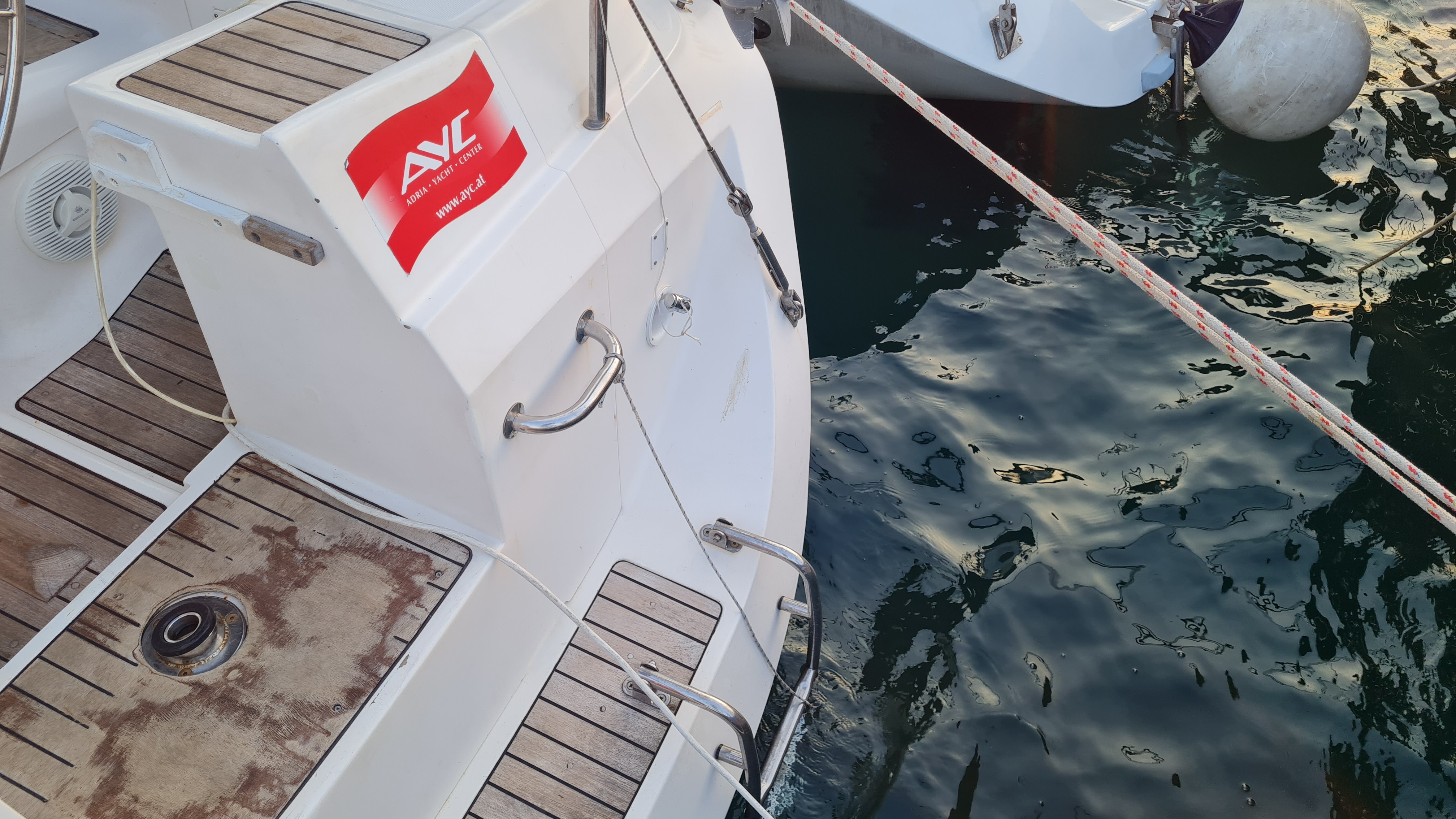 | Outside | Außendusche, Biminitop, Cockpitlautsprecher, elektr. Ankerwinsch, Sonnensegel, Sprayhood, Windex |