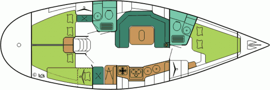 | Navigation | GPS mit Kartenplotter im Salon, Navigationsbesteck, Tridata (Log, Echolot, Windm.) |