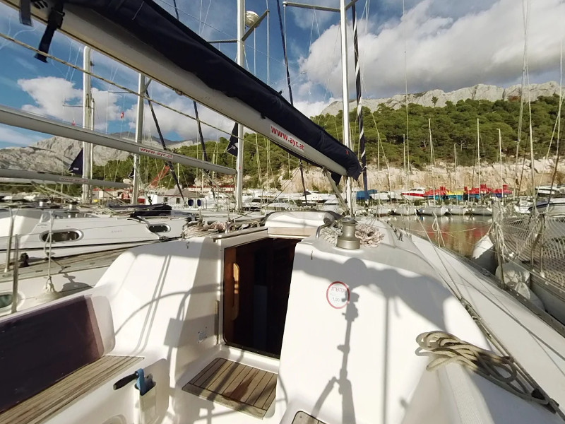 | Outside | Außendusche, Biminitop, Cockpitlautsprecher, elektr. Ankerwinsch, Sonnensegel, Sprayhood |