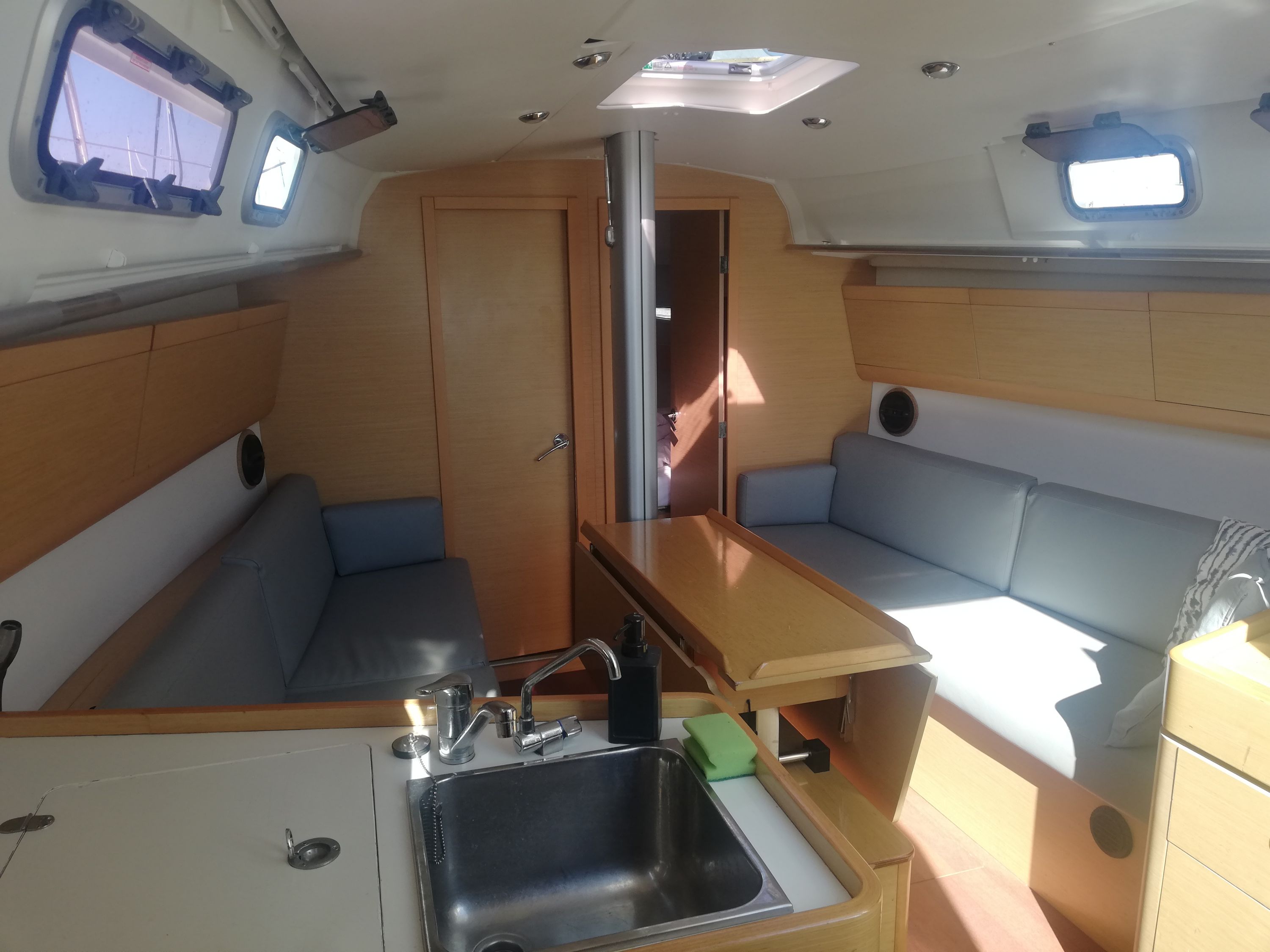 | Navigation | Echolot, Fernglas, GPS mit Kartenplotter im Salon, Hafenhandbücher, Kompass, Navigationsbesteck, Seekarten, Sumlog, Windmesser |