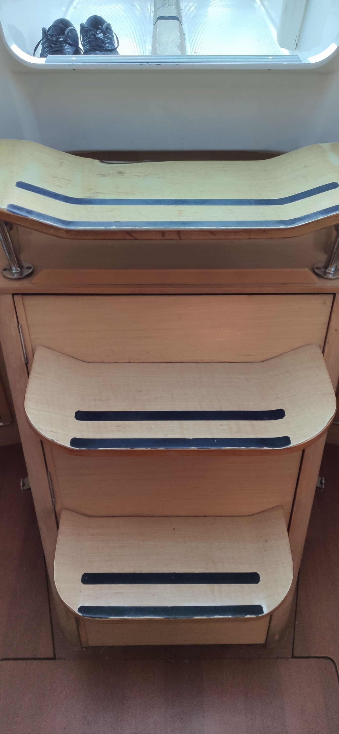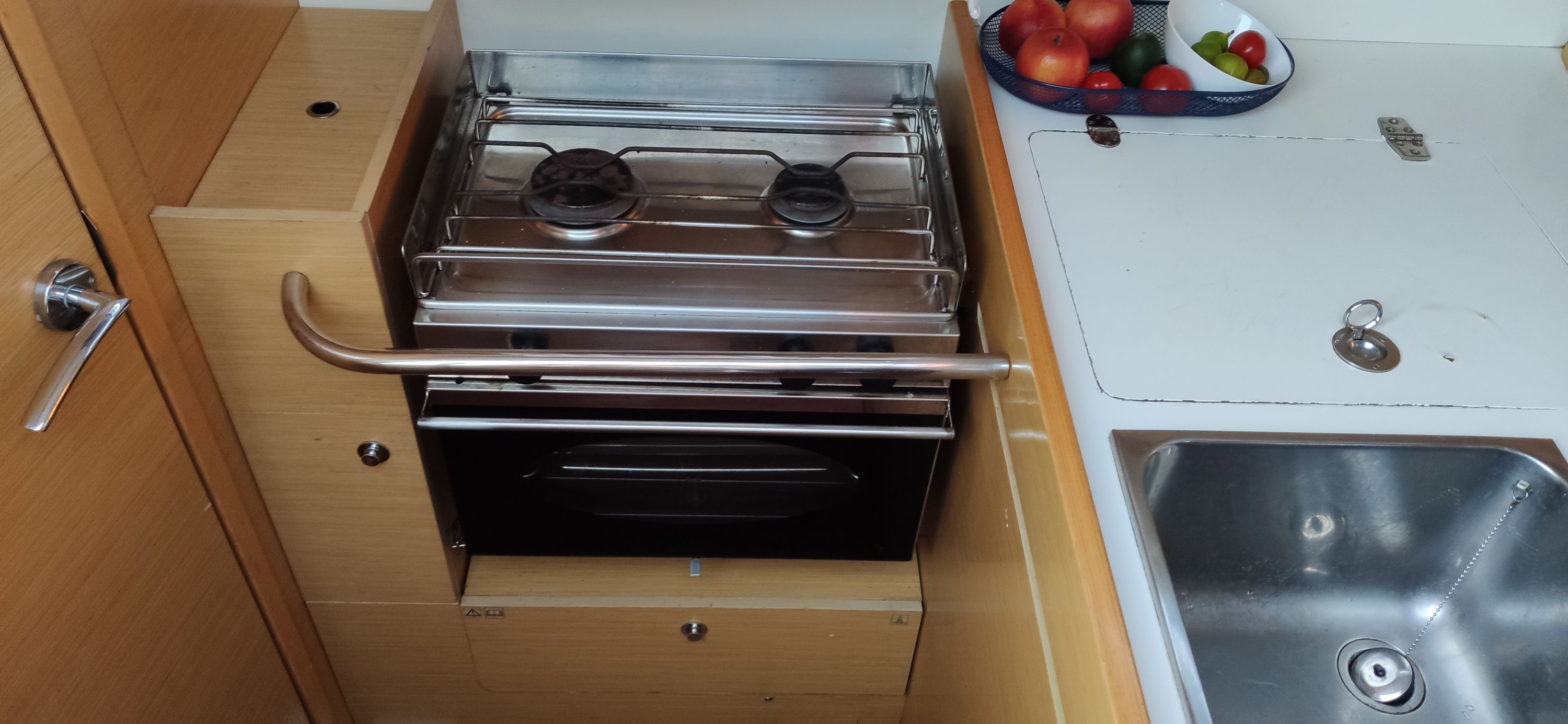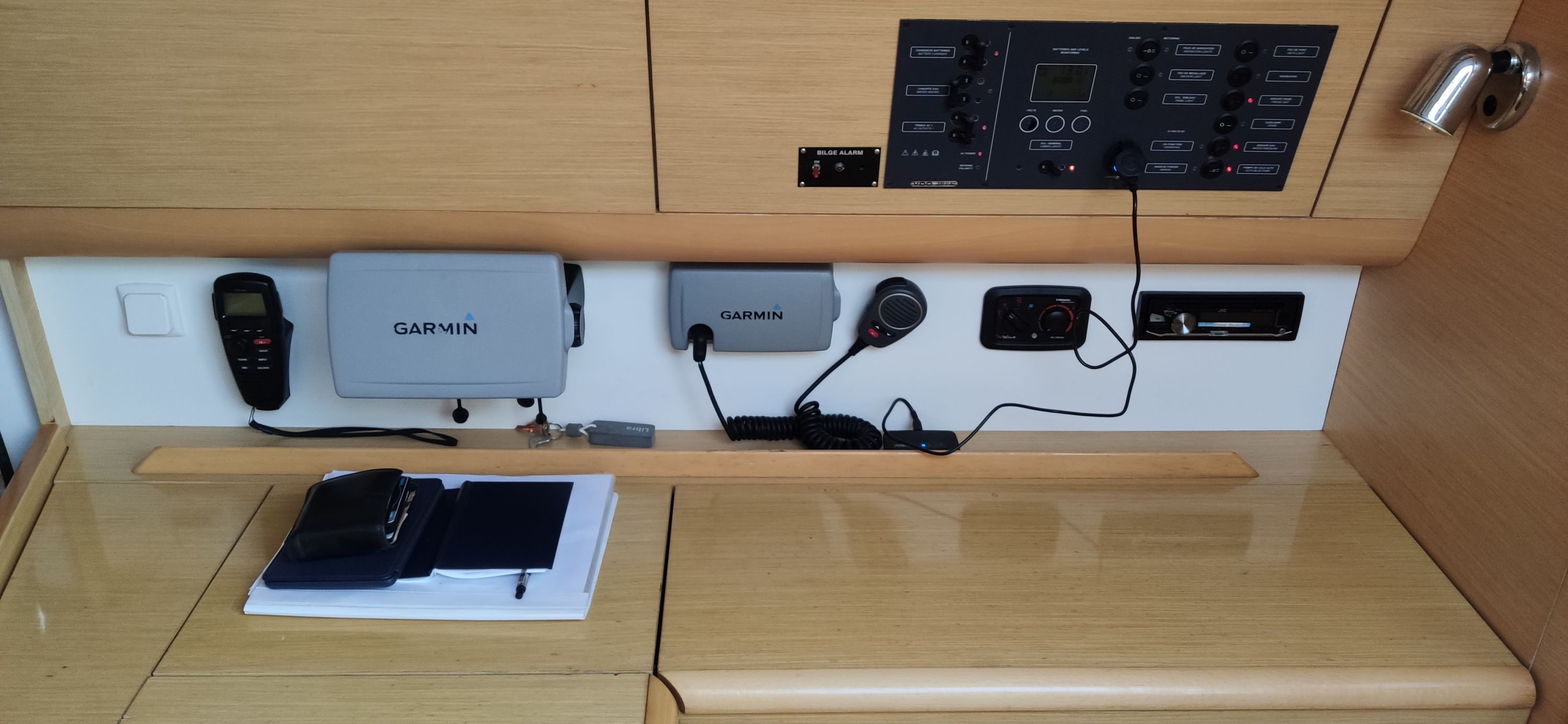 | Navigation | Echolot, Fernglas, GPS mit Kartenplotter im Salon, Hafenhandbücher, Kompass, Navigationsbesteck, Seekarten, Sumlog, Windmesser |