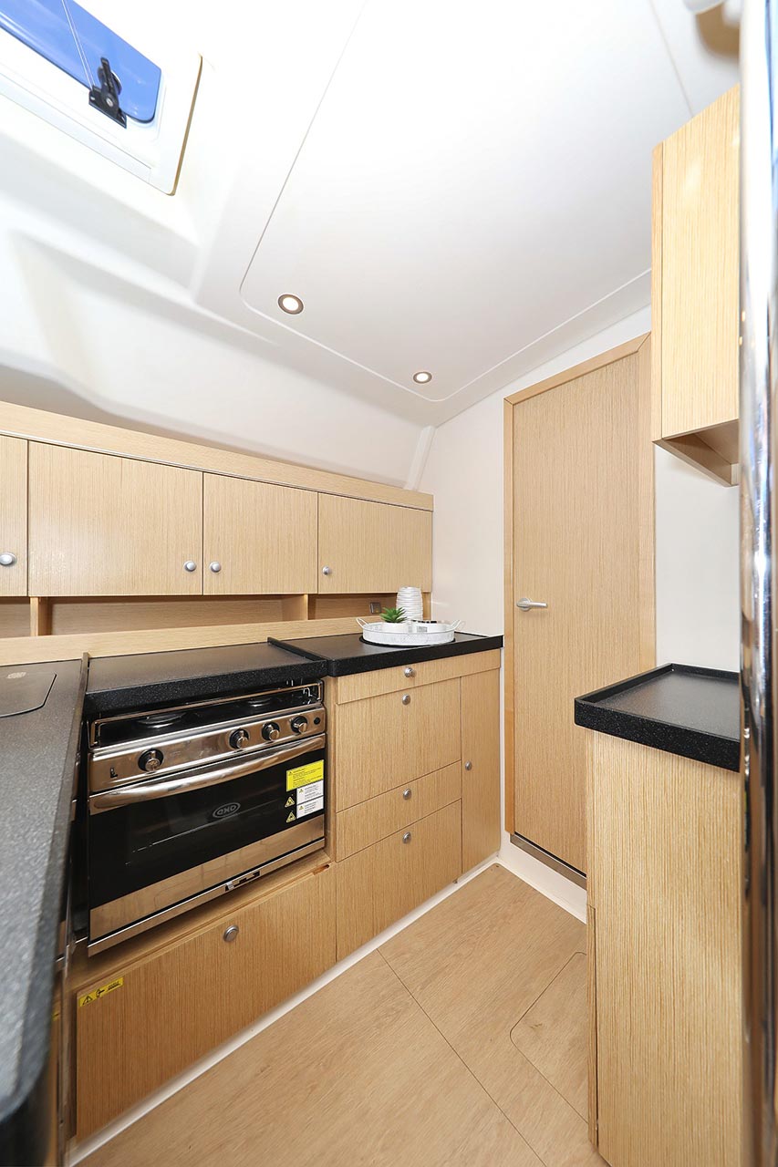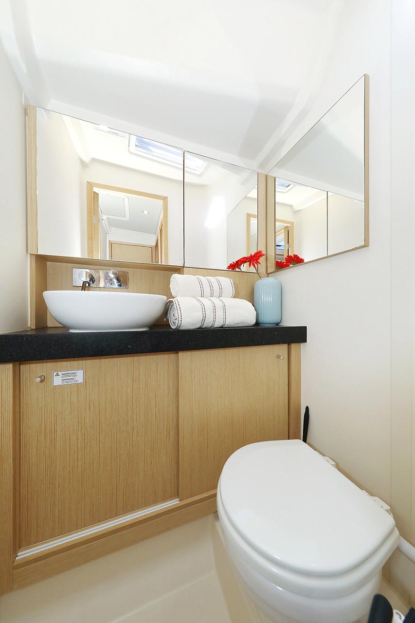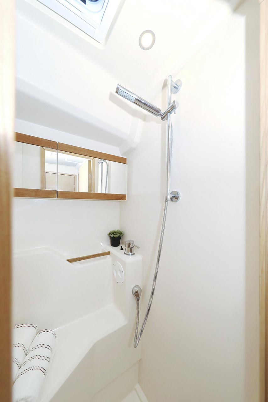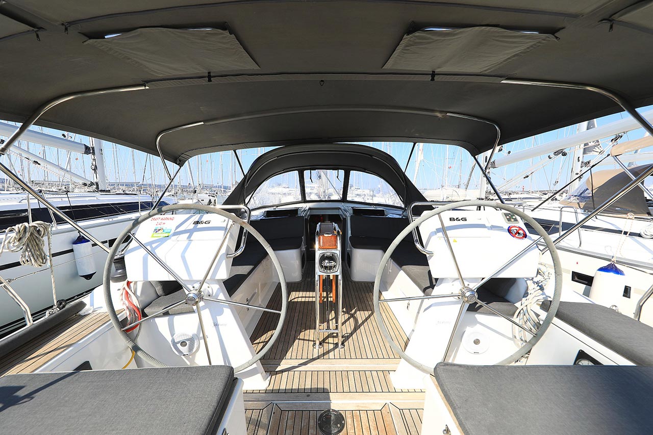 | Outside | Anker mit Kette, Badeplattform, Biminitop, Cockpitdusche, Cockpitlautsprecher, Cockpittisch, elektr. Ankerwinsch, Fallwinschen, Gangway, Genuawinschen, Sprayhood |