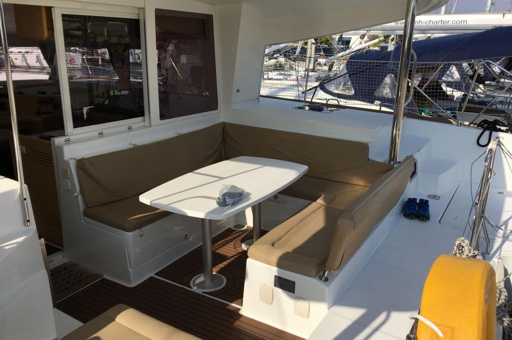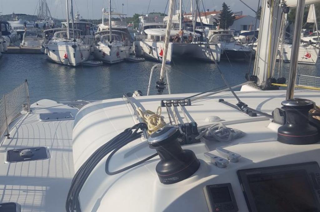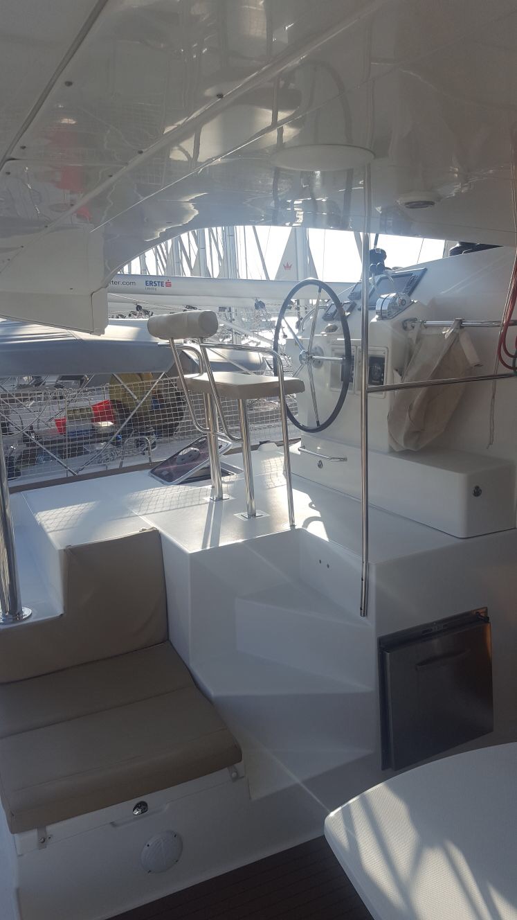 | Outside | 220 V-Landanschluss, Anker mit Kette, Badeleiter, Bootshaken, Cockpitdusche, Cockpitleuchte, Cockpitpolster, Cockpittisch, Deckbürste, Dieselkanister , elektr. Ankerwinsch, Fender, Festmacherleinen, Gangway, Hardtop, Kunststoff-Eimer (Pütz), Wasserschlauch, Winschen |