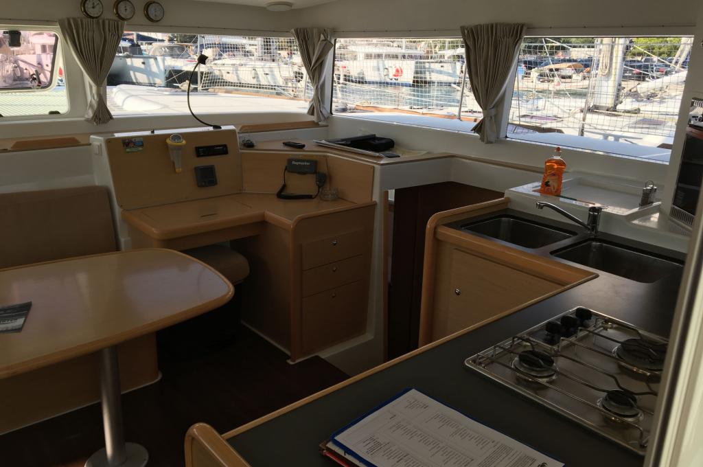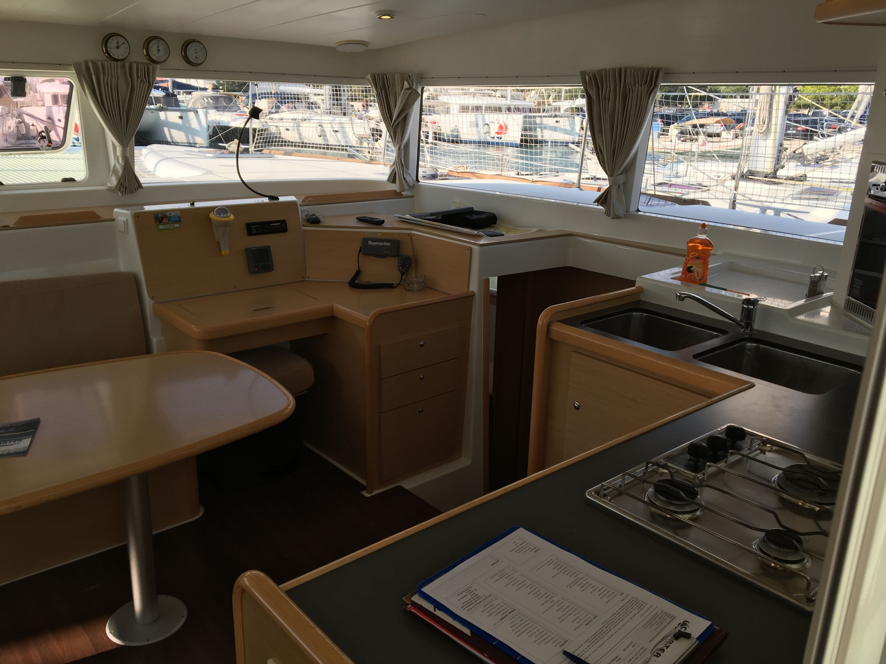 | Navigation | Barometer, Fernglas, GPS mit Kartenplotter im Cockpit, Hafenhandbücher, Handpeilkompass, Kompass, Navigationsbesteck, Seekarten, Thermometer, Tridata (Log, Echolot, Windm.), Windmesser |